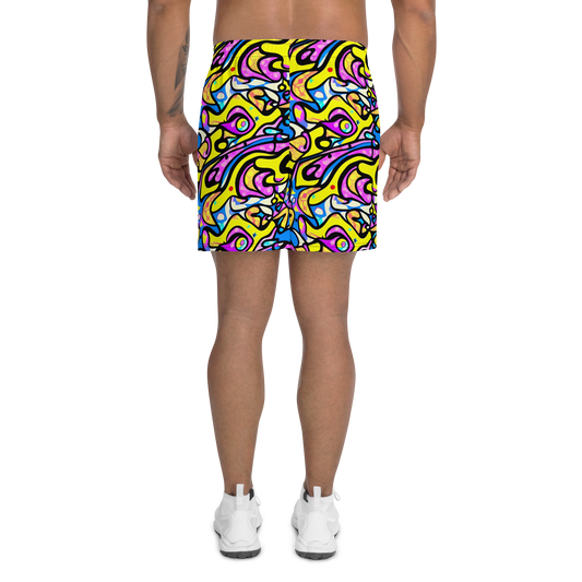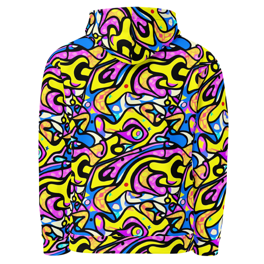 "Britto's Odyssey" is a vibrant, high-energy pattern featuring bold, contrasting colors such as electric blues, sunny yellows, and playful pinks, interwoven with black outlines reminiscent of Romero Britto's signature style. Swirling shapes and stars evoke a sense of cosmic adventure, while the glossy texture adds a modern, dynamic feel. Ideal for creative spirits and festival-goers, this pattern is perfect for summer events and adds a pop of personality to any casual outing.