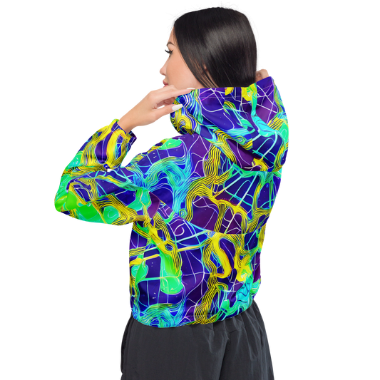 Women's Cropped Windbreaker - Neon Jungle Rhapsody