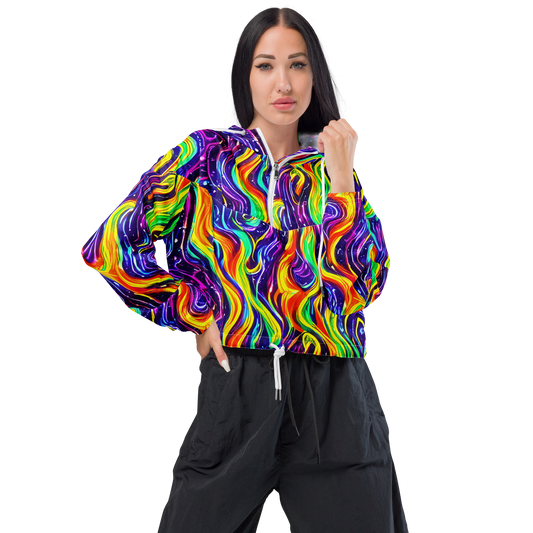 Women's Cropped Windbreaker - Galactic Flames
