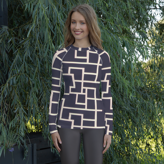 Women's Rash Guard - Gilded Gridlock