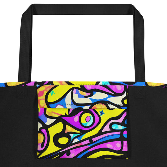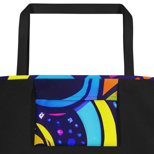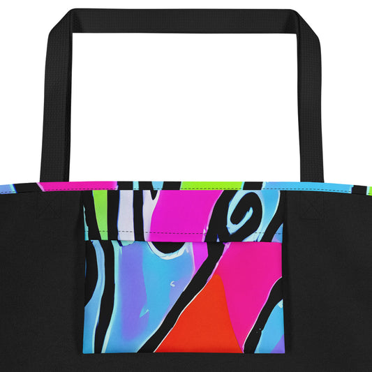 Large Tote Bag w/ Pocket - Neon Graffscape