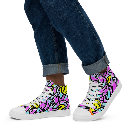 Men's High Top Canvas Shoes - Gilded Gridlock