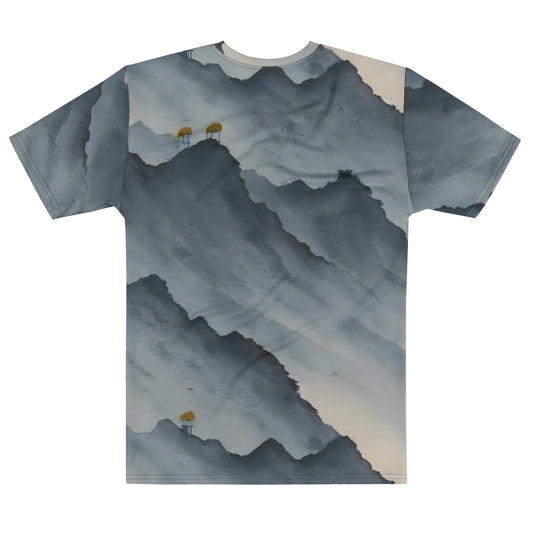 "Misty Mountain Harmony" is a serene blend of soft blues and grays, evoking the tranquil beauty of mist-covered peaks, with subtle touches of golden hues adding warmth and depth. The watercolor textures create a dreamy, ethereal vibe, perfect for those with a contemplative and artistic spirit. Ideal for autumn or spring outings, this pattern suits cultural events, art galleries, or serene nature retreats, reflecting a personality that appreciates quiet elegance and timeless beauty.