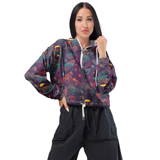 Women's Cropped Windbreaker - Nebula Dreamscape