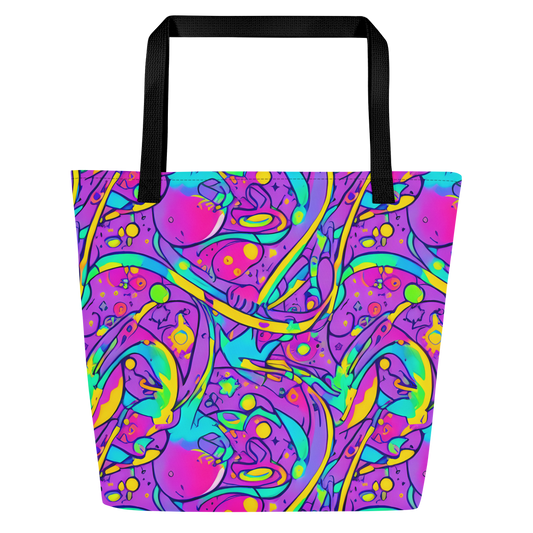 Large Tote Bag w/ Pocket - Neon Galaxy Whirl