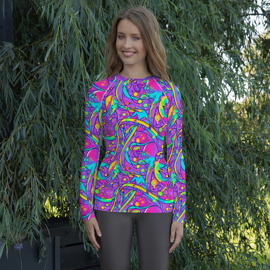 Long Sleeve Crop Top - Neon Galaxy Whirl