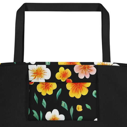 Large Tote Bag w/ Pocket - Sunlit Blossoms