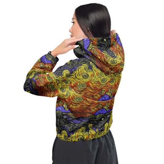 Women's Cropped Windbreaker - Dancing Solar Flare
