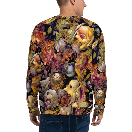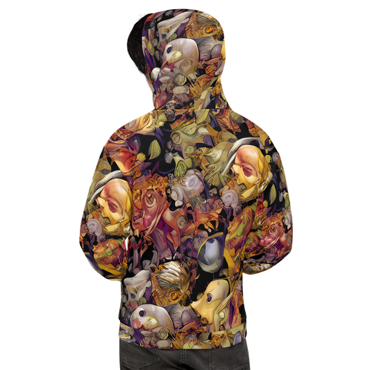 Wrap your head in the essence of a masterpiece with our exclusive beanie, adorned with a lush tapestry of nature's bounty. The whimsical faces woven from a cornucopia of fruits and vegetables, set against a backdrop of autumnal golds, ambers, and deep purples, are offset by cool silvery grays, bringing the art of the Renaissance into the realm of contemporary fashion. Perfect for those crisp fall days, this beanie not only keeps you toasty but also transforms your attire into a conversation piece at any creative gathering or art event.