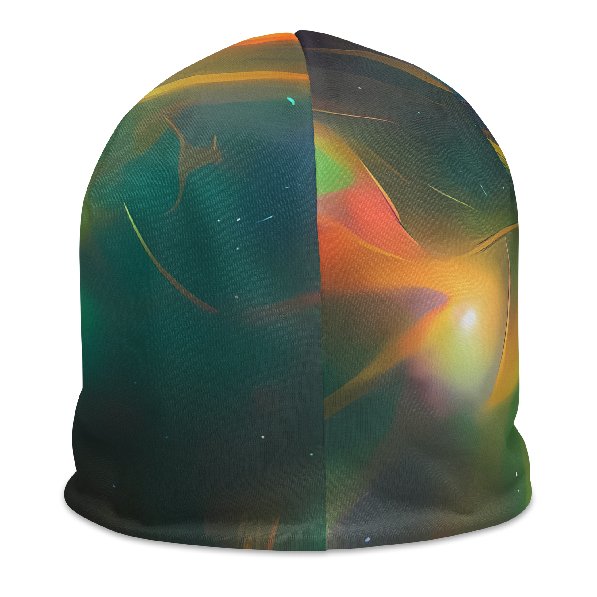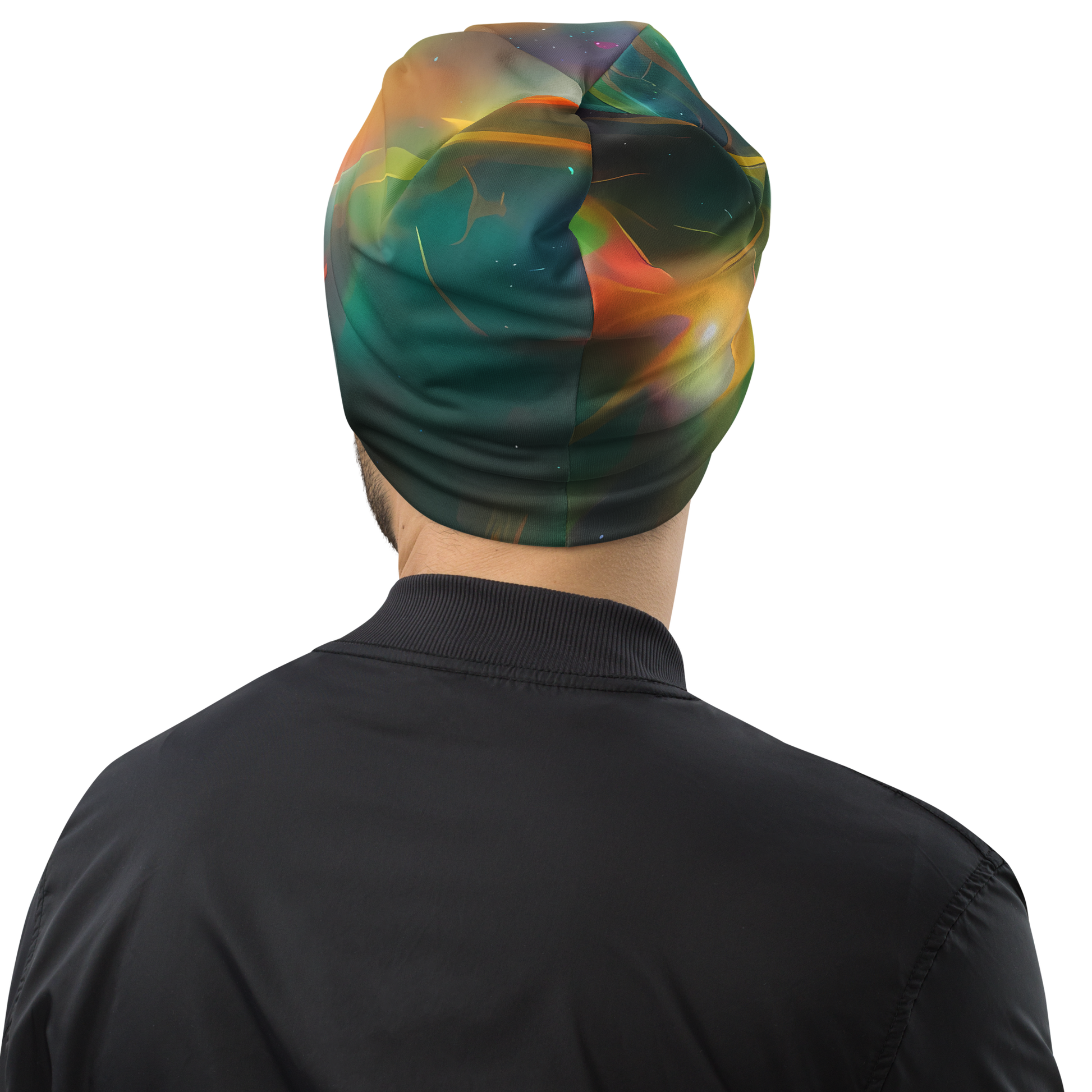 Step into a realm of cosmic elegance with our exclusive "Cheng Wallis Whirl" beanie, where vibrant hues swirl in a mesmerizing dance against a deep space backdrop. This custom-designed, double-layered beanie not only keeps you warm but also showcases a unique AI-generated art piece that captures the dreamlike quality of Hsiao-Ron Cheng's ethereal portraits and Eric Wallis's fluid brushwork. Perfect for avant-garde events or artistic gatherings, this beanie is designed for the bold individual who dares to stand out in style.