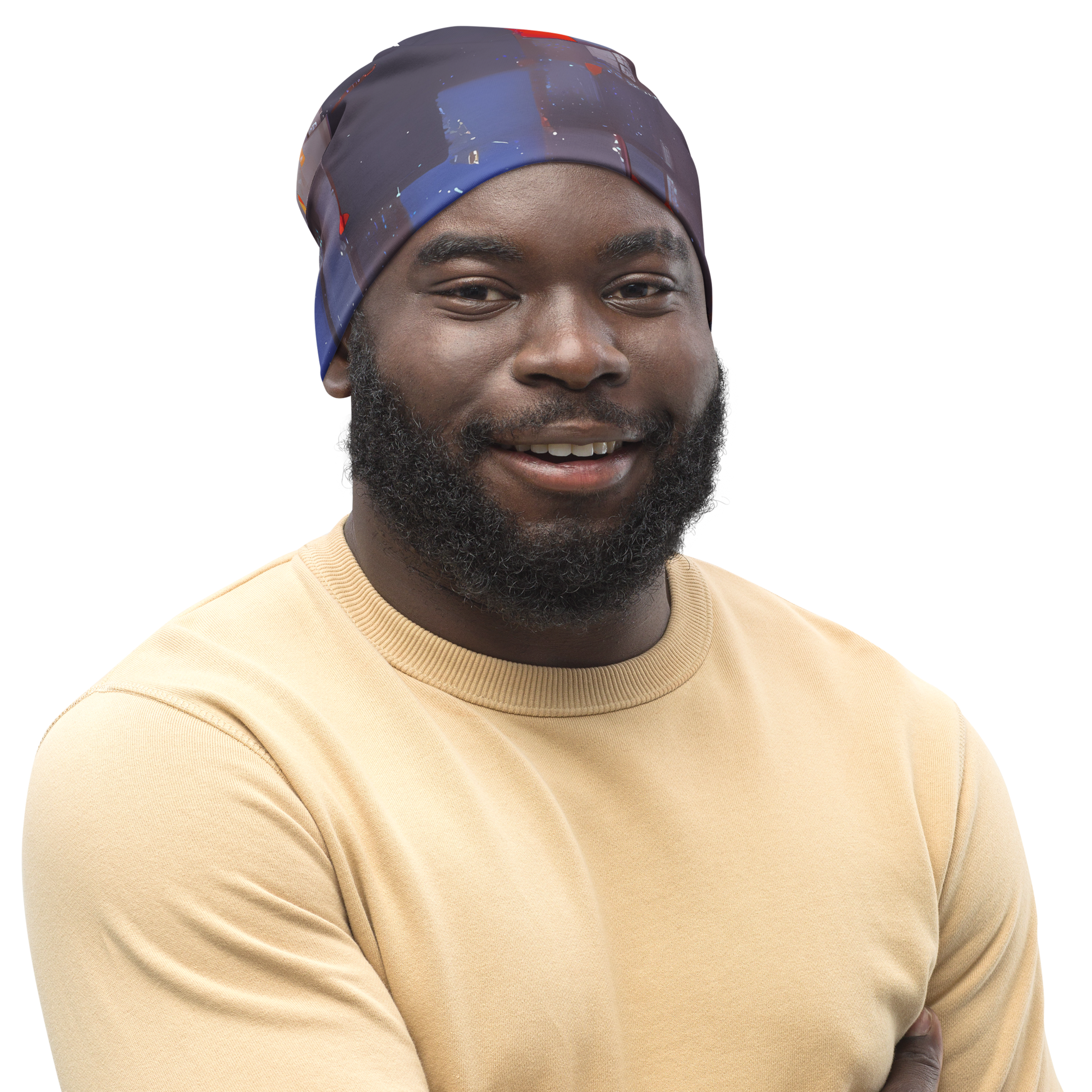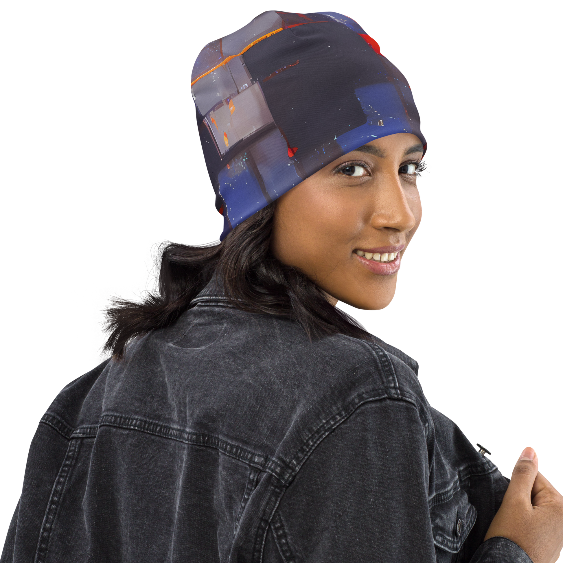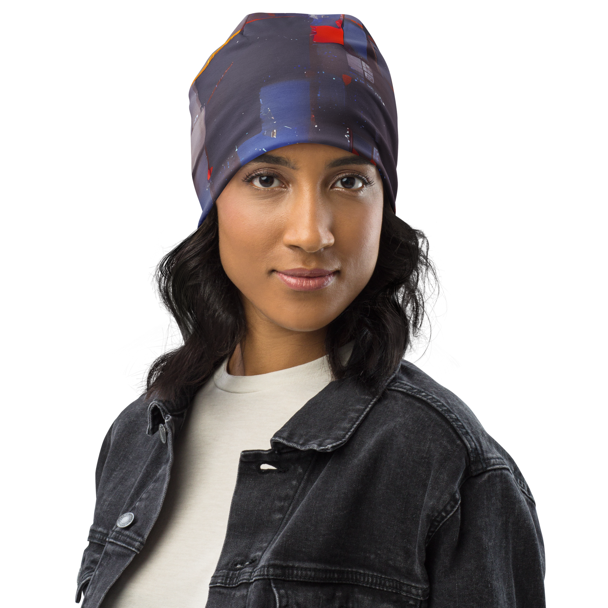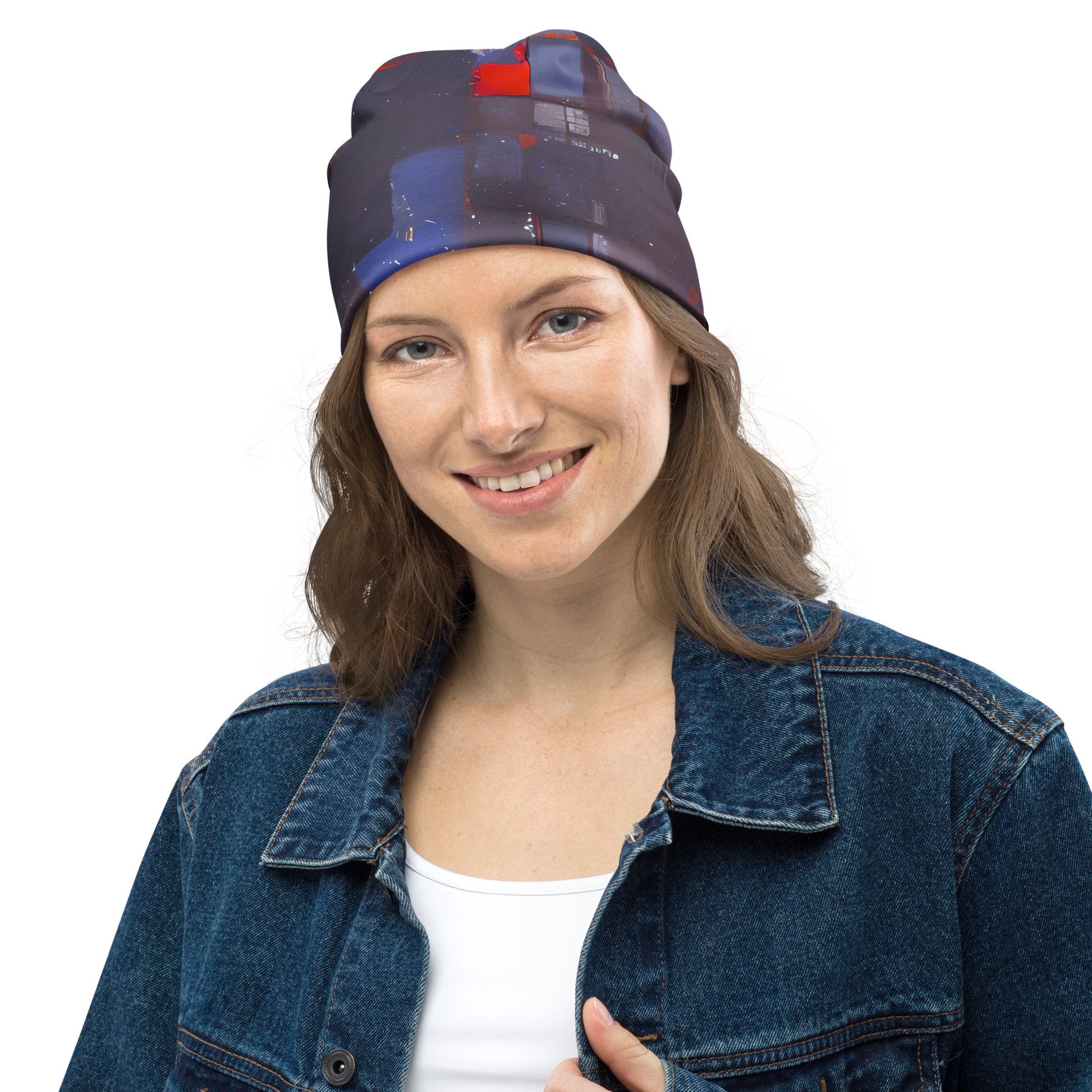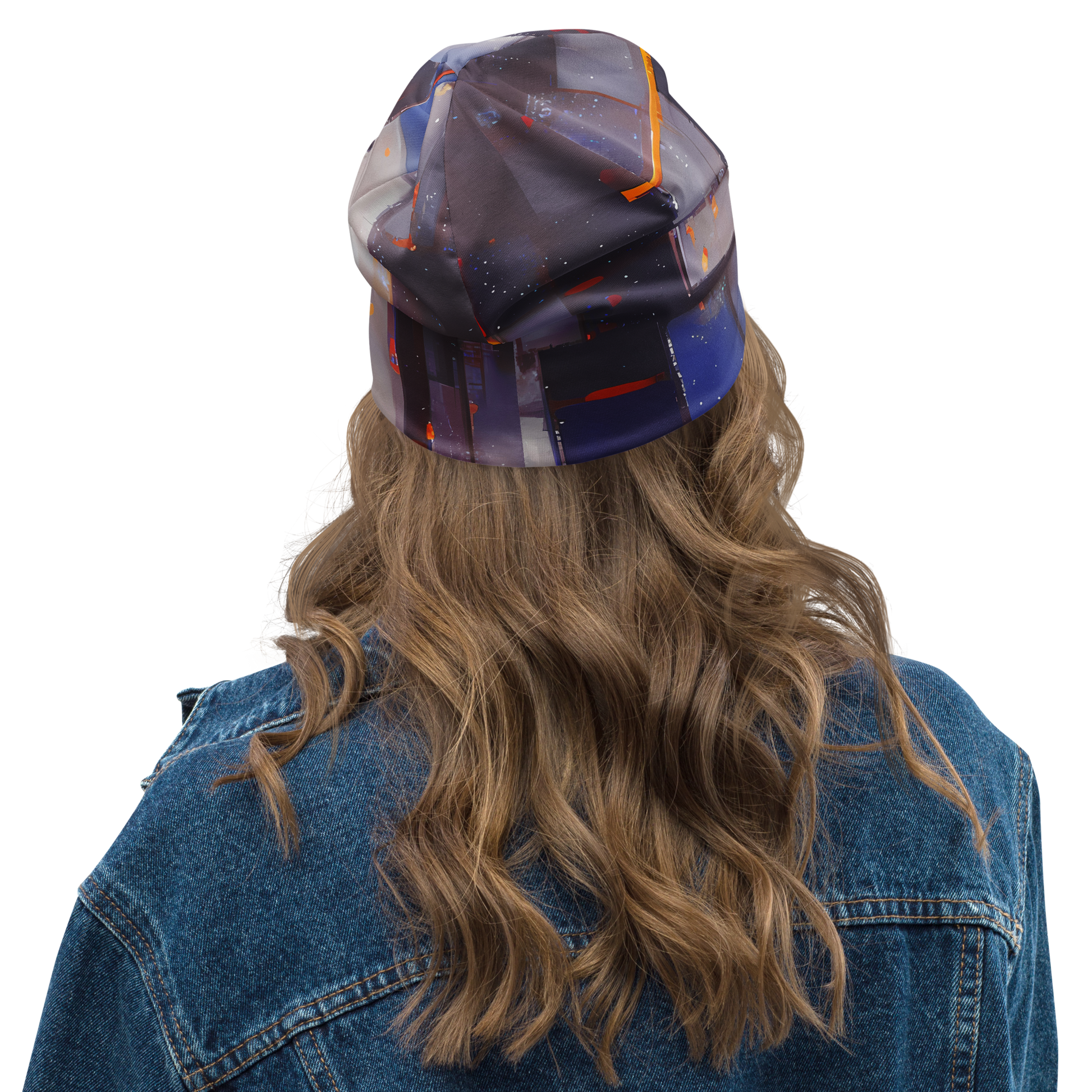 Wrap your head in the essence of avant-garde artistry with our "Cubist Rhythm" beanie, where the architectural clarity of geometric abstraction meets the spirited strokes of modern expressionism. Adorned with a compelling pattern of overlapping squares and rectangles, painted in the deep, contemplative shades of blues and grays with lively red highlights, this beanie is a wearable piece of art. It's the perfect accessory for those who dare to make a statement and celebrate their individuality, adding a touch of sophistication to any outfit, whether you're attending a creative event or simply strolling through the city.