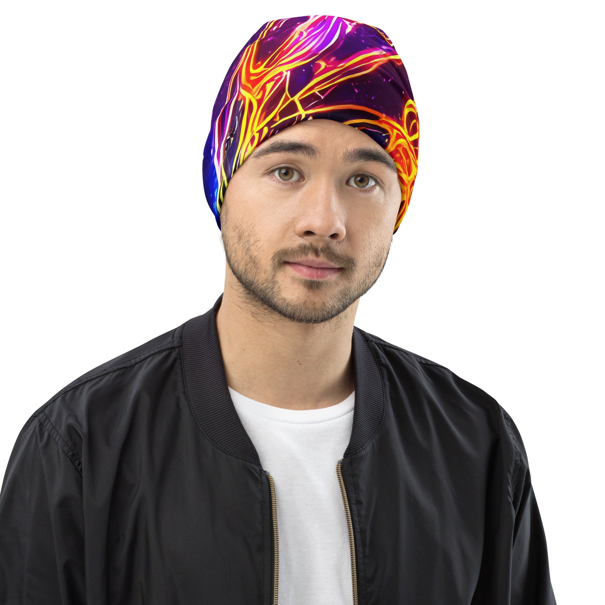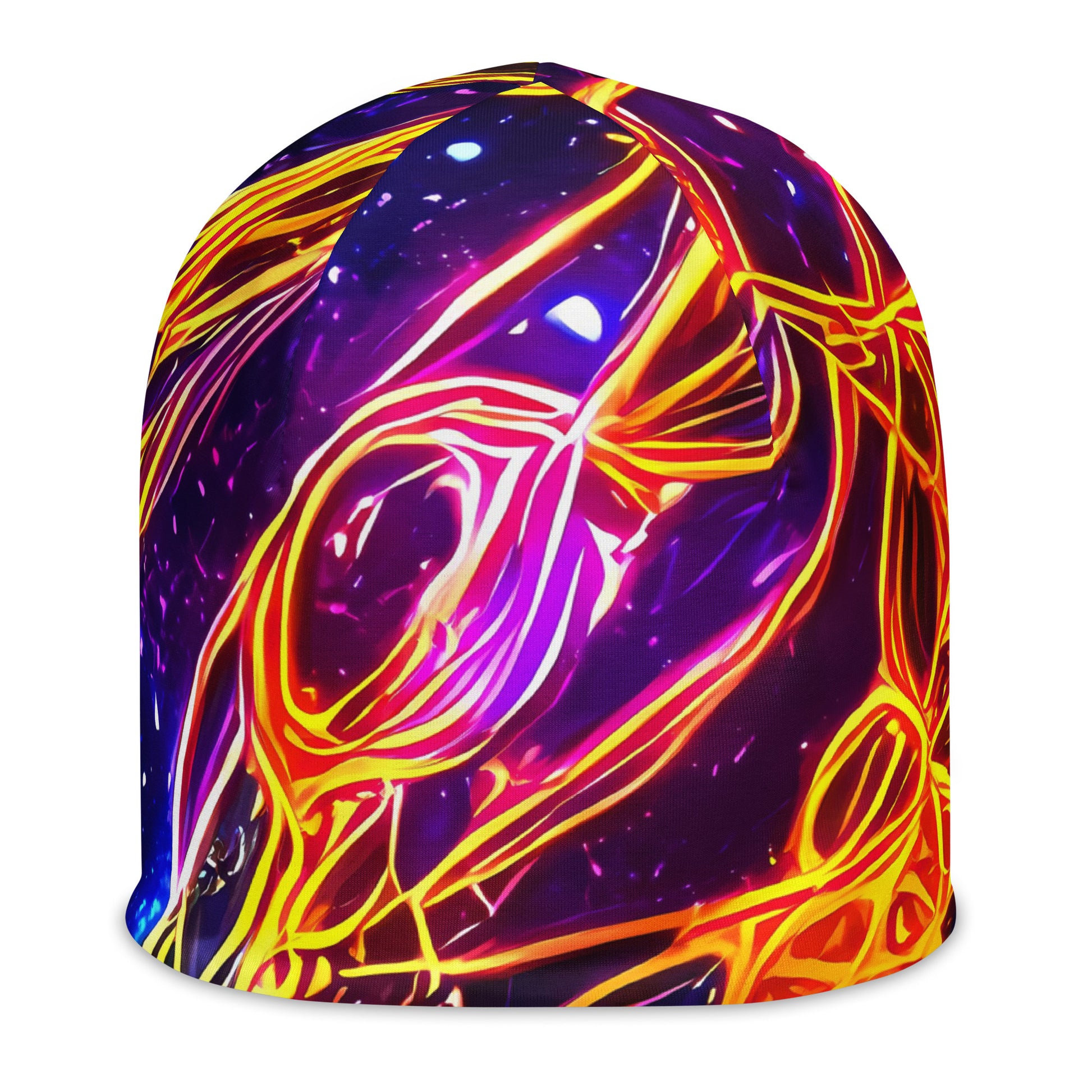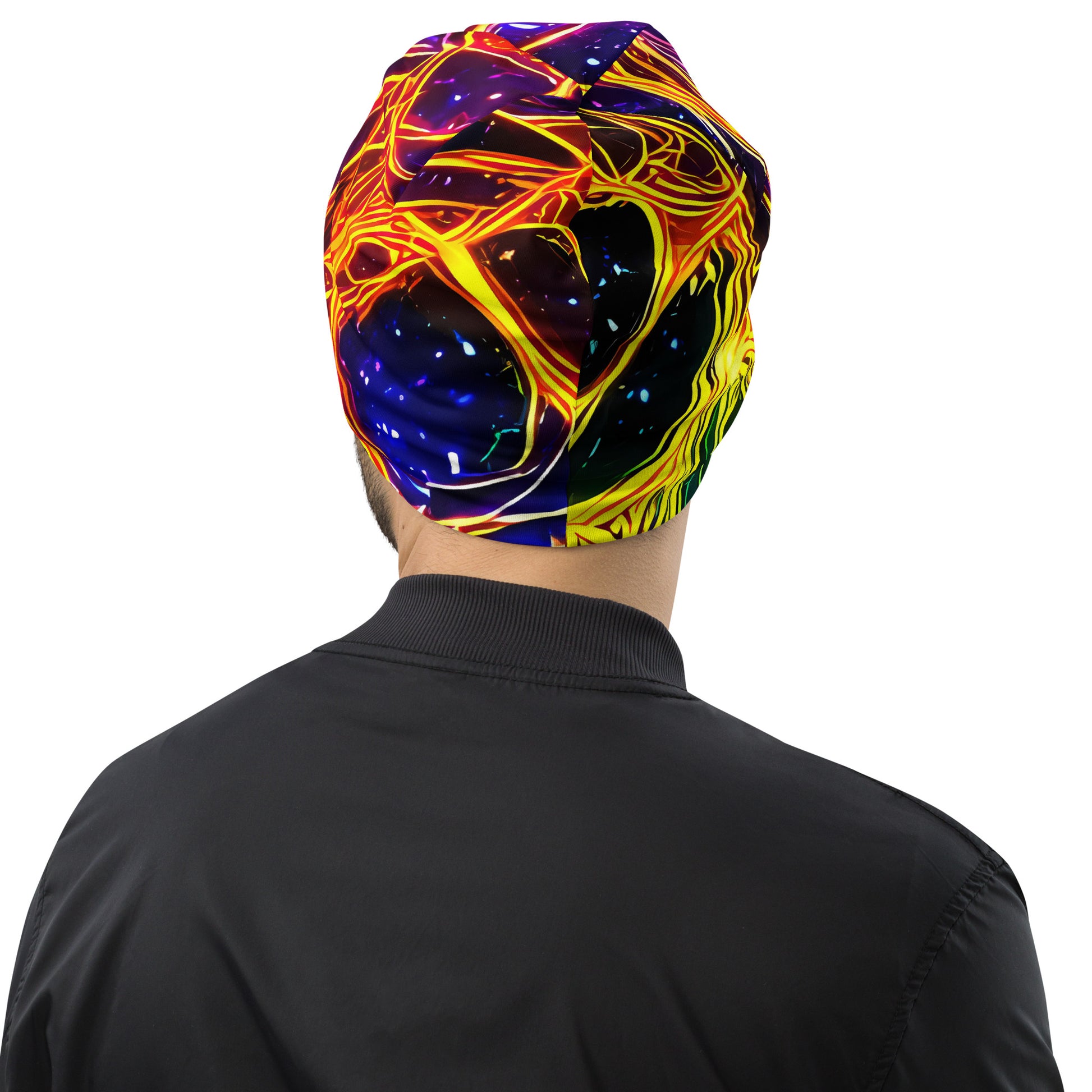 Elevate your style to cosmic heights with our "Dancing in the Ether" beanie, where vibrant neon hues dance with cosmic blues and purples, creating a mesmerizing tapestry that embodies boundless energy and ethereal movement. This custom-designed, double-layered beanie is not just an accessory; it's a statement piece that reflects your bold personality and artistic flair, perfect for art gallery openings or avant-garde evening events. Embrace warmth, comfort, and a unique touch that ensures you stand out in every crowd.
