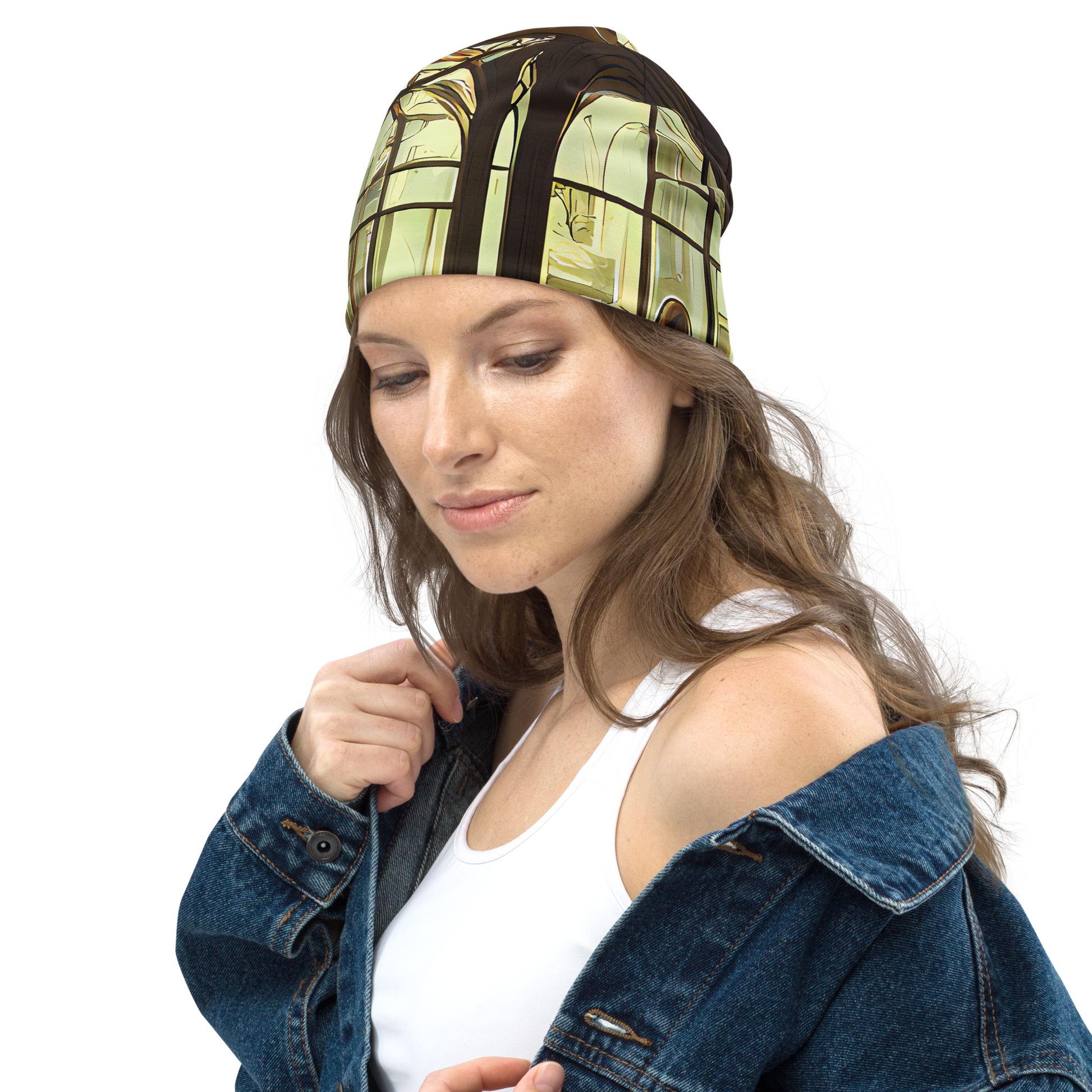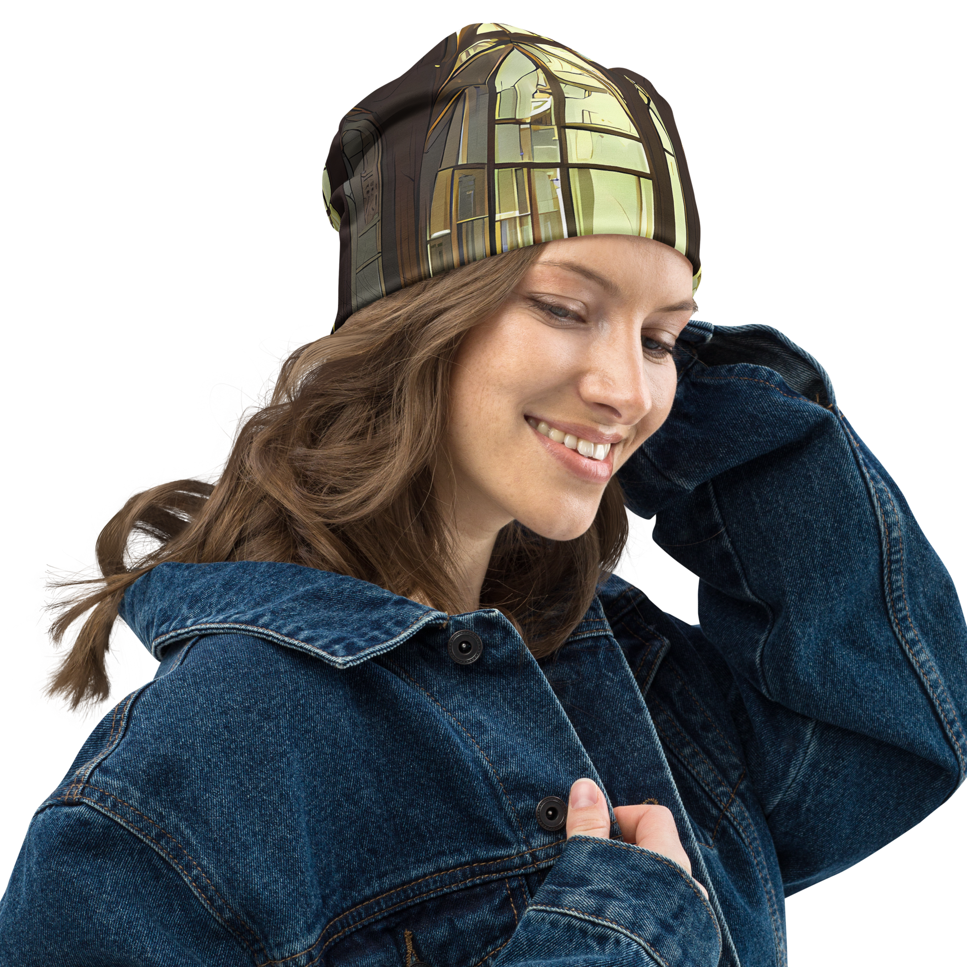 Wrap yourself in the essence of autumn elegance with our "Dutch Perspective" beanie. This exclusive headwear piece is a sartorial nod to the serene and structured beauty of classic artistry. Its design features a symphony of golden browns, soft creams, and understated colors that dance across the fabric in a play of light and shadow, reminiscent of the tranquil scenes from a bygone era. Perfect for adding a touch of sophistication to any ensemble, this beanie is your companion for crisp days and sophisticated nights out.