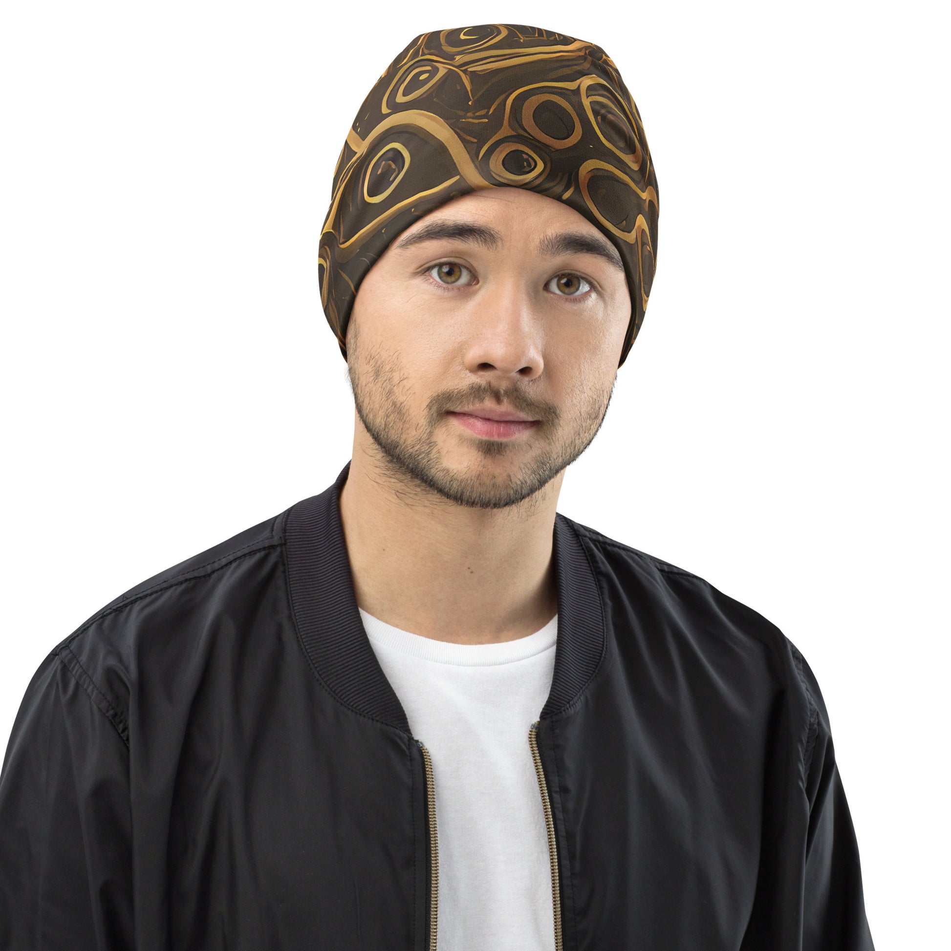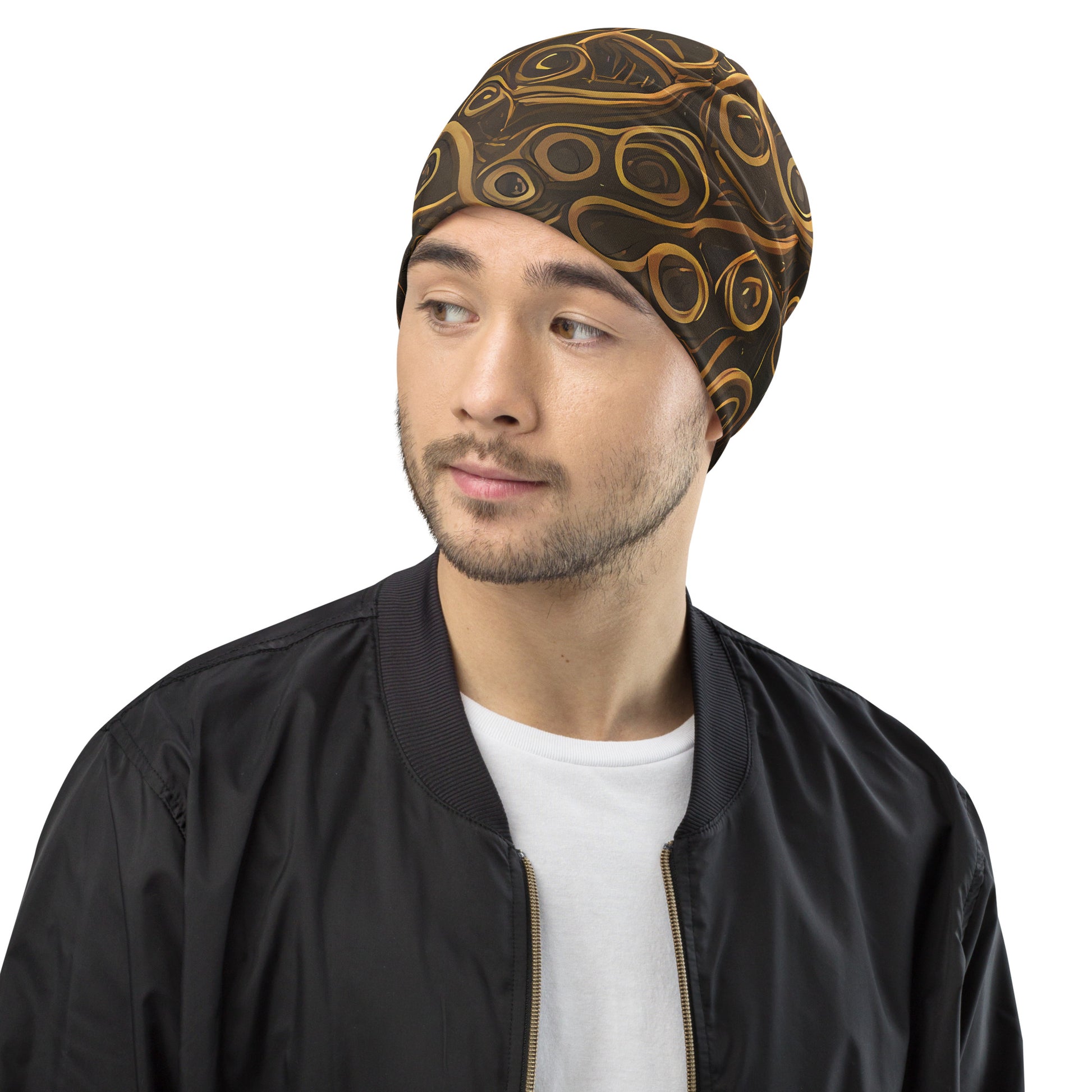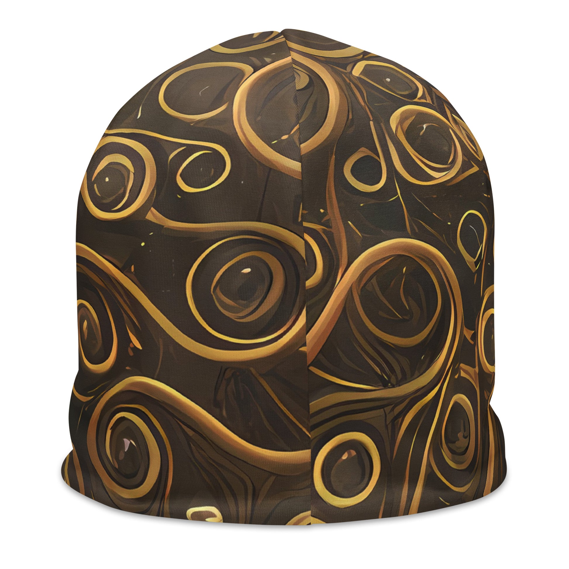 Step into a realm of cosmic elegance with our "Ethereal Coils" beanie, where swirling golden spirals dance against a deep, star-speckled night sky. This luxurious accessory not only keeps you warm but also elevates your style, making it the perfect companion for galas or sophisticated evenings. Each beanie is a unique masterpiece, designed to resonate with those who embody both introspection and bold artistic flair. Don't just wear a beanie; wear a statement of individuality and charm.
