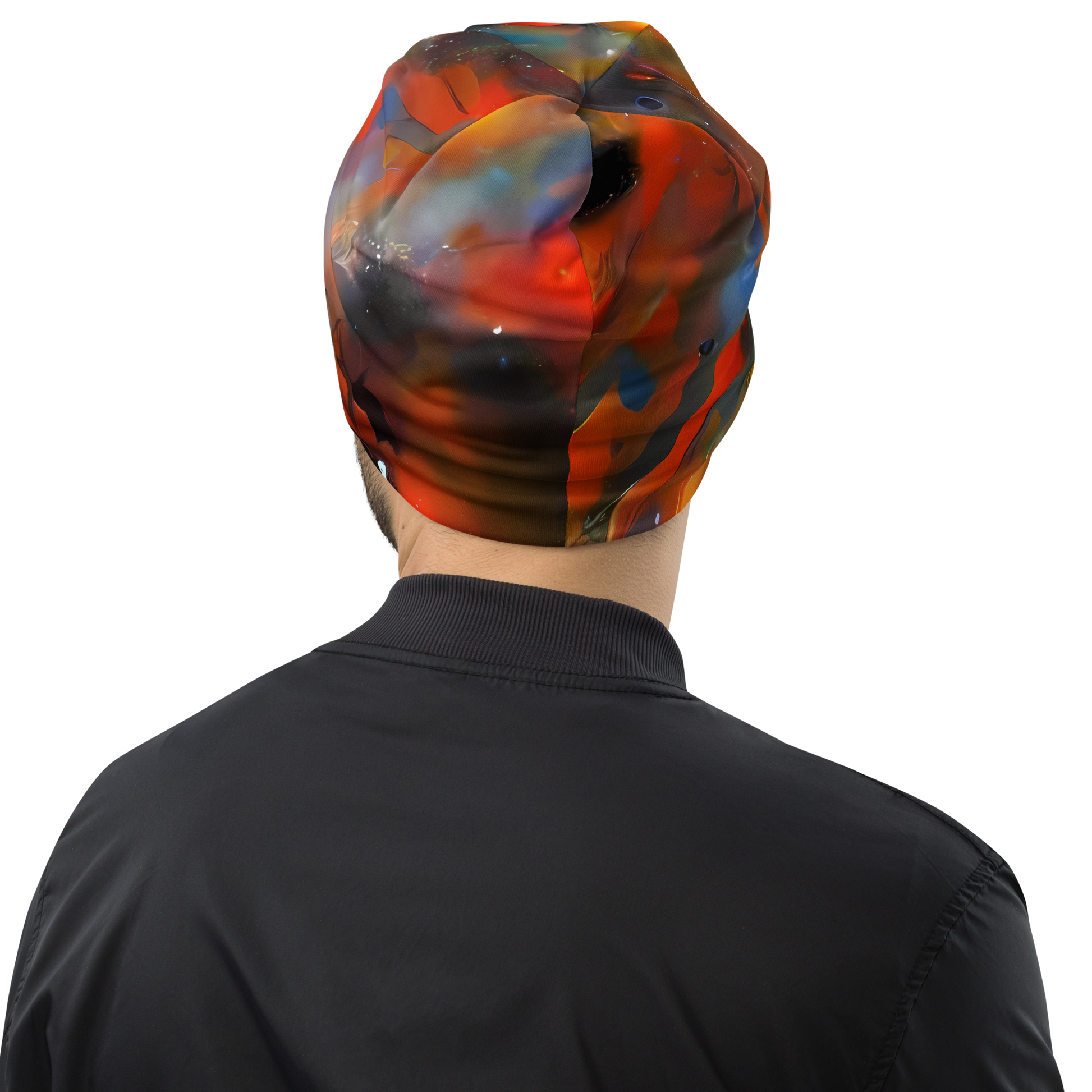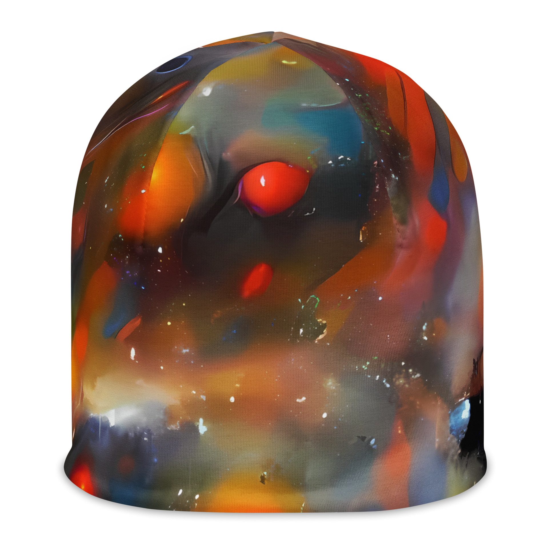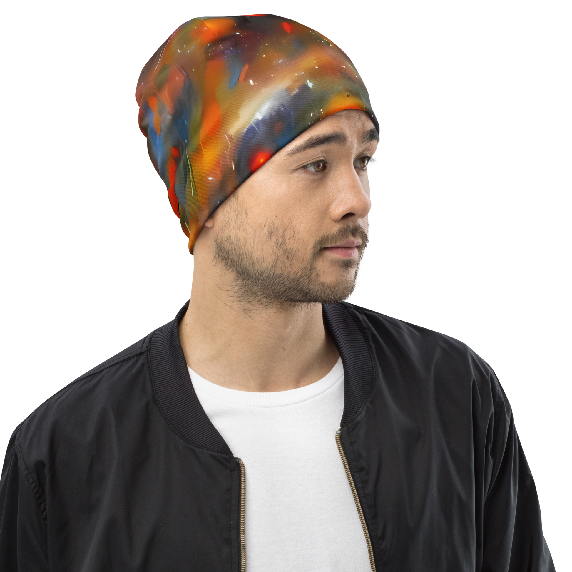 Step into the cosmos with our "Ethereal Eclat" beanie, where vibrant oranges and deep blues swirl in a celestial dance that captures the essence of artistic expression. This custom-designed, double-layered beanie is not just an accessory; it's a statement piece that radiates sophistication and allure. Each beanie features a unique AI-generated design, ensuring that your style is as distinctive as the stars themselves. Perfect for high-end evening events or artistic gatherings, this beanie wraps you in warmth and comfort while showcasing your bold personality.