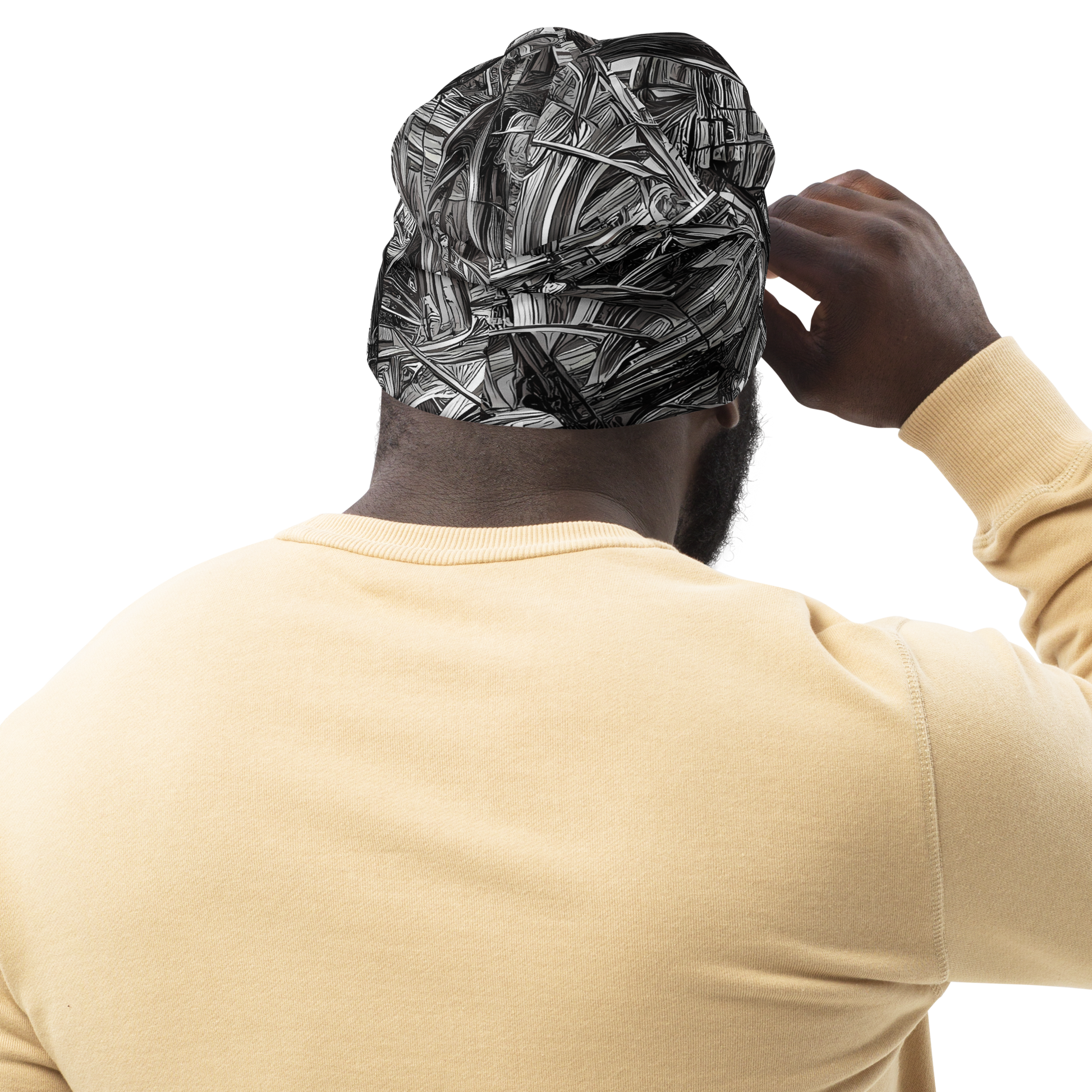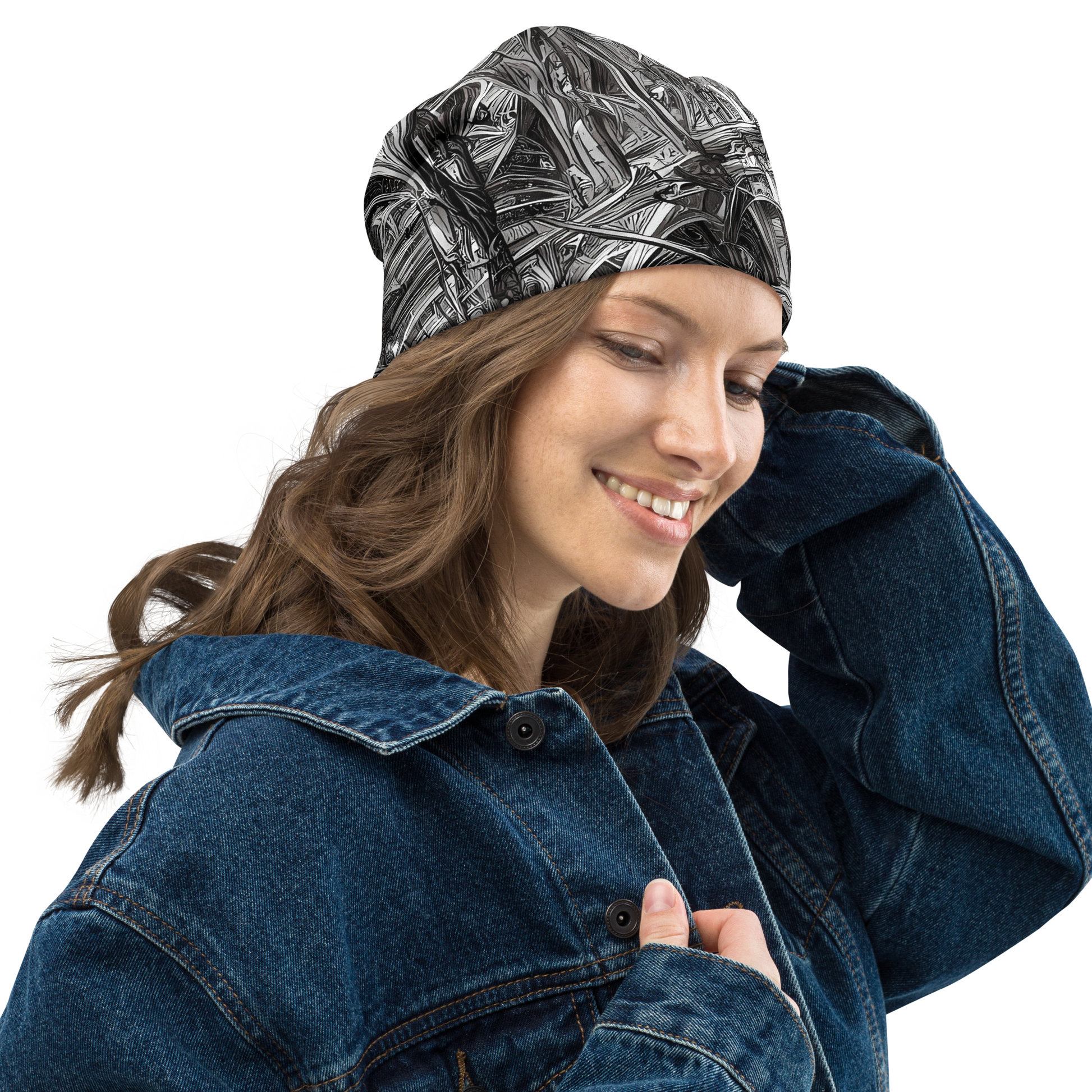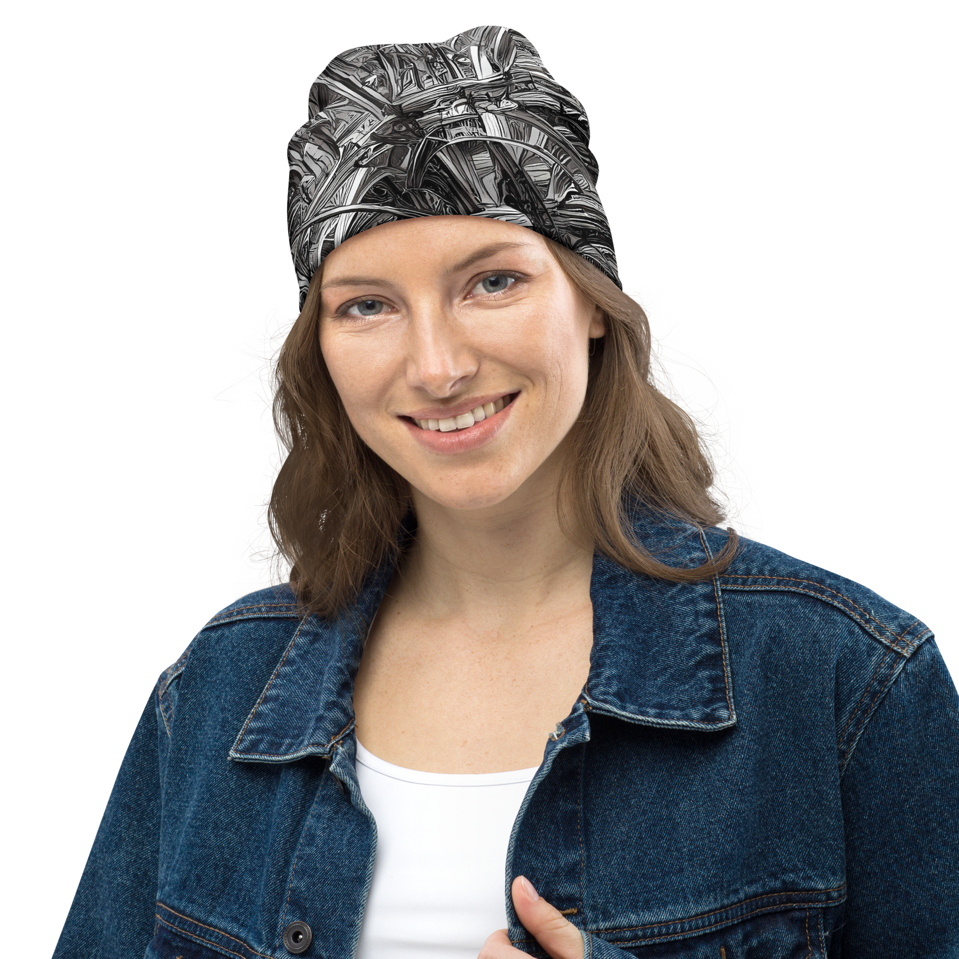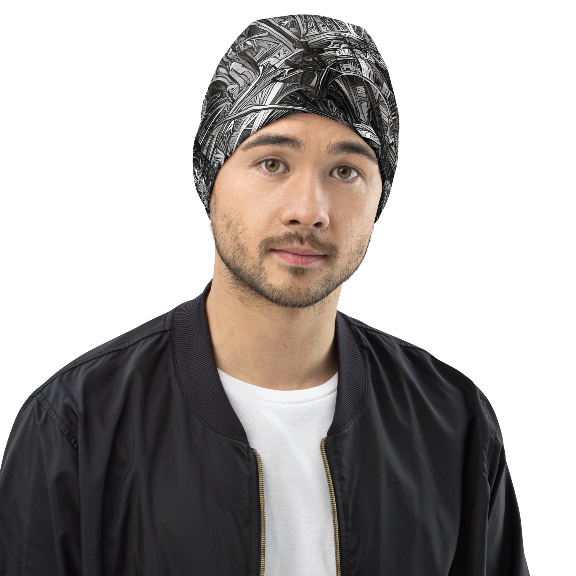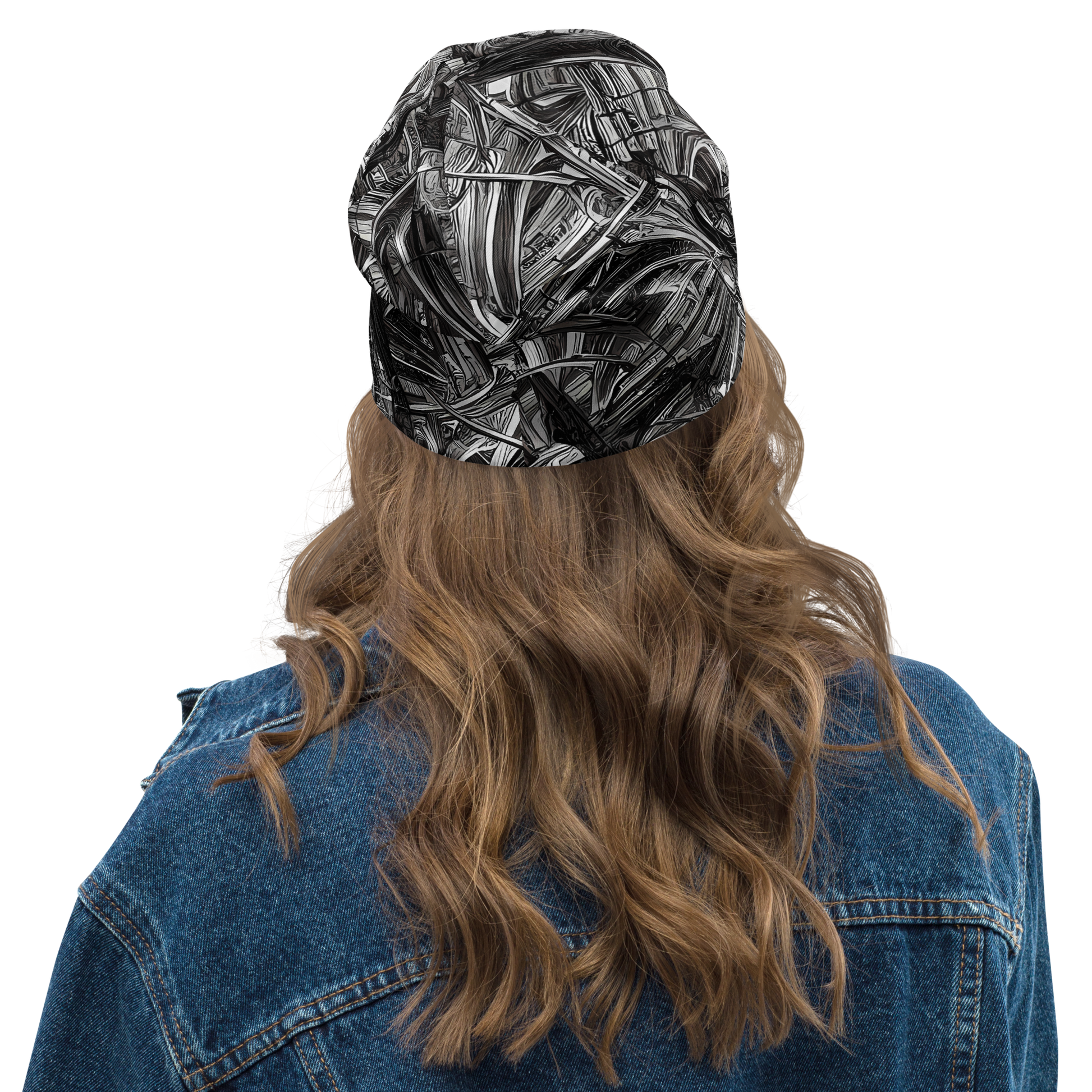 Step into a realm of dark elegance and mystery with our custom-designed, double-layered beanie. Featuring a mesmerizing pattern of intricate, swirling arches and structures in monochromatic hues, this beanie evokes the grandeur and complexity of architectural fantasies. Perfect for bold, imaginative personalities, it's an ideal accessory for avant-garde events, gothic-themed gatherings, or simply adding a touch of extraordinary style to your autumn and winter wardrobe.