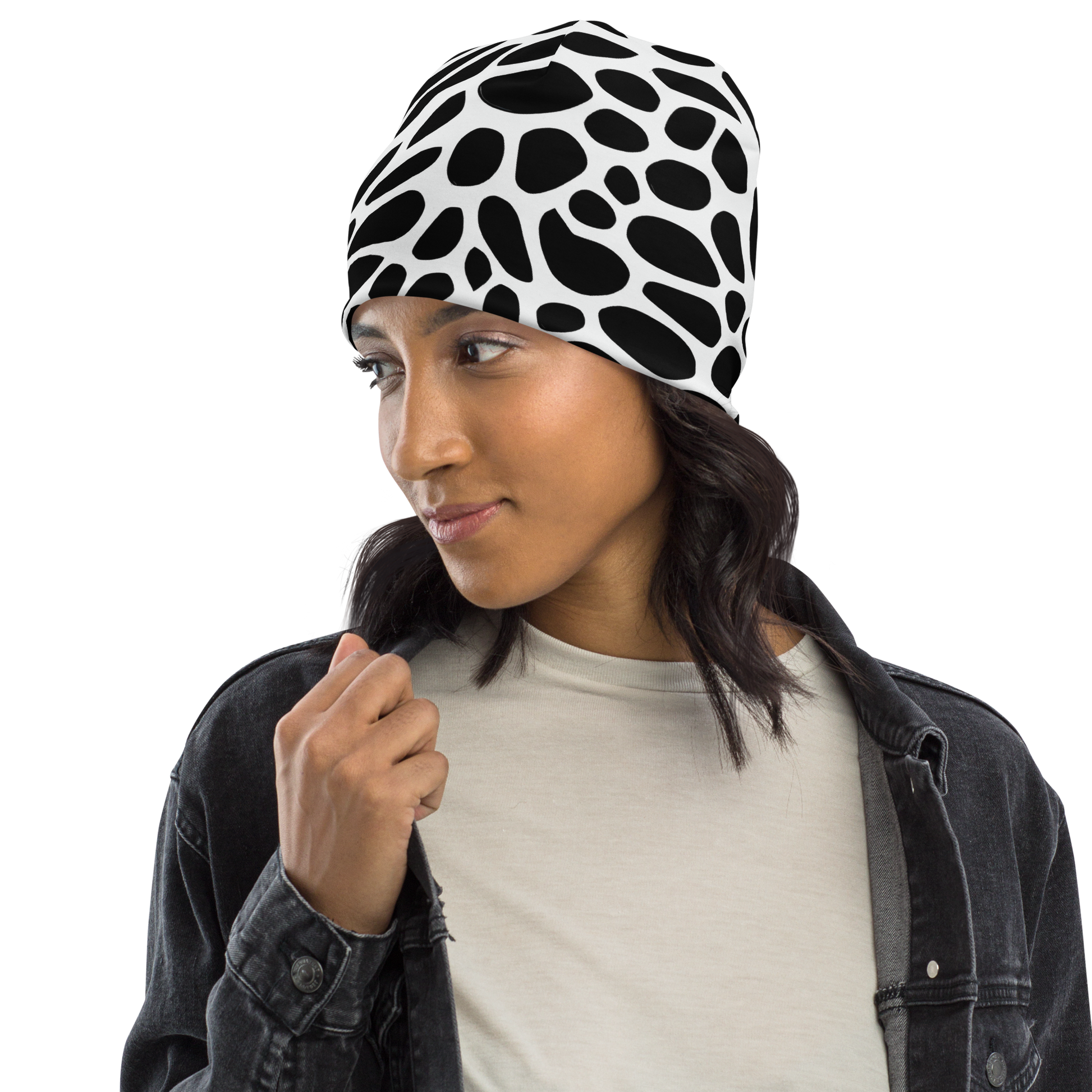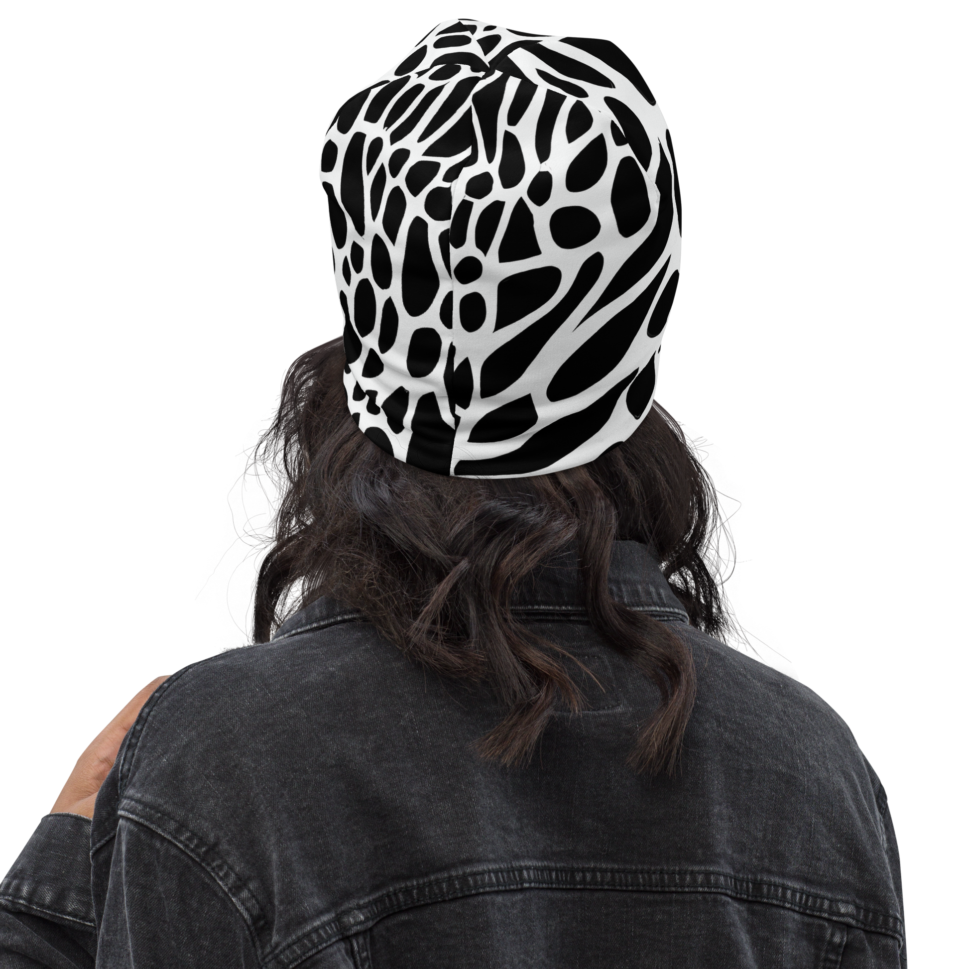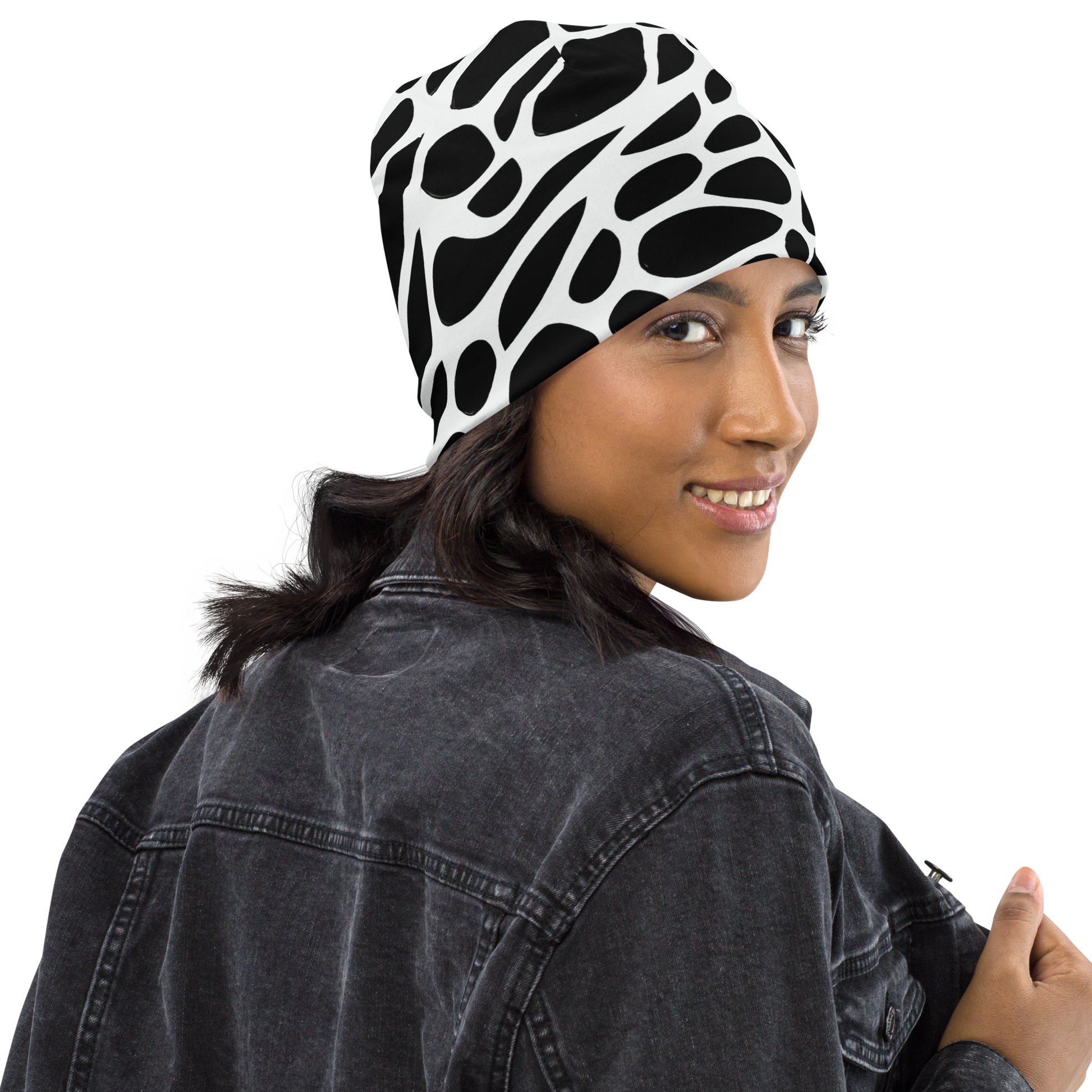 Elevate your winter wardrobe with our custom-designed, double-layered beanie featuring a striking black and white pattern of organic, flowing shapes. Inspired by the provocative and stylish essence of renowned artists, this design evokes bold sophistication and edgy elegance, perfect for evening events, art gallery openings, and fashion-forward gatherings. Crafted for those who dare to stand out, this beanie seamlessly blends classic monochrome with a contemporary twist.