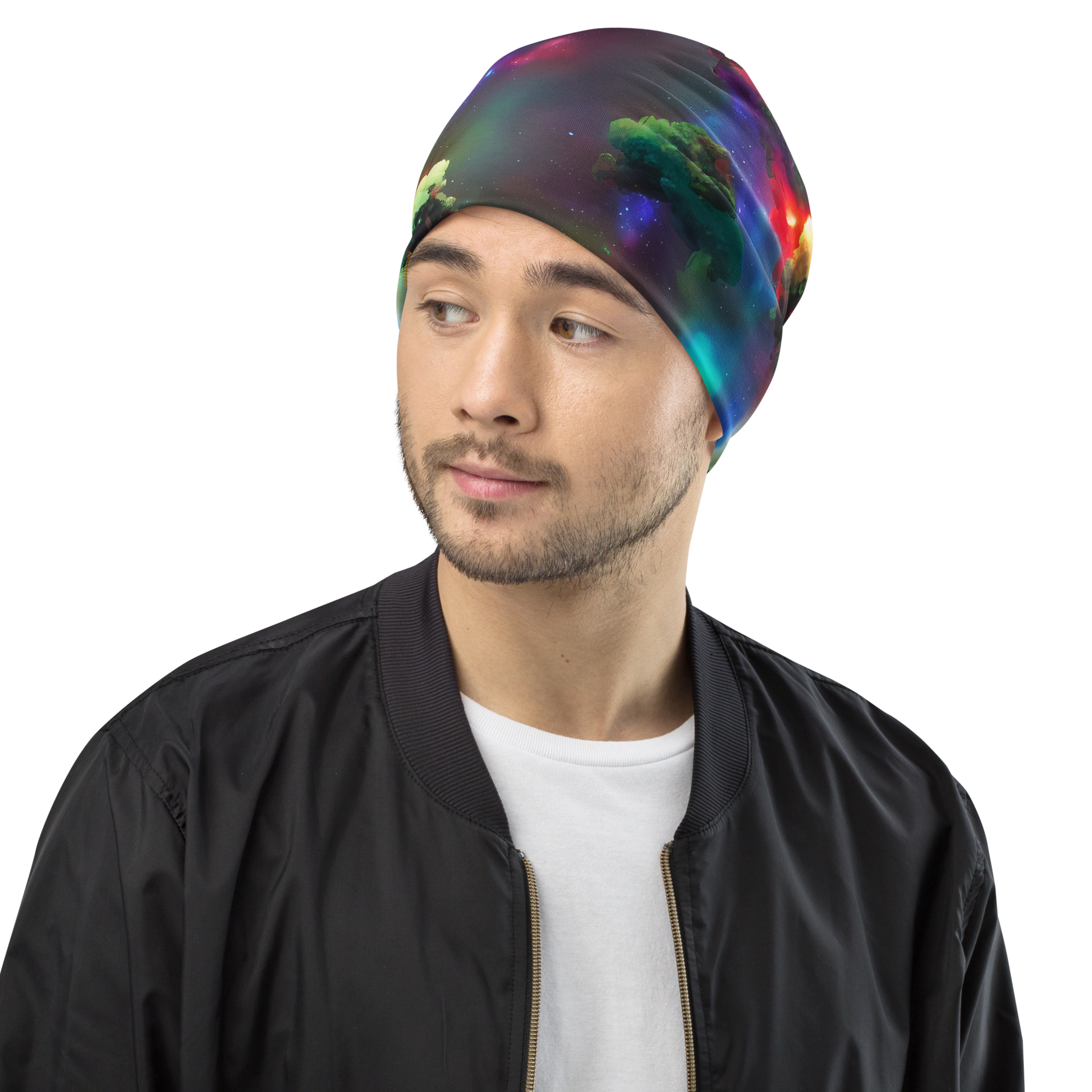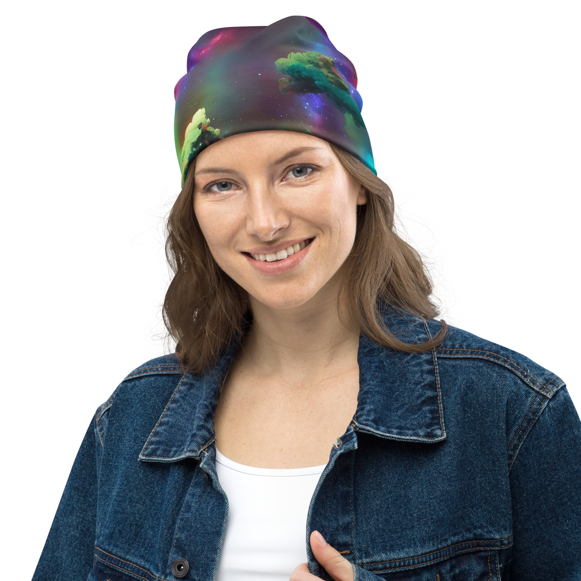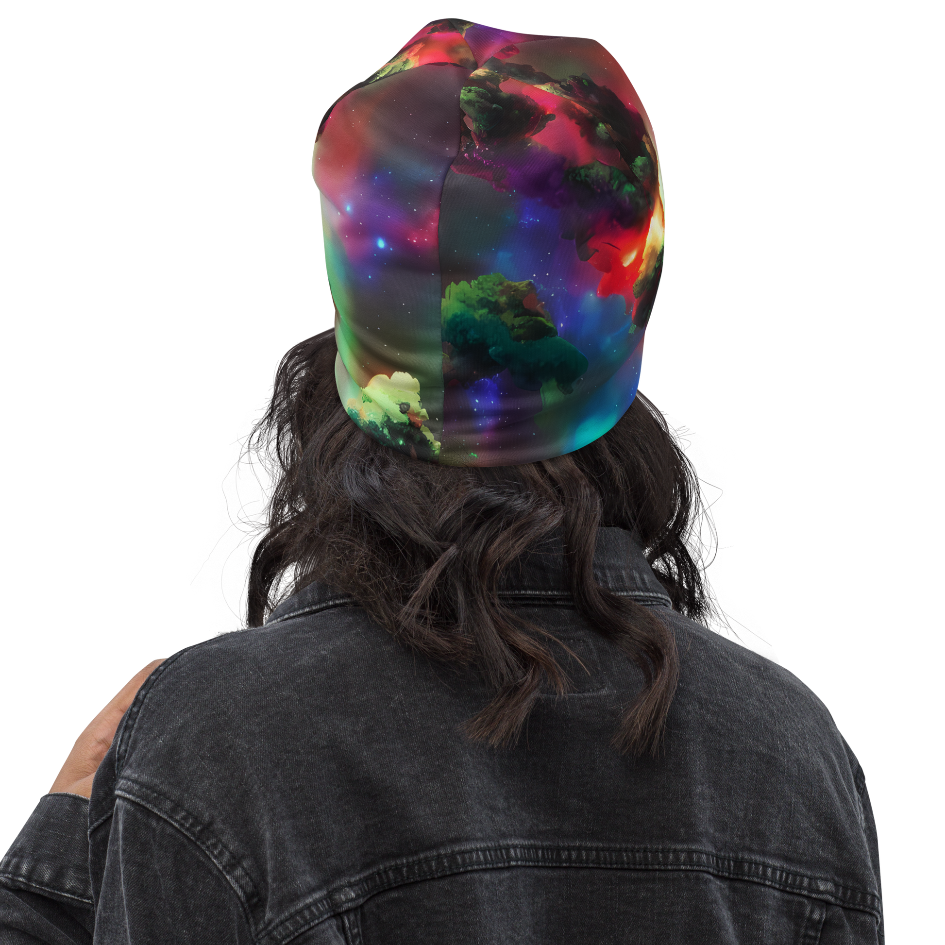 Transform your look with our double-layered beanie, featuring a cosmic tapestry of swirling, vibrant colors inspired by ethereal landscapes. Perfect for music festivals, night-time events, or artistic gatherings, this beanie is designed for free-spirited individuals seeking to express their cosmic connection and vibrant personality. Handmade with precision and care, it offers unparalleled comfort and style, making it an essential accessory for spring and summer.