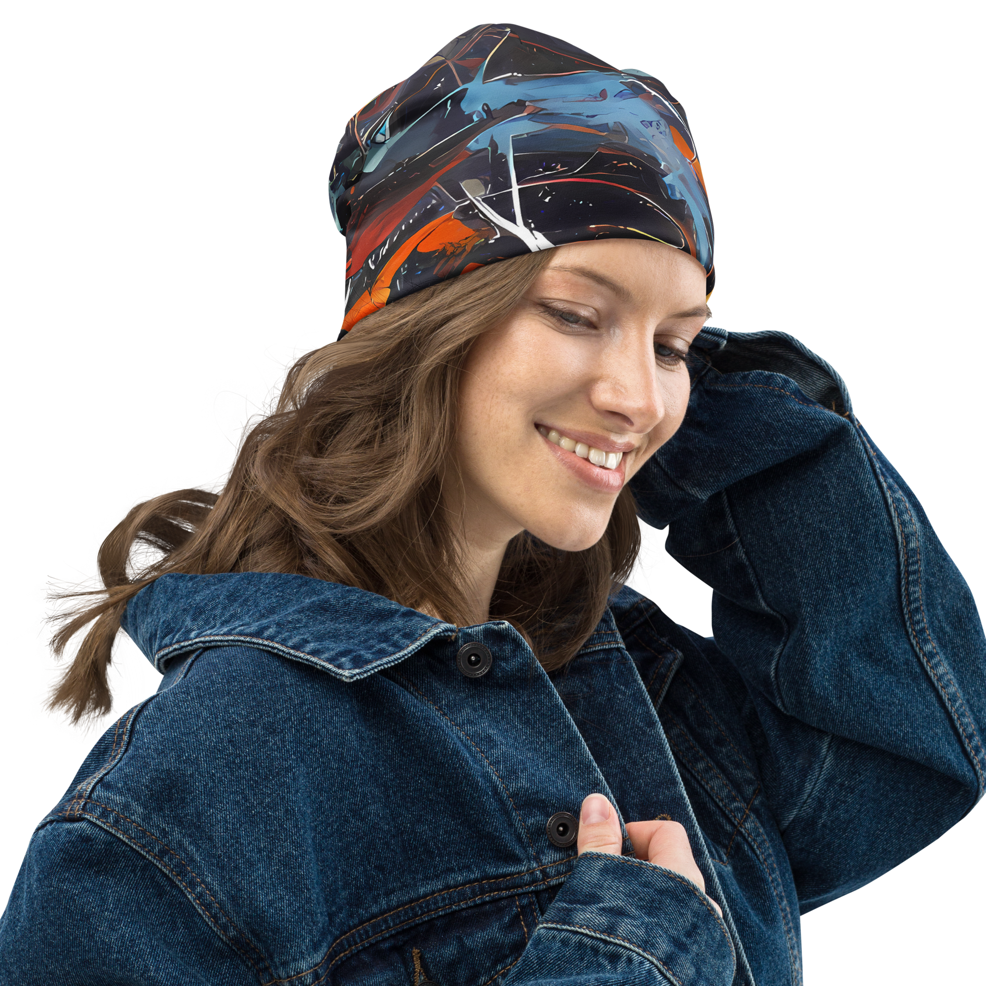 Dive into the world of abstract expression and cybernetic adventure with this statement-making beanie. Claim your piece of wearable art today!