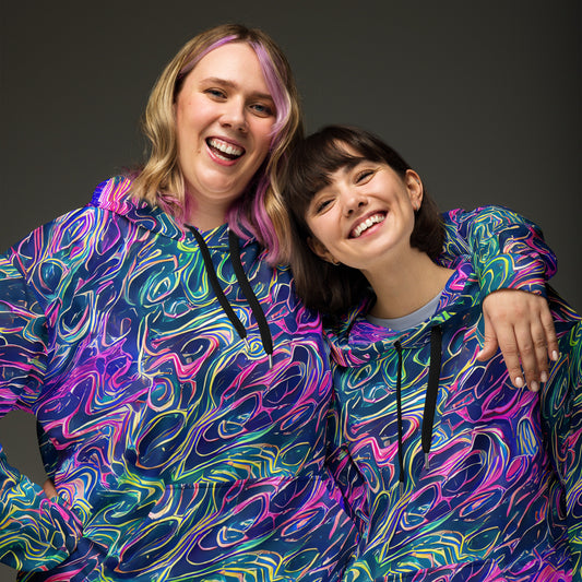 Unleash your bold spirit with our "Optic Tempest" beanie, where vibrant neon hues collide in a mesmerizing whirlwind of electric blues, vivid pinks, and radiant yellows. This double-layered masterpiece not only wraps you in warmth and comfort but also transforms your look into a stunning statement piece, perfect for music festivals, art galleries, and electrifying night events. With its unique AI-generated design, each beanie is a one-of-a-kind work of art that reflects your adventurous style.
