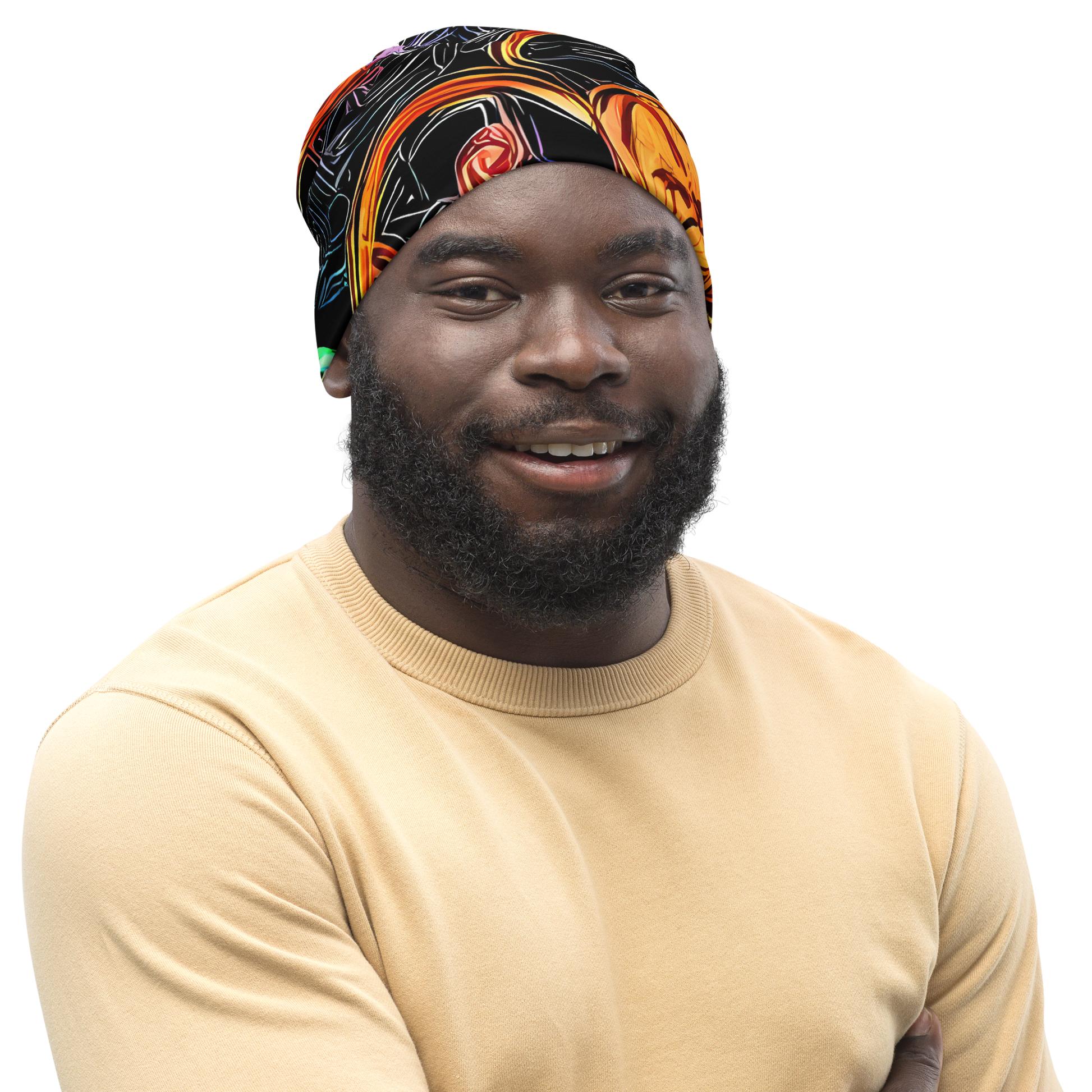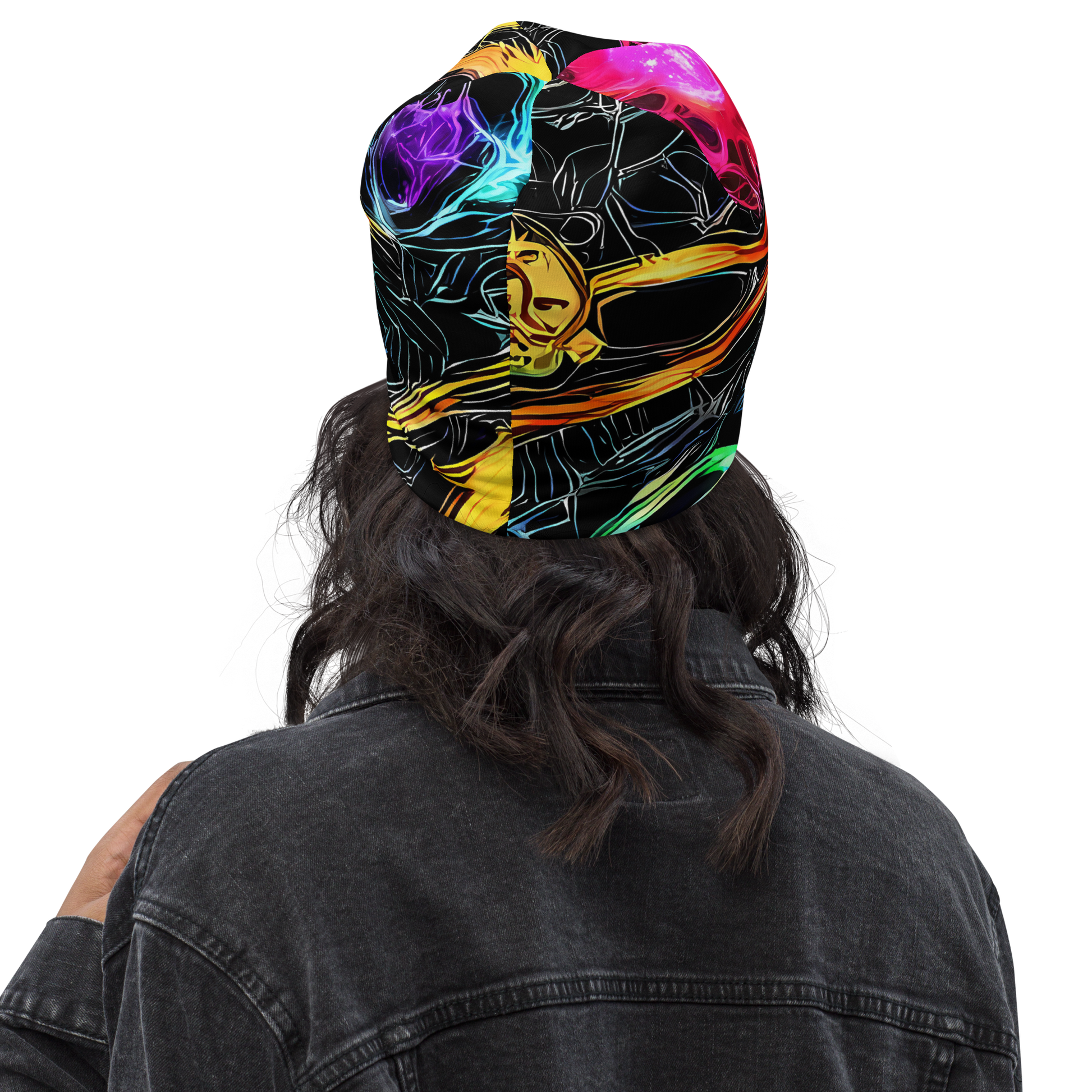 Ignite your wardrobe with the cosmic vibrance of our double-layered beanie, where neon pinks, oranges, yellows, and blues dance against a deep black canvas. Each piece is a tribute to the visionary spirit, capturing the essence of a fantastical and abstract universe in perpetual motion. Ideal for those who dare to stand out at music festivals or art events, this beanie is a statement of boldness and creativity for the spring and summer seasons.