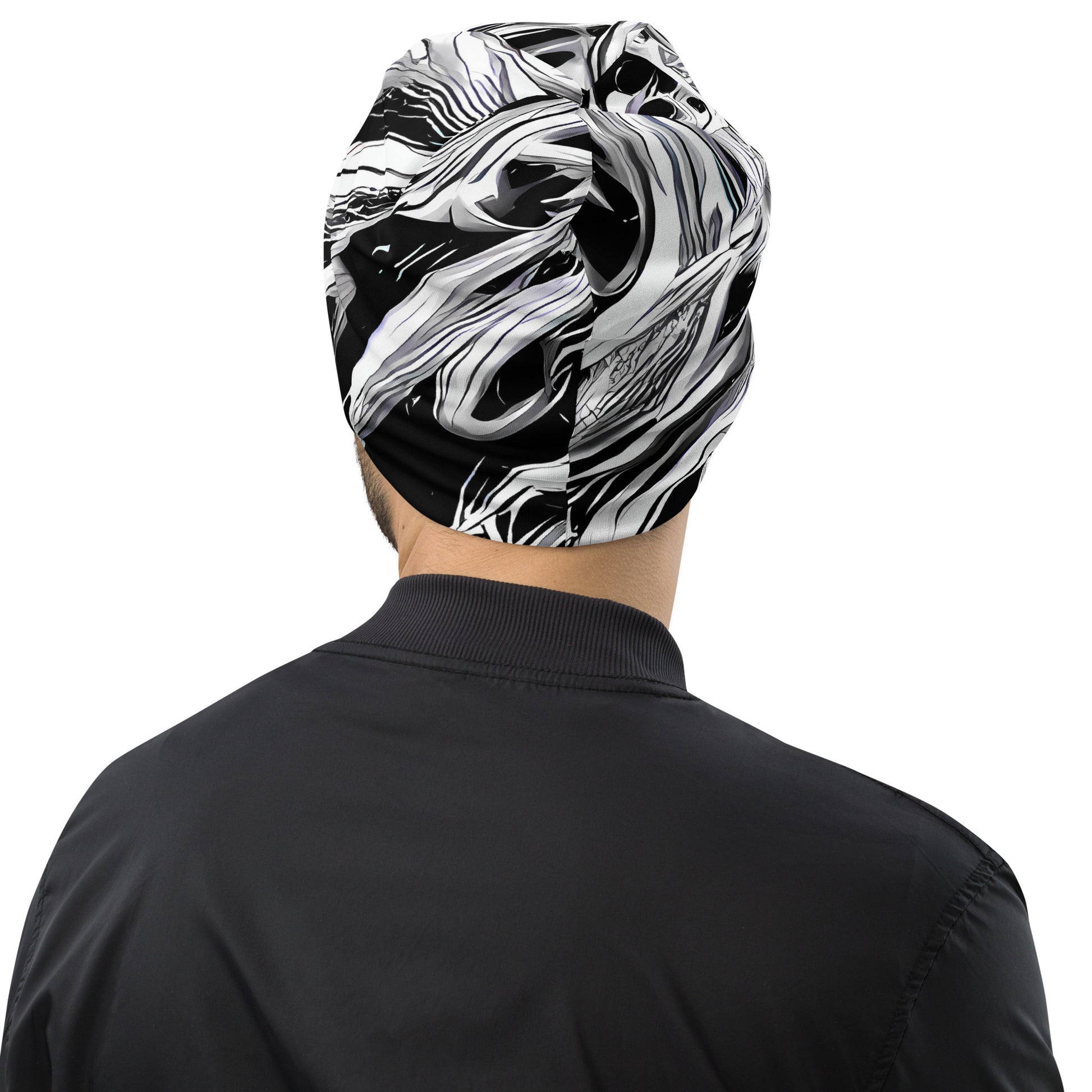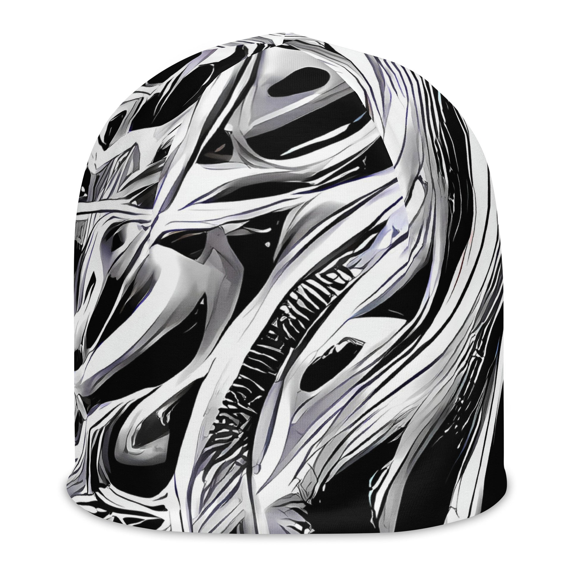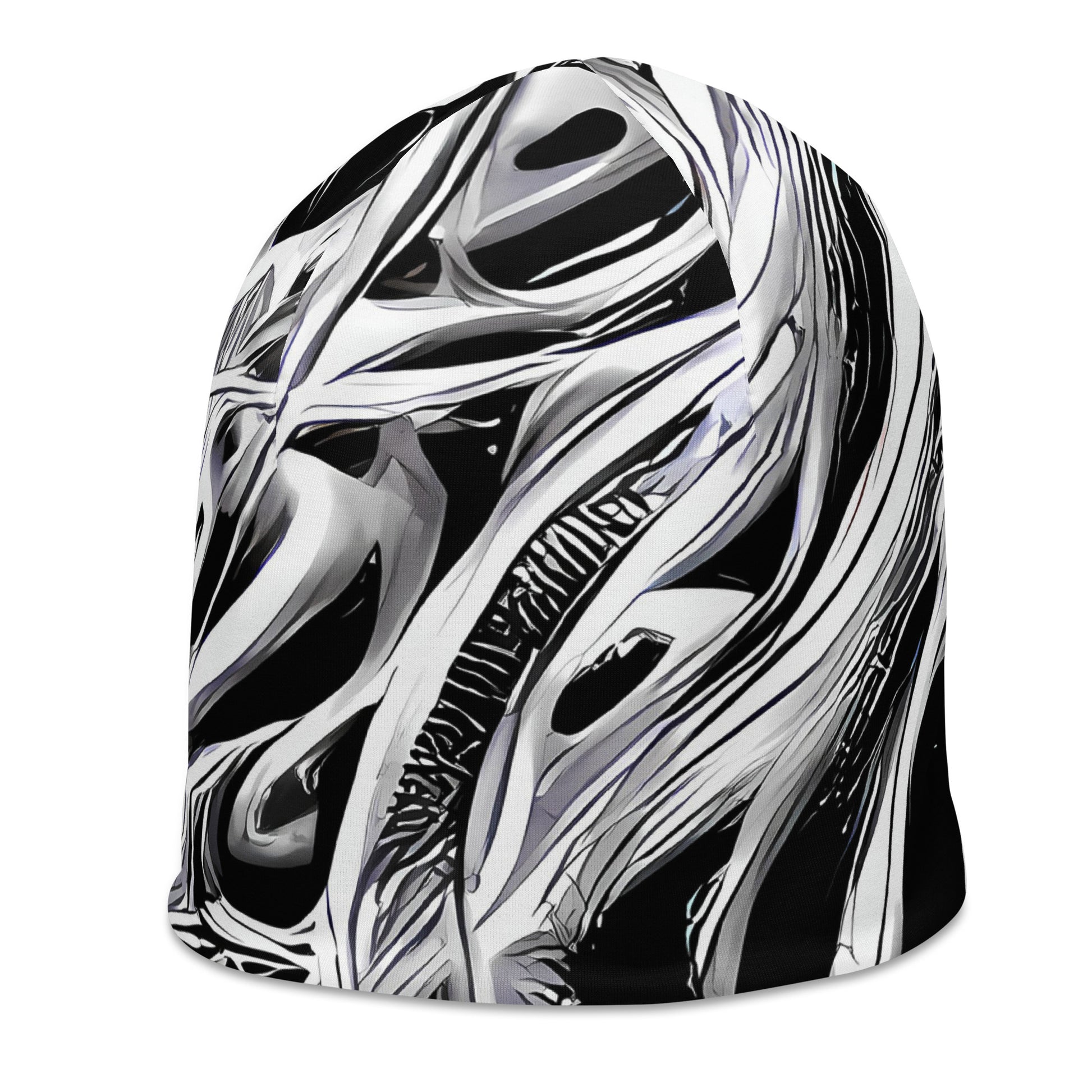 Elevate your winter wardrobe with our "Silver Shadows" beanie, where warmth meets artistry. This custom-designed, double-layered beanie features a stunning interplay of swirling silver and black forms, capturing the essence of movement and mystery. The intricate, metallic sheen of the design not only makes a bold statement but also adds a touch of sophistication, perfect for evening events or gallery openings. Stand out with a piece that is as unique as you are!