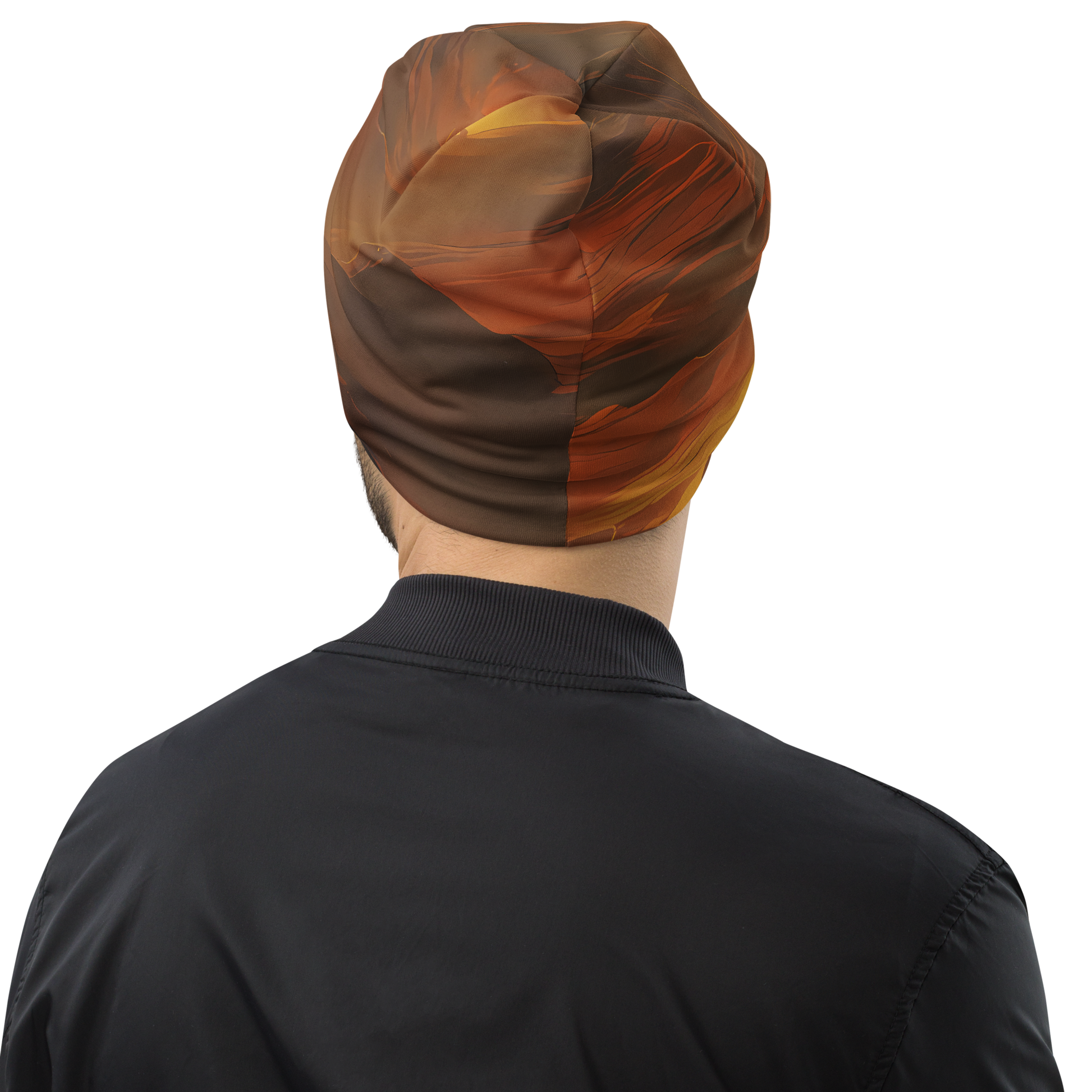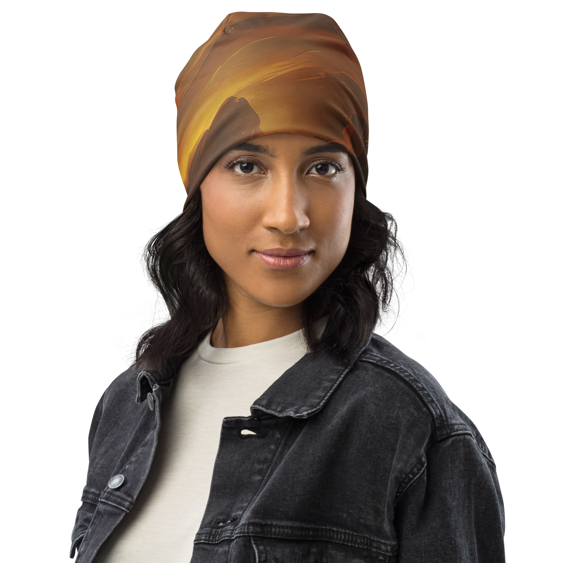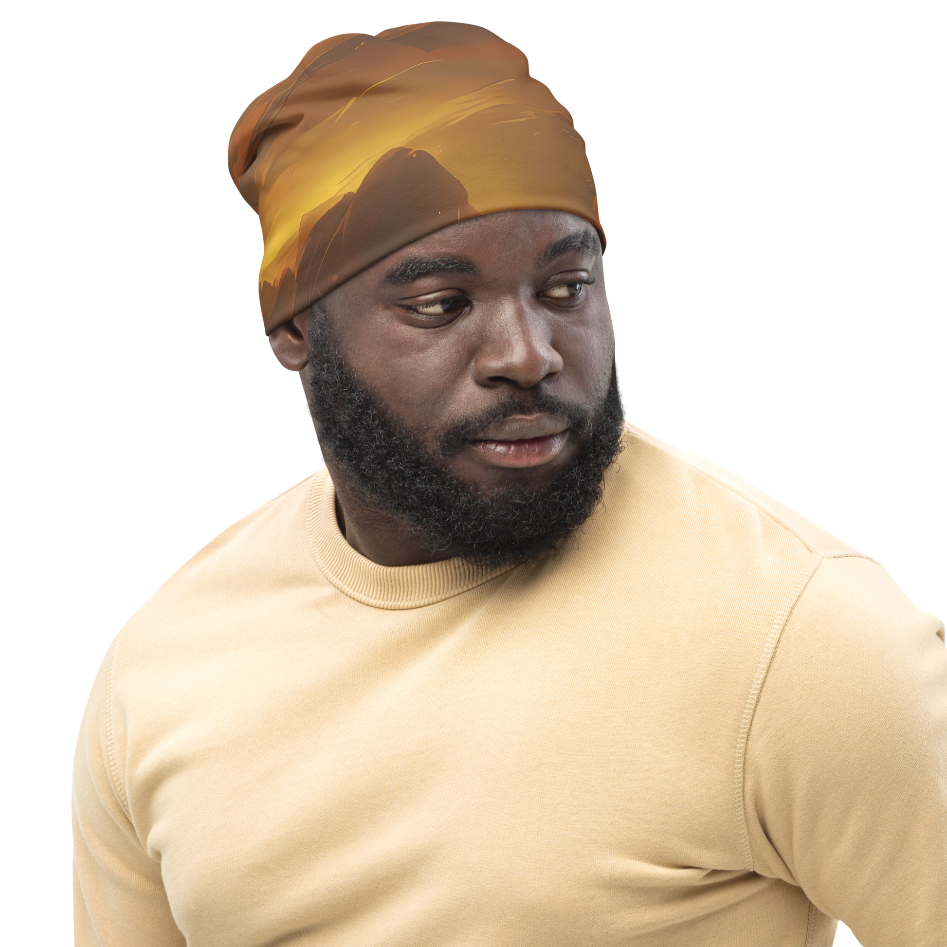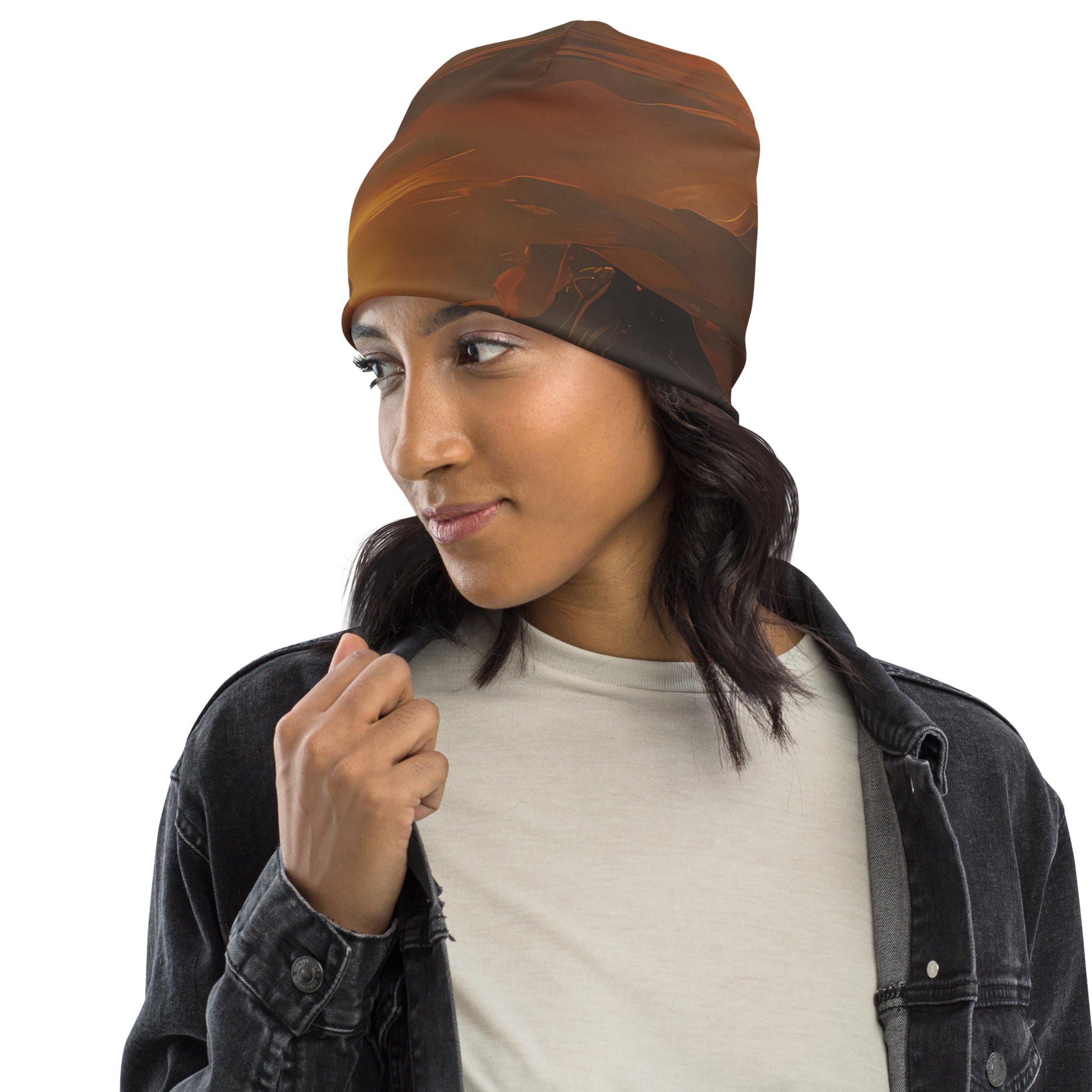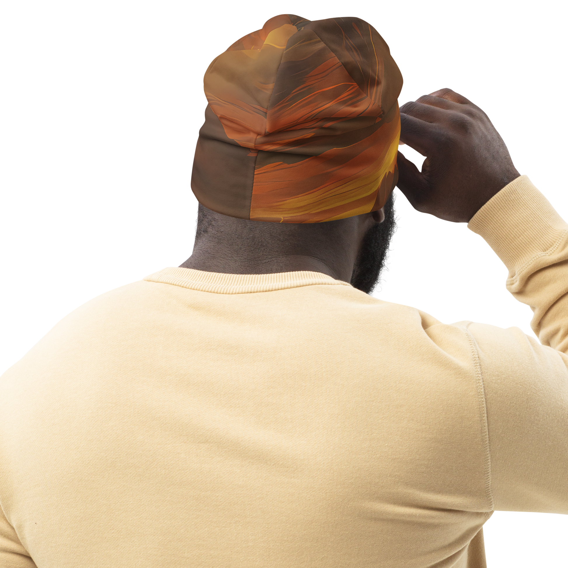 Step into a world of art and nature with our custom-designed, double-layered beanie, featuring a mesmerizing blend of fiery oranges, deep reds, and shadowy purples. Inspired by romantic landscapes and dramatic seascapes, this beanie captures the awe-inspiring beauty of a sunset over rugged cliffs and tranquil waters. Perfect for evening gatherings, art exhibitions, or autumn outings, it suits a confident, adventurous personality who appreciates the fusion of classic artistry and contemporary design.