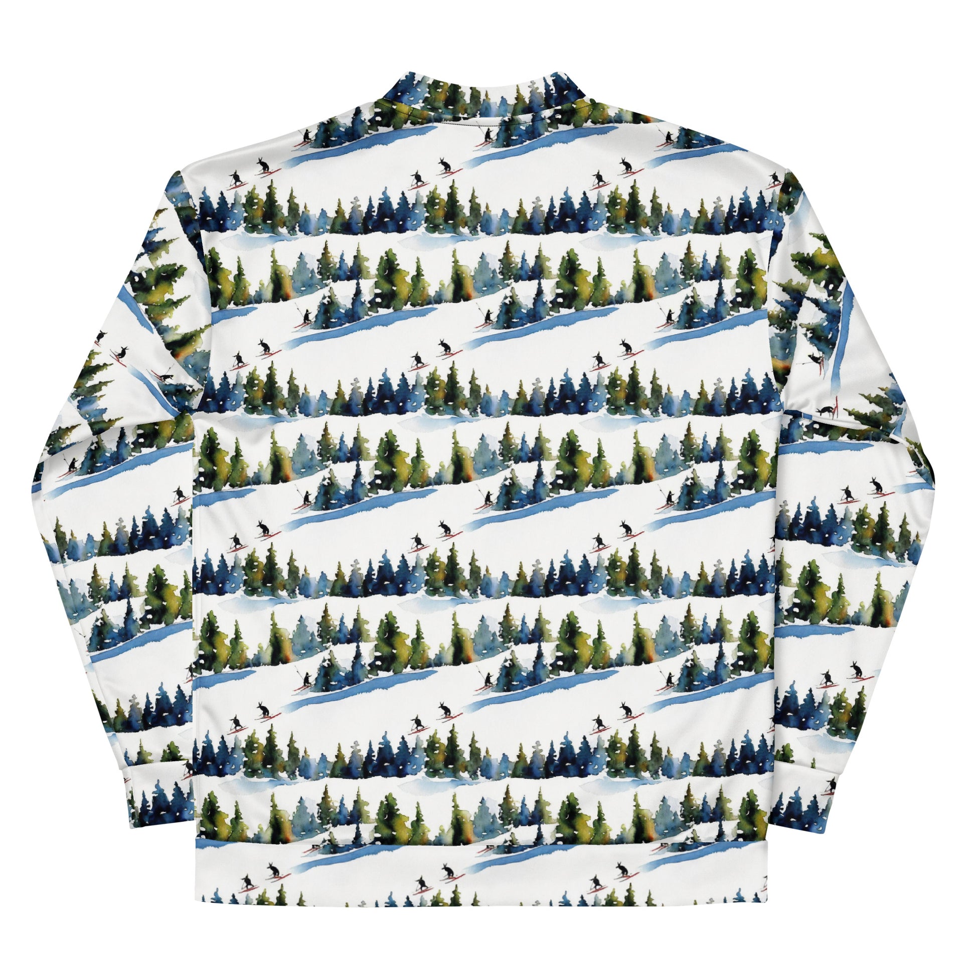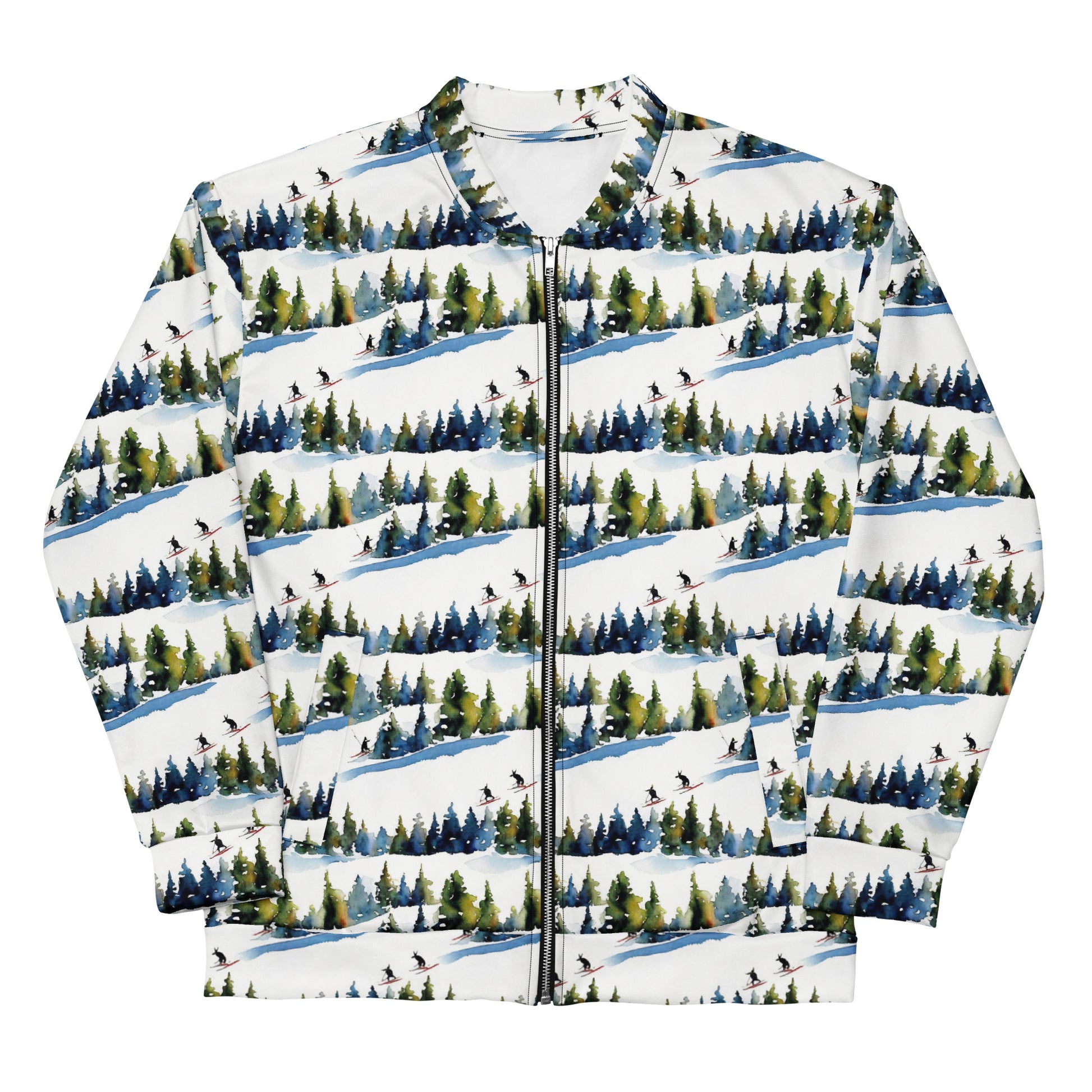 Embrace the spirit of adventure with our "Arctic Escape" Bomber Jacket, where alpine elegance meets playful whimsy. This stunning piece features a mesmerizing watercolor design of skiers gliding through lush evergreen forests, capturing the tranquility and exhilaration of winter escapades. Perfect for cozy gatherings or après-ski events, this jacket not only makes a bold fashion statement but also envelops you in dreamy comfort with its brushed fleece lining. Elevate your winter wardrobe with a jacket that reflects your unique personality and zest for life!