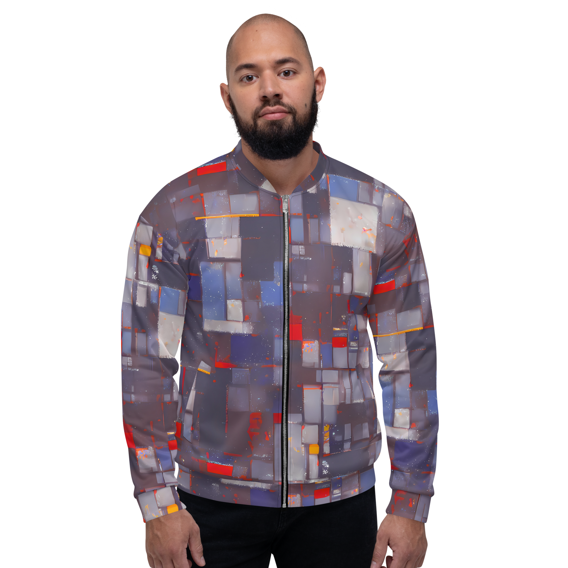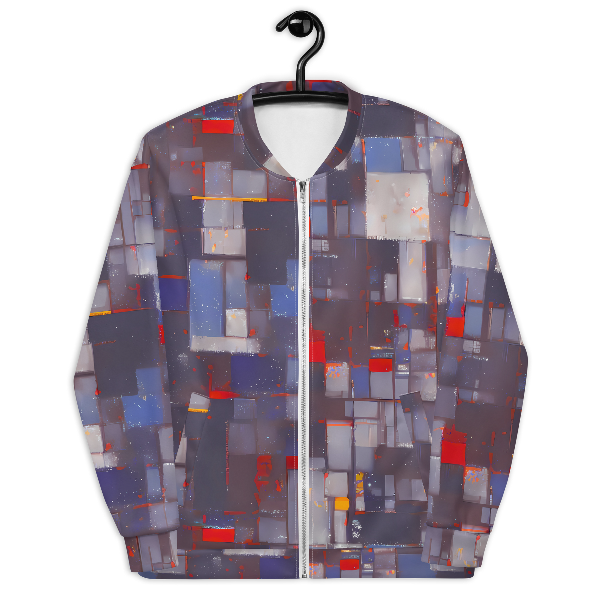 Unleash your inner art aficionado with this stunning Bomber Jacket, featuring a mesmerizing blend of geometric abstraction and fluid expressiveness in deep blues, grays, and vivacious red accents. Perfect for creative events or stylish urban gatherings, this jacket is a statement piece for those who appreciate modern art and have a flair for the unconventional. Embrace your unique style and make every outfit a masterpiece.