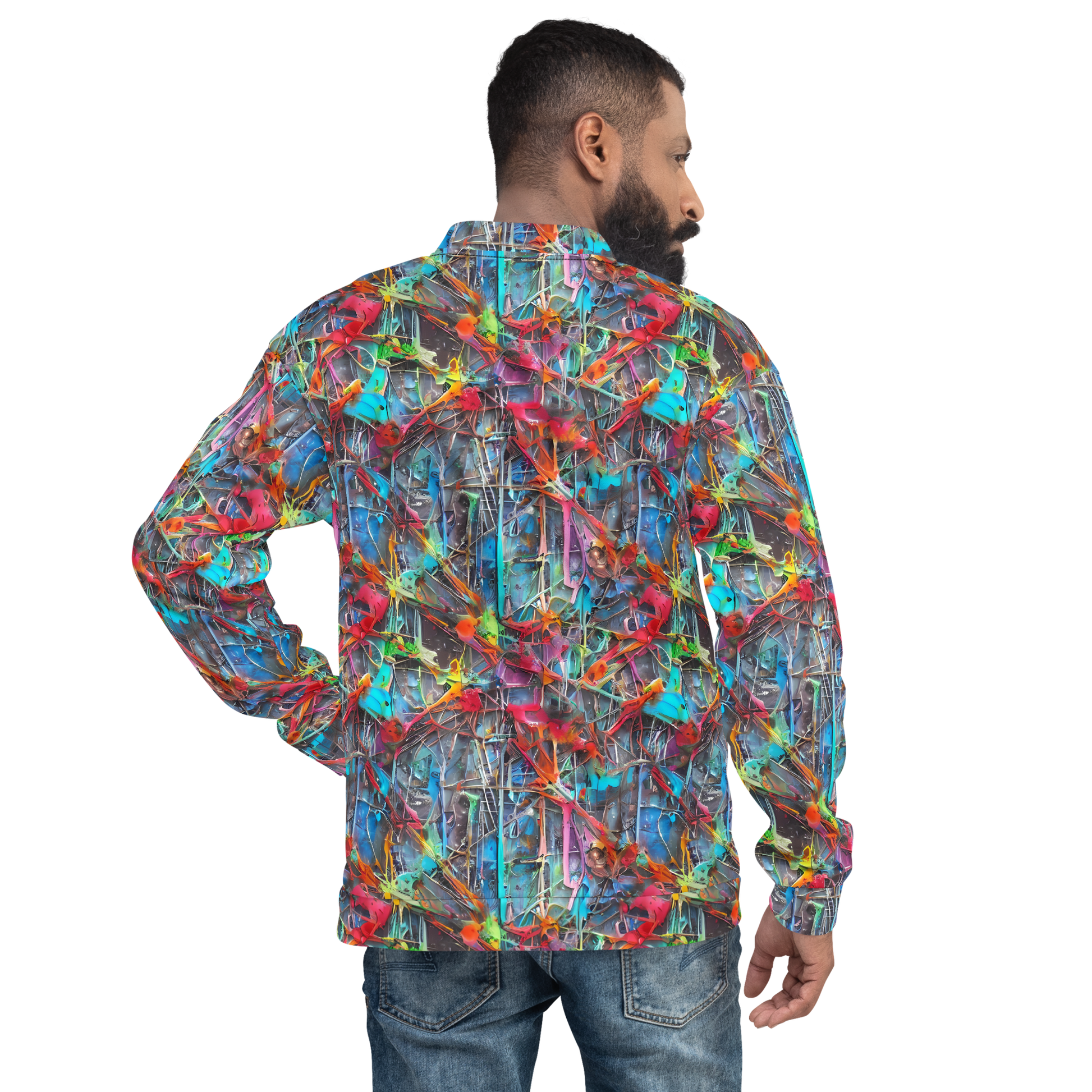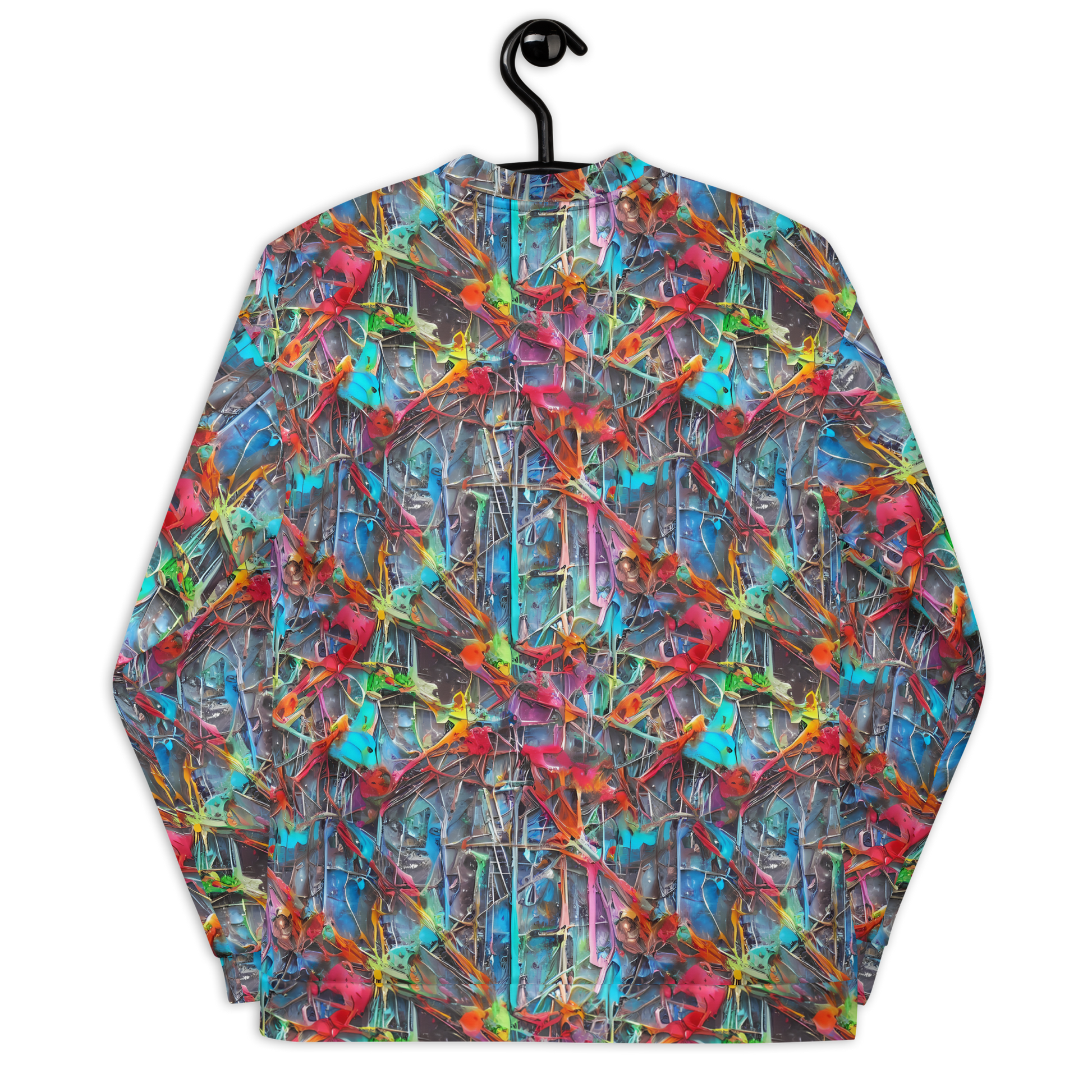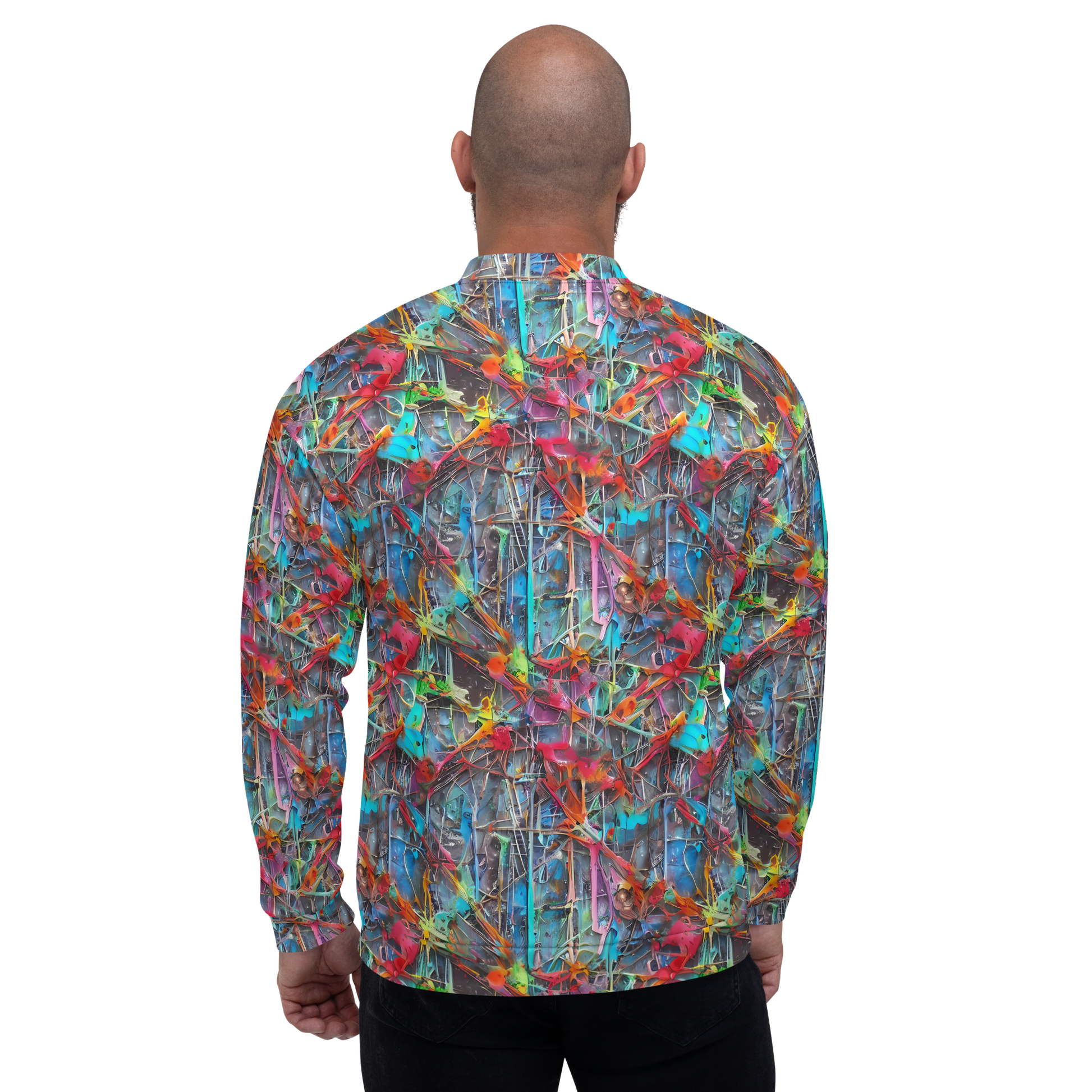 Unleash your inner rebel with our Ultimate Bomber Jacket, featuring a vibrant, AI-generated design inspired by the eclectic and chaotic beauty of urban art. This eye-catching jacket bursts with neon pinks, electric blues, and fiery oranges, set against a backdrop of cool grays and silvers, making it the perfect statement piece for bold personalities. Ideal for adding a splash of color to your spring or summer wardrobe, this jacket combines edgy aesthetics with unparalleled comfort.