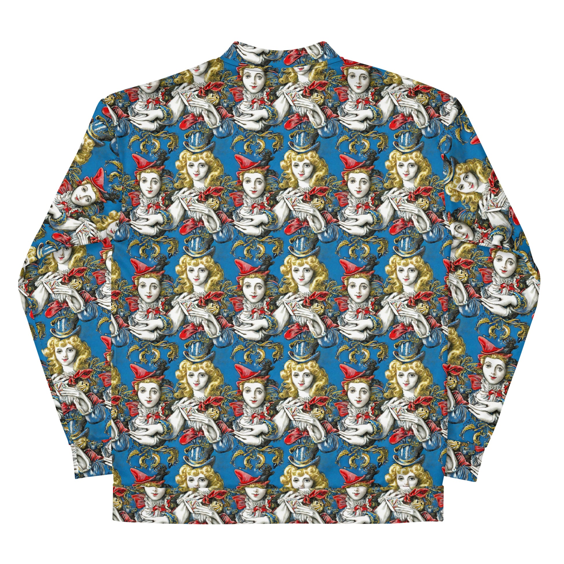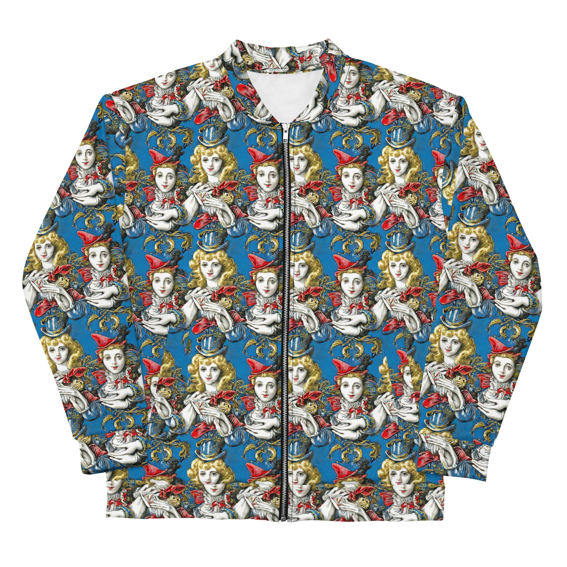 Step into a world of whimsy and wonder with our "Masquerade Echoes" Bomber Jacket, where vibrant blues, reds, and golds dance together in a tapestry of playful characters and ornate details. This striking piece captures the essence of a fantastical masquerade ball, making it the perfect companion for enchanting evenings or creative gatherings. Embrace your adventurous spirit and ignite your style with a jacket that transforms any outfit into a bold statement.