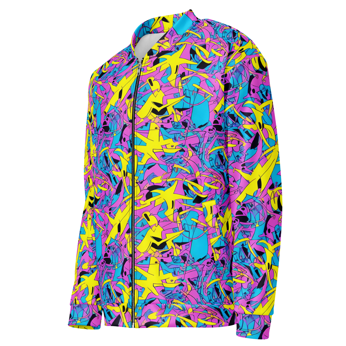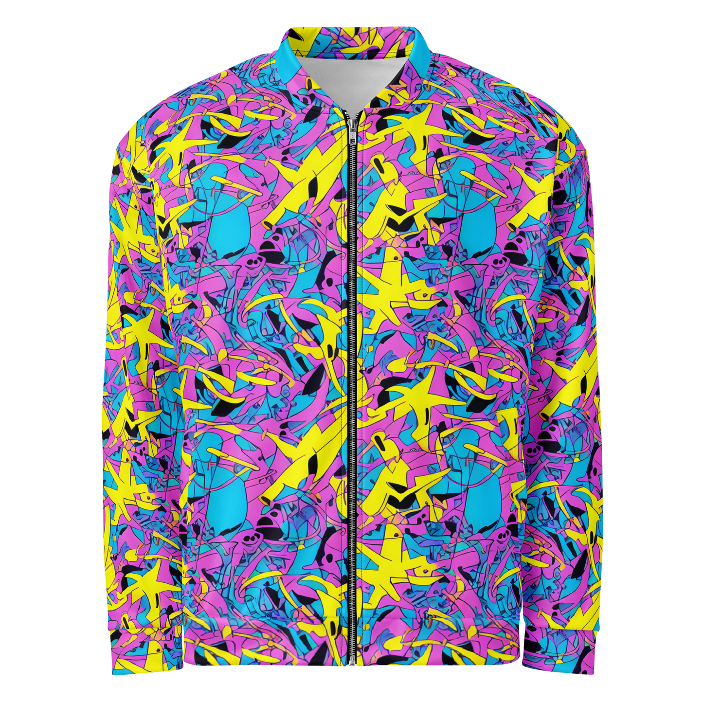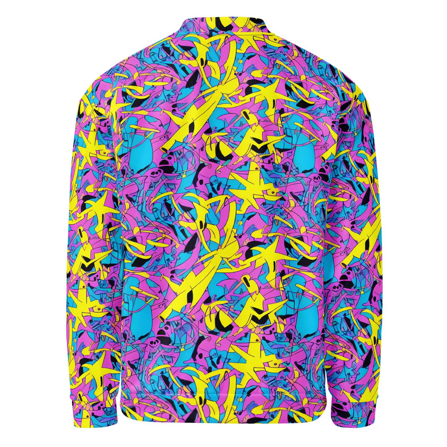 "Neon Jive" bursts with electric energy, featuring a vivid interplay of bright yellows, pinks, and blues in abstract, swirling shapes that evoke a sense of cosmic dance. The pattern's dynamic movement and bold colors create a vibrant, playful vibe, perfect for making a statement at music festivals, art galleries, or lively summer gatherings. Ideal for the adventurous and expressive personality, this design captures the essence of a futuristic, psychedelic journey through space.