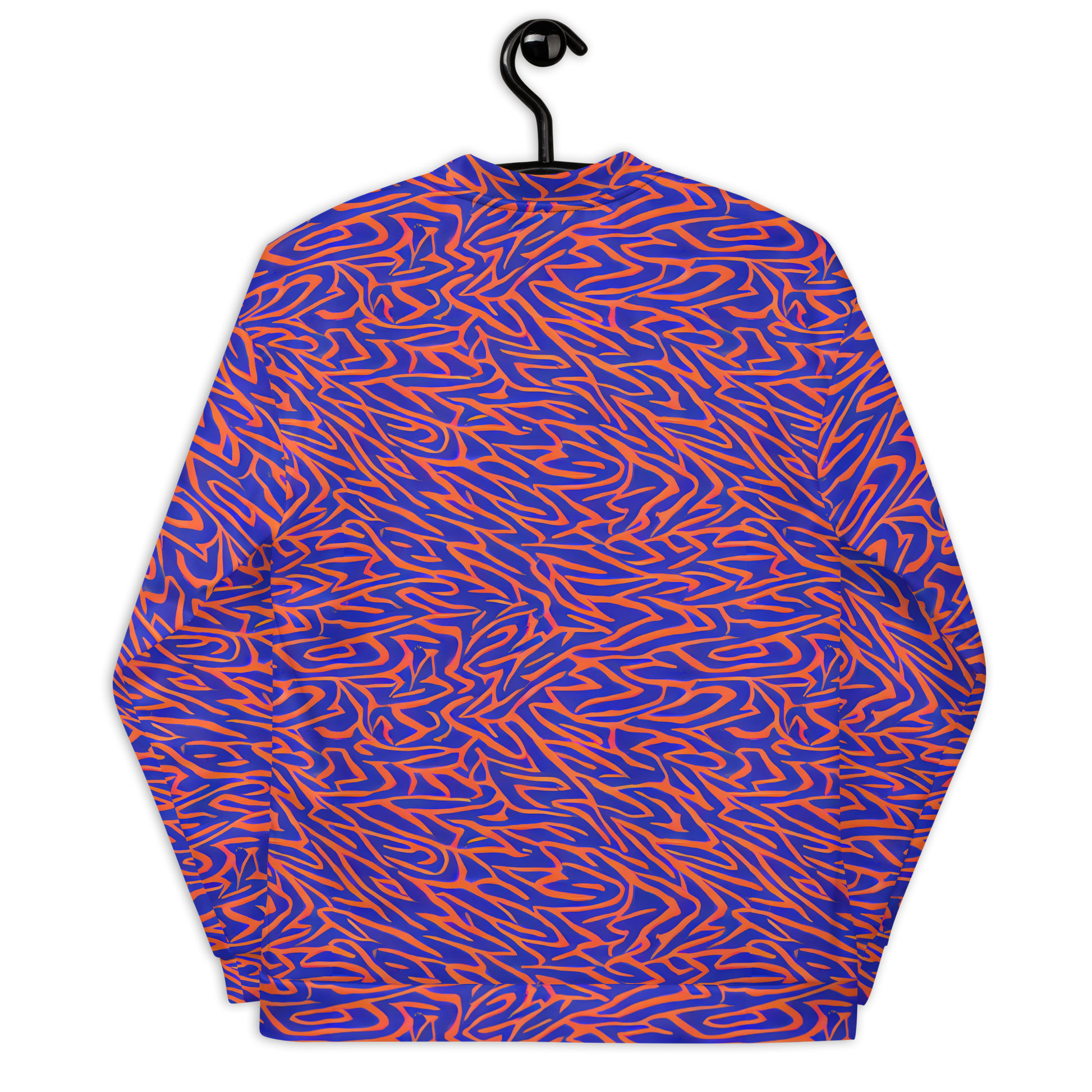 Immerse yourself in a world of vibrant energy and dynamic design with this one-of-a-kind Bomber Jacket. Featuring a mesmerizing pattern that captures the vivid blue of an azure ocean intertwined with fiery sunset reflections, this jacket is a true statement piece. Perfect for summer festivals or casual beach outings, it adds a bold splash of color and creativity to any outfit. Designed for those who exude confidence and embrace the exuberance of warmer seasons, this jacket promises to turn heads and elevate your style.