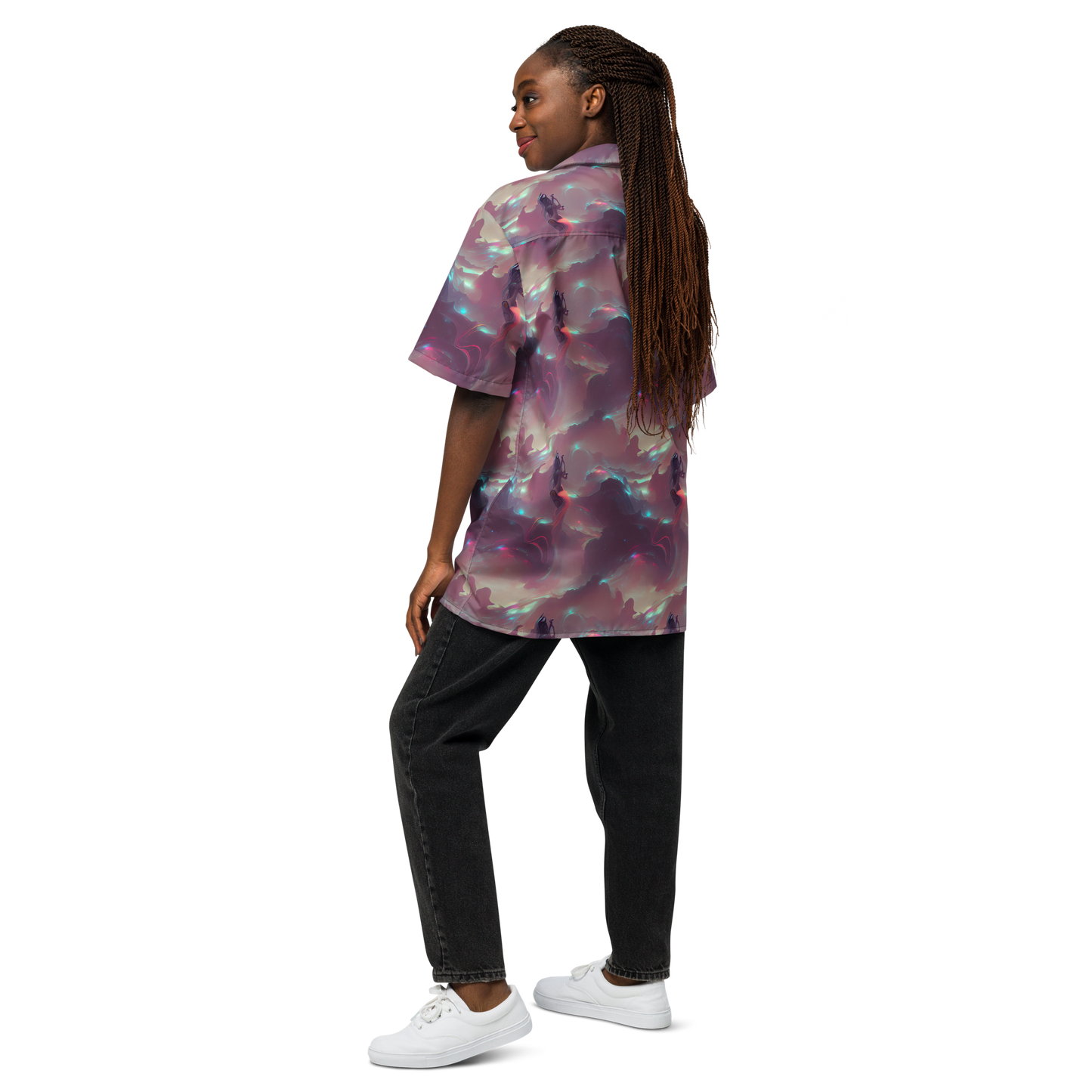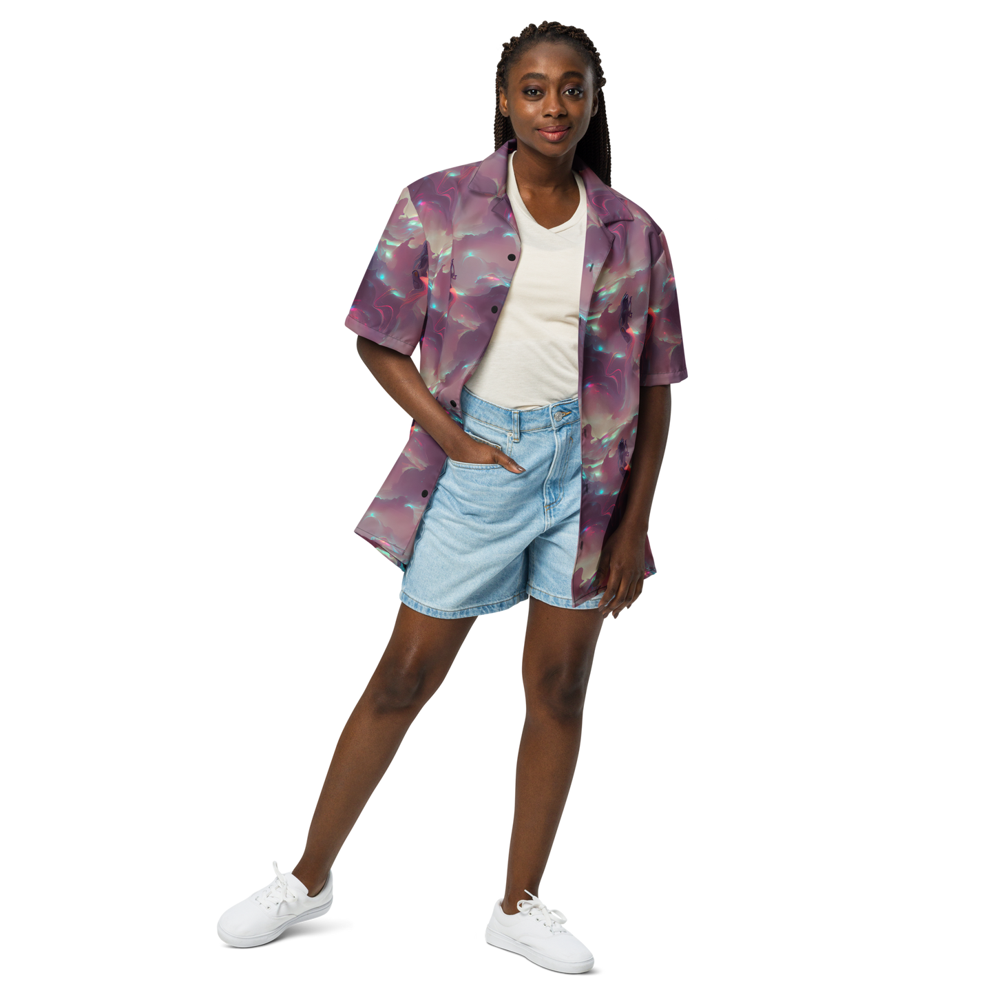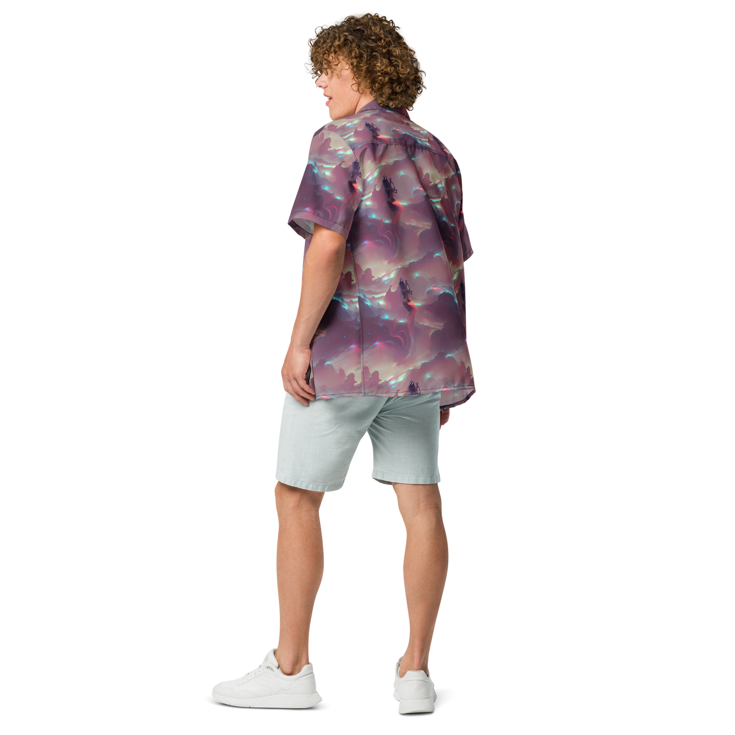 Immerse yourself in a dreamy, otherworldly landscape with our AI-crafted summer shirt, featuring mesmerizing swirls of deep purples, vibrant pinks, and cosmic blues. This ethereal design, reminiscent of fluid nebula shapes and glowing highlights, evokes a sense of mystical wonder and infinite possibilities. Perfect for free-spirited individuals and ideal for music festivals, evening gatherings, or creative events, this shirt is your go-to for spring and summer.