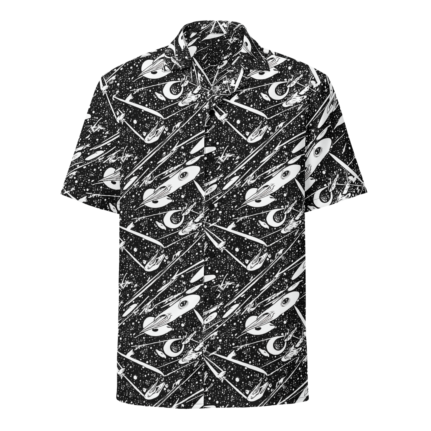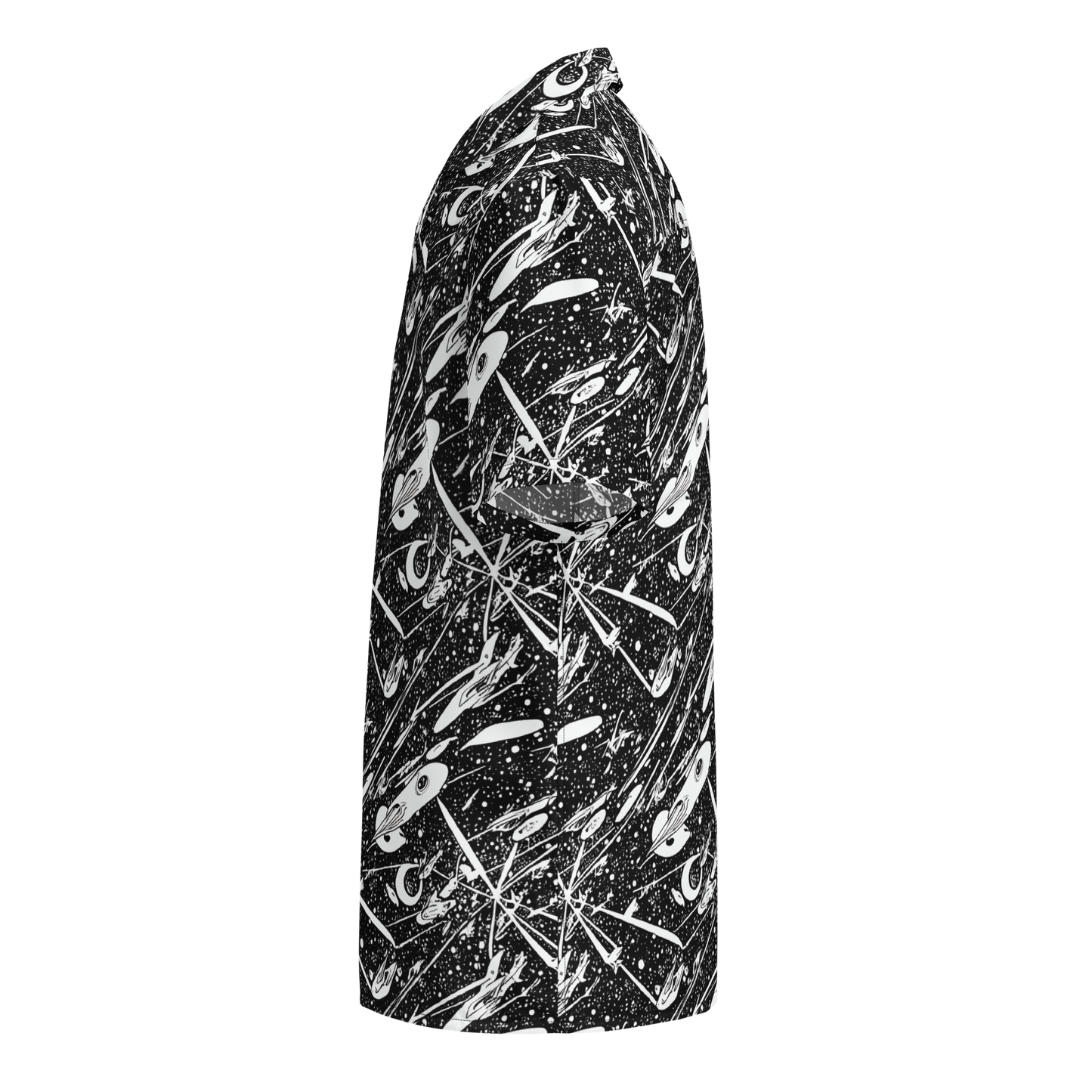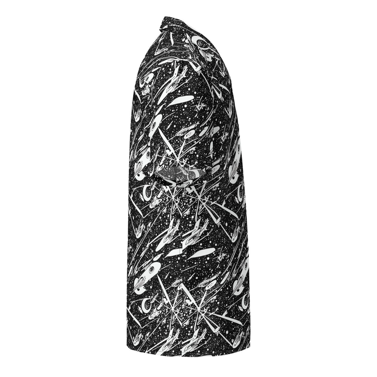 Unleash your cosmic style with our "Black Hole Ballet" Button Shirt, where art meets fashion in a mesmerizing dance of swirling monochrome shapes. This uniquely tailored piece captures the essence of abstract space, making it the perfect statement for avant-garde events or a chic night out in the city. Crafted for bold personalities, this shirt not only elevates your wardrobe but also embraces sustainability, ensuring you shine with sophistication while being kind to the planet.