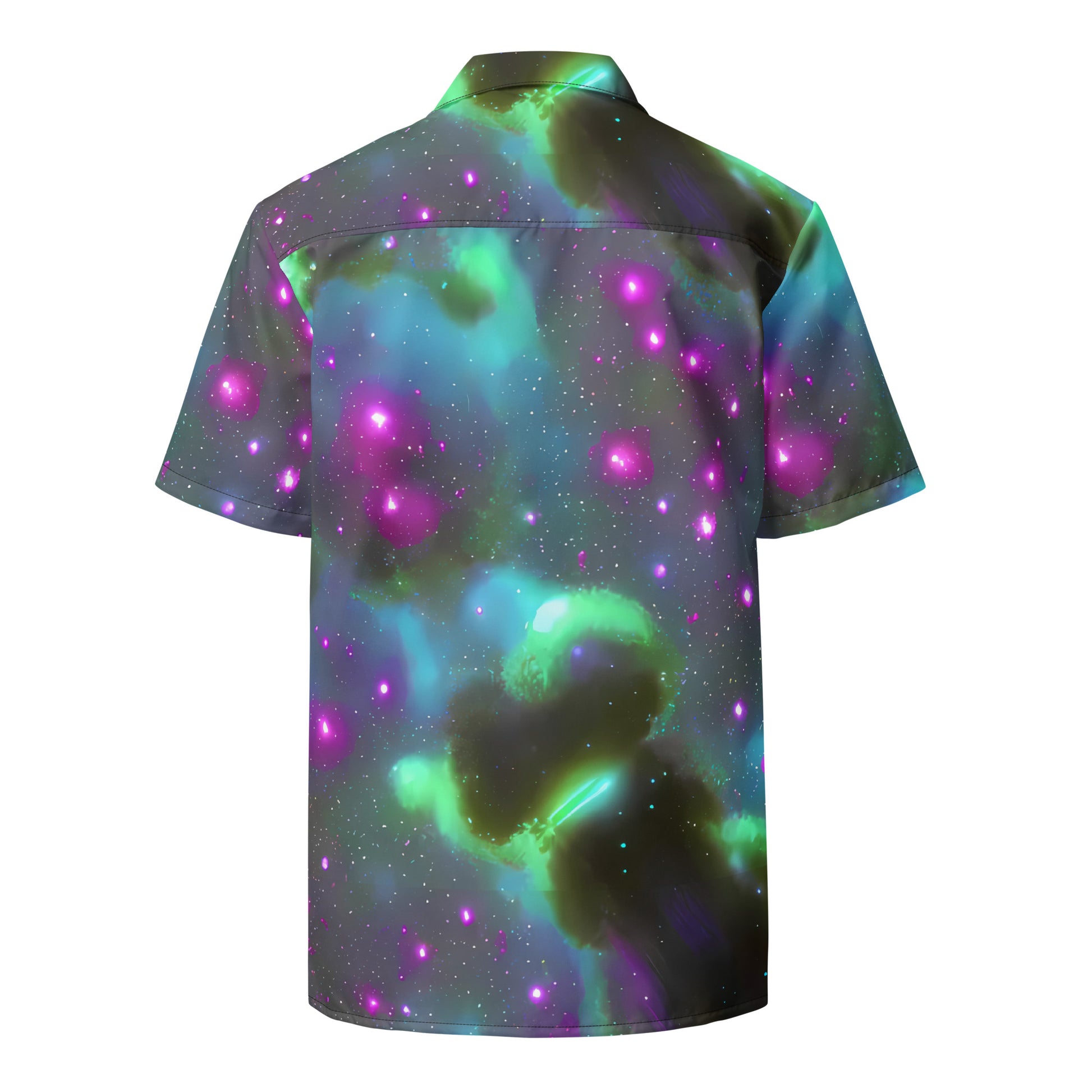 Elevate your summer wardrobe with our mesmerizing "Interstellar Haze" Button Shirt, a stunning fusion of deep purples, ethereal blues, and vibrant greens that captures the mystique of a cosmic nebula. This AI-crafted masterpiece not only showcases a swirling, speckled design that exudes depth and wonder but also offers unparalleled comfort and style for those bold enough to stand out. Perfect for evening events or art gallery openings, this shirt is your ticket to celestial elegance this season.