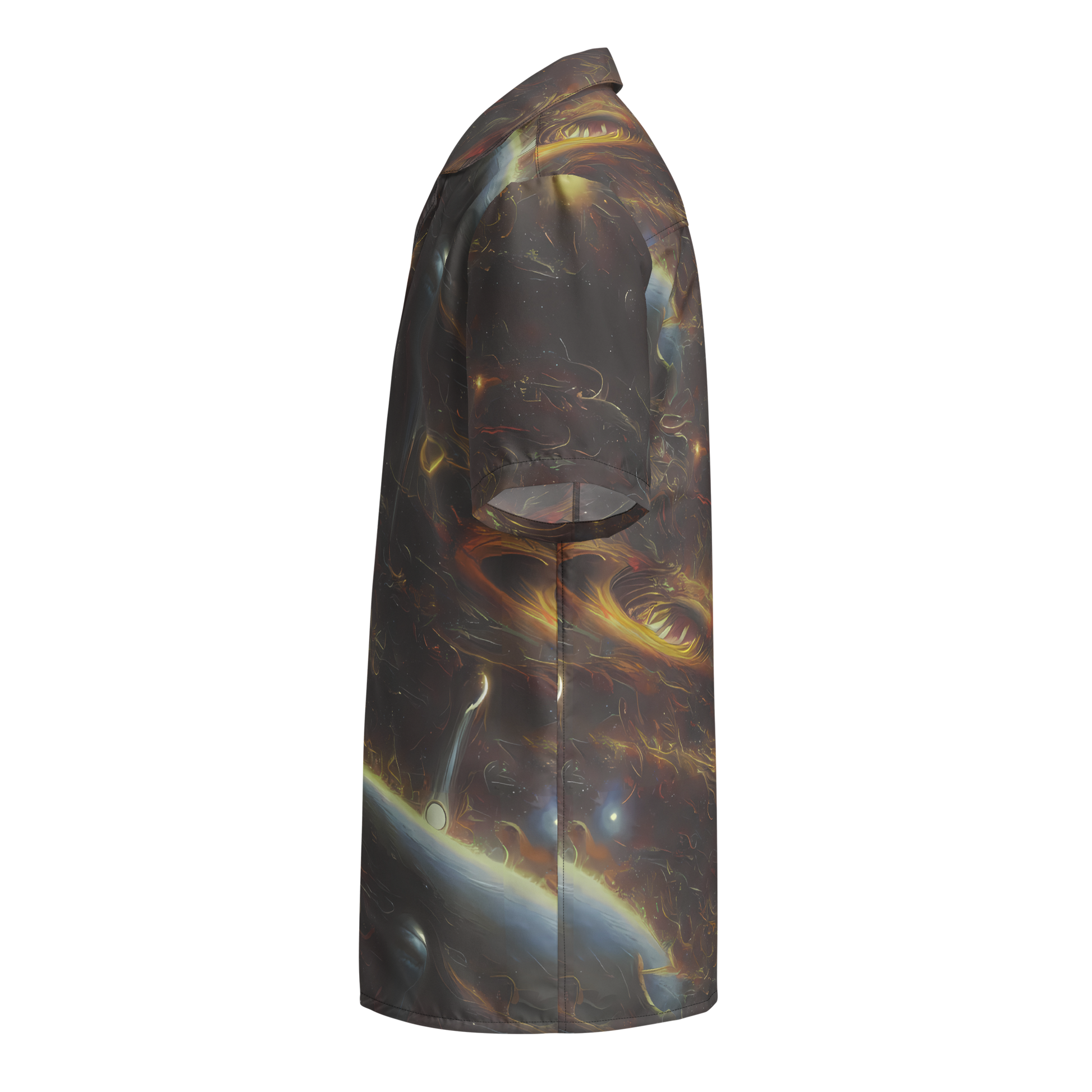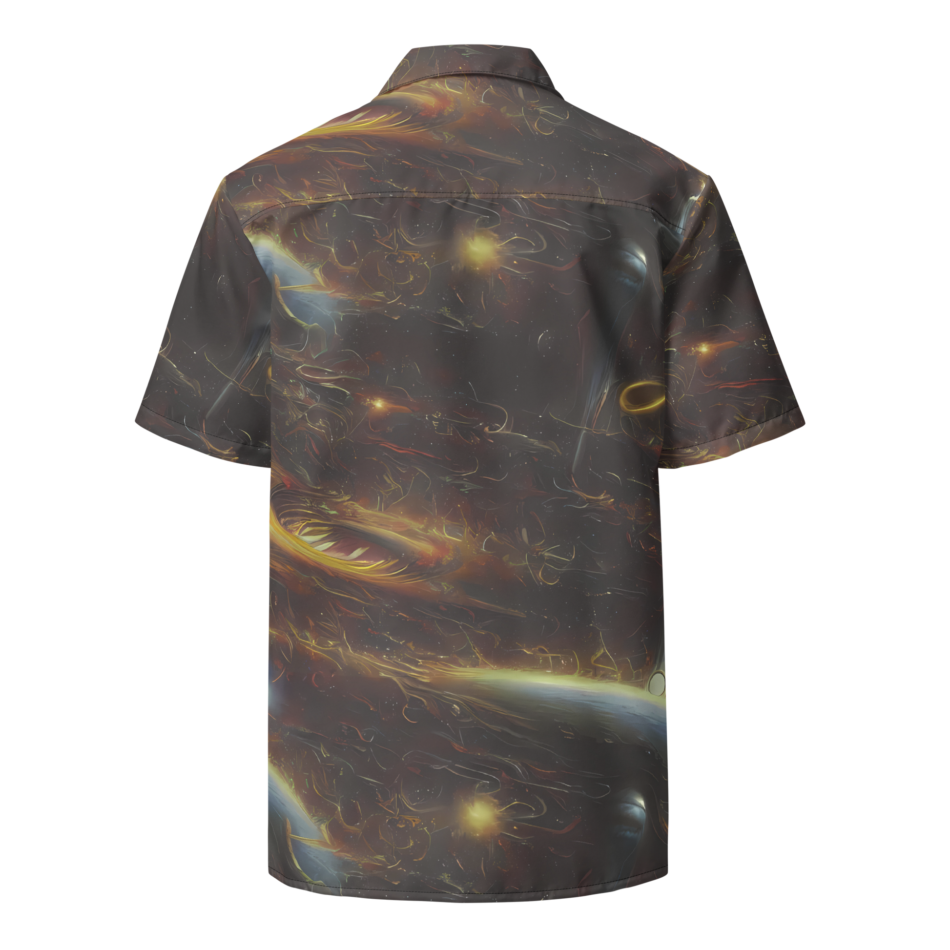 Elevate your wardrobe with our "Quantum Illusions" Button Shirt, where cosmic allure meets summer sophistication. This AI-crafted masterpiece features a mesmerizing pattern of swirling galaxies and ethereal lights, blending deep cosmic blues with fiery oranges and golds. Perfect for bold, imaginative personalities, this shirt invites you to explore the universe's mysterious beauty while enjoying the ultimate in comfort and style. Ideal for fall or winter evening events and art gallery openings, but designed to keep you cool and confident all summer long.