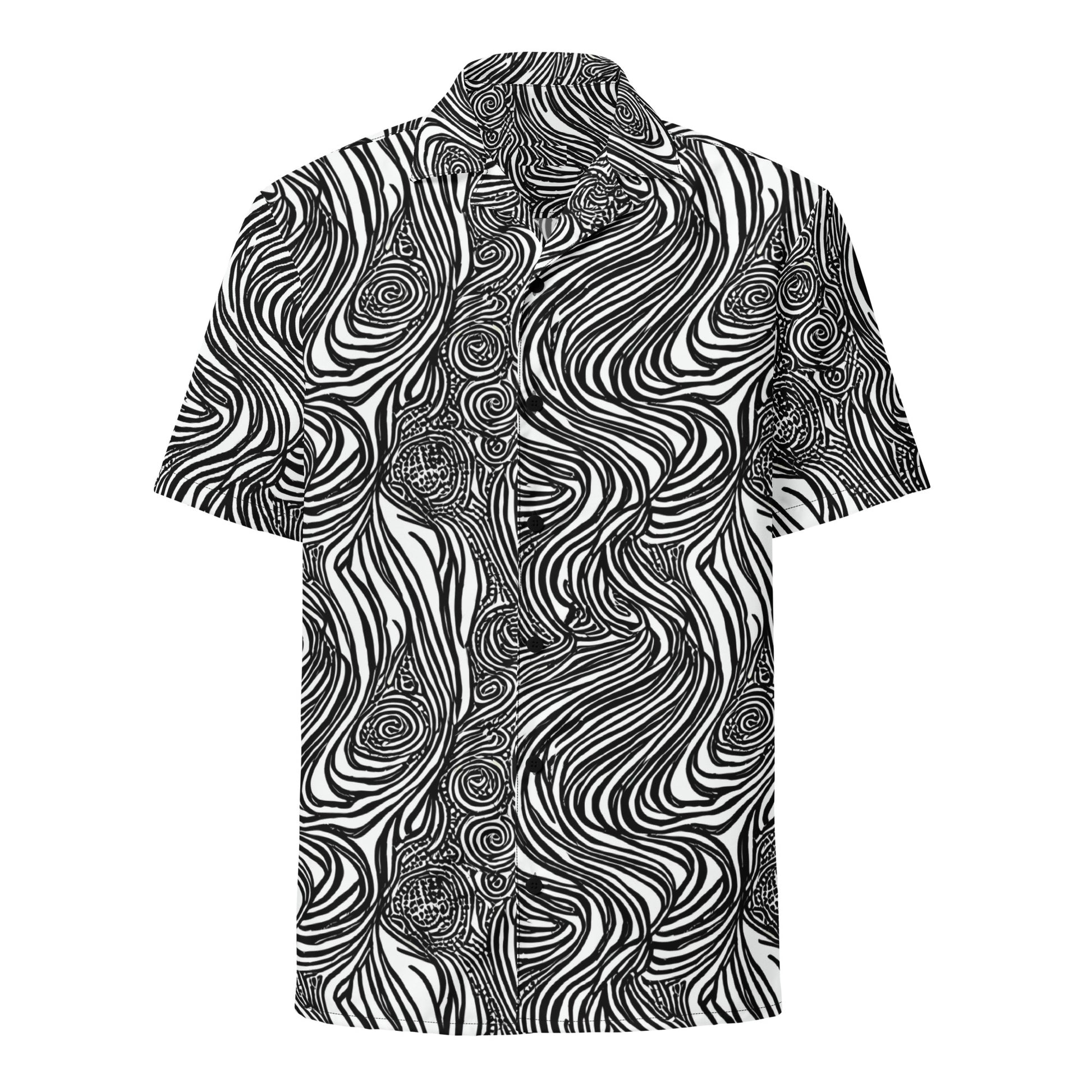 Unleash your bold spirit this summer with our "Tidal Tangle" Button Shirt, where the mesmerizing dance of intricate black and white swirls meets cutting-edge fashion. This unique design, inspired by the fluidity of ocean currents and the mysteries of the cosmos, is perfect for those who dare to stand out. Handcrafted with eco-conscious materials, this shirt is not just a statement piece; it’s a testament to your individuality and commitment to sustainability. Elevate your wardrobe with this avant-garde essential, designed for art exhibitions, music festivals, and everything in between.
