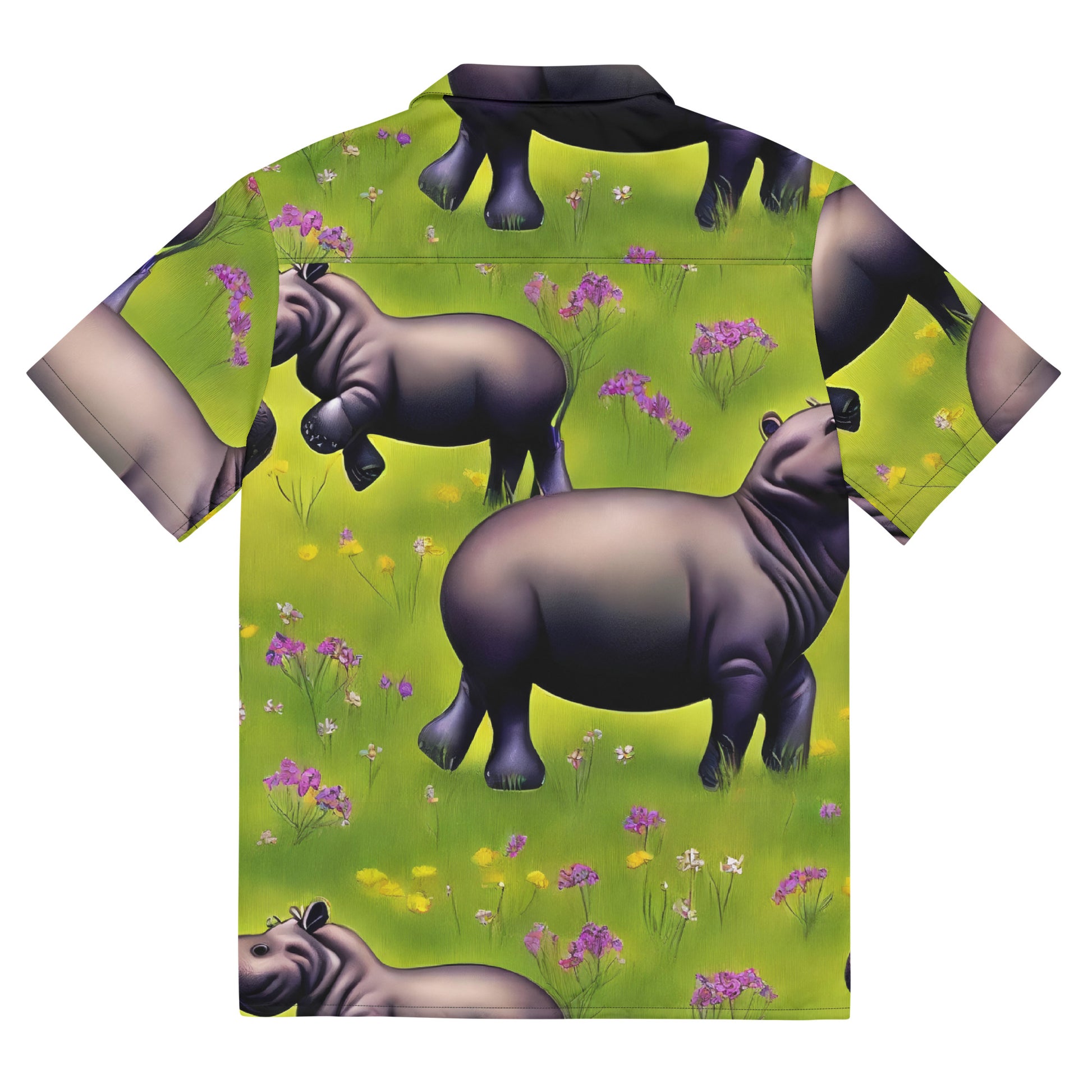 Step into a world of whimsy and style with our "Verdant Safari" Button Shirt, where playful baby hippos frolic amidst a vibrant tapestry of lush greens and wildflowers. This AI-crafted masterpiece not only showcases your individuality but also brings the serene beauty of nature right into your wardrobe. Perfect for garden parties, casual outings, or simply basking in the sun, this shirt is your go-to for a joyful summer vibe.