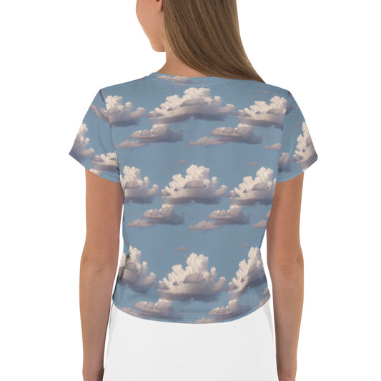 Elevate your wardrobe with our "Celestial Cotton" crop top, where ethereal elegance meets modern style. This AI-designed, body-hugging piece features a serene expanse of soft, billowing clouds against a tranquil blue sky, enveloping you in a dreamlike wonder. Perfect for spring and summer outings, it invites a touch of whimsy and sophistication, ensuring you stand out at any outdoor gathering or leisurely stroll.