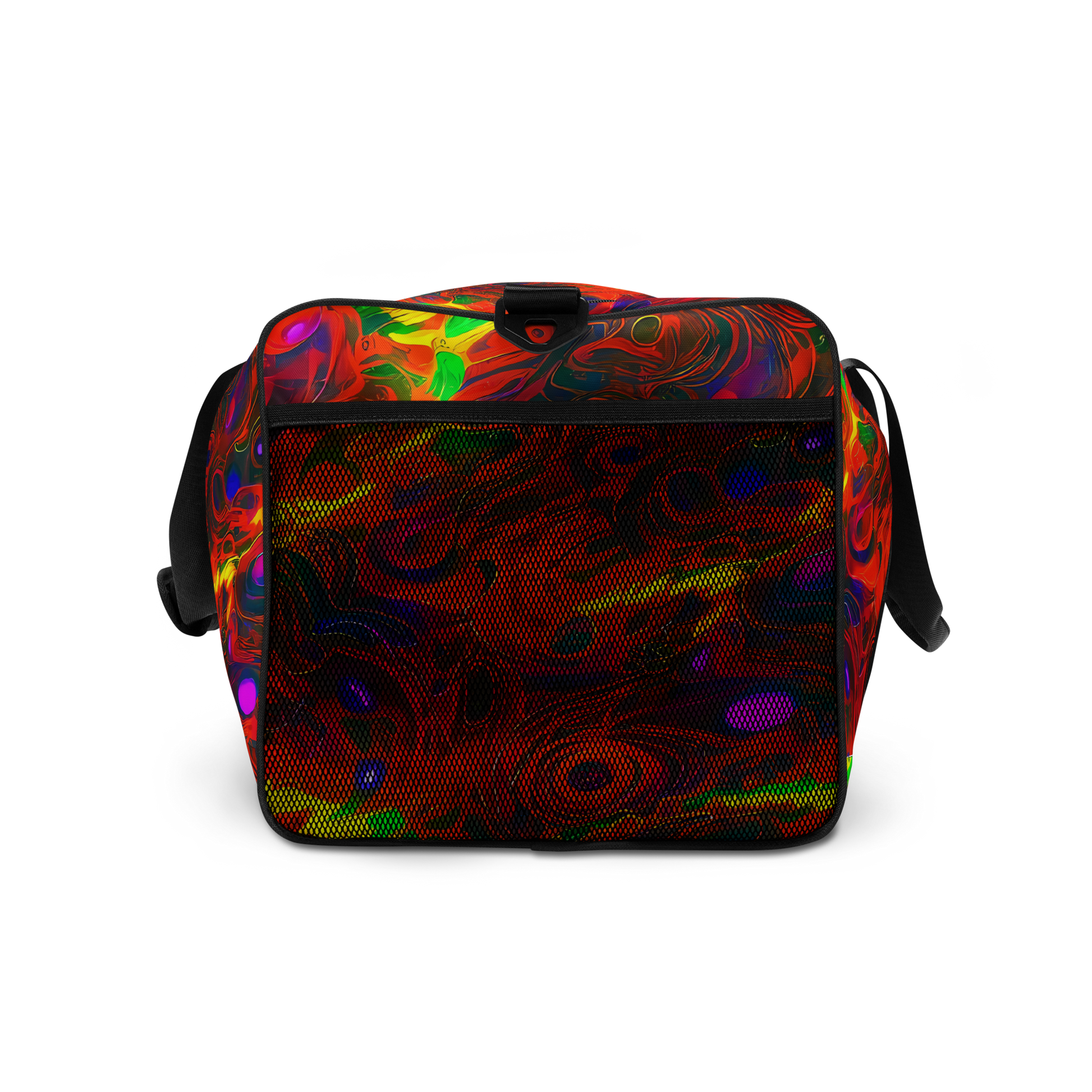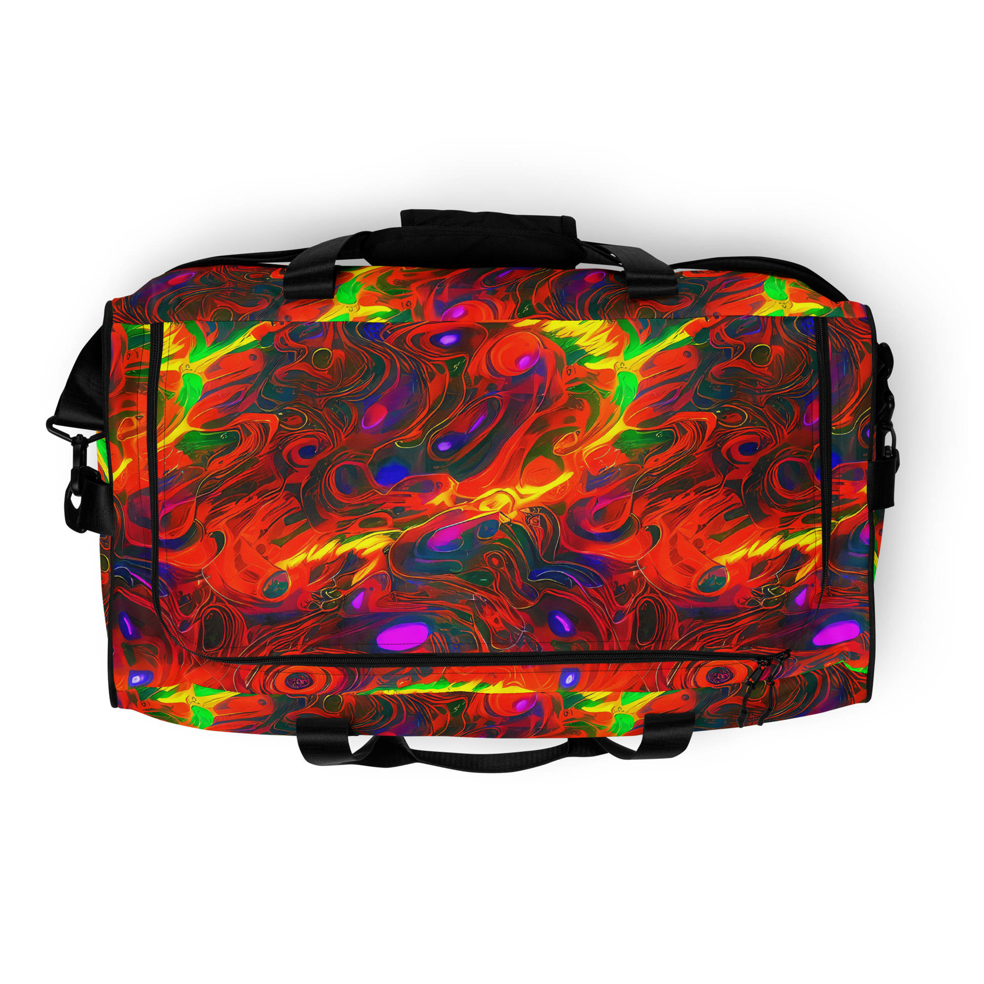 Elevate your travel game with our stunning Duffle Bag, featuring a bold and dynamic pattern that captures the essence of fiery energy and cosmic wonder. Perfect for music festivals, art shows, or any lively gathering, this bag is designed for those who dare to stand out. With vibrant swirling reds, oranges, yellows, and electric blues and greens, your gear will never go unnoticed. Crafted for functionality and style, this bag is your ultimate companion for any adventure.