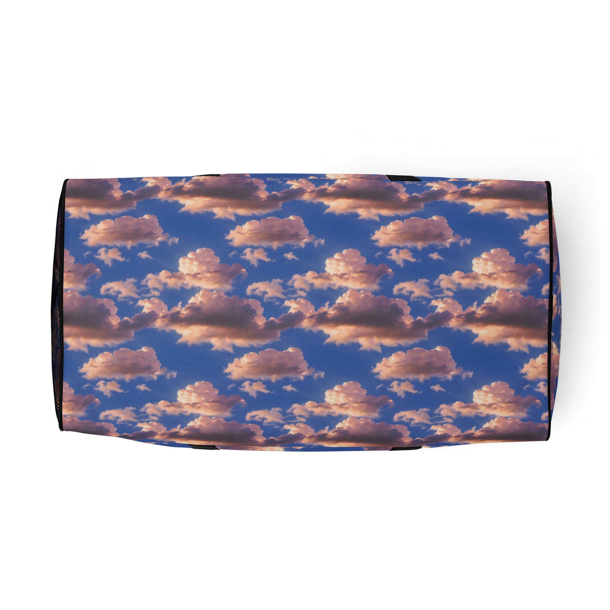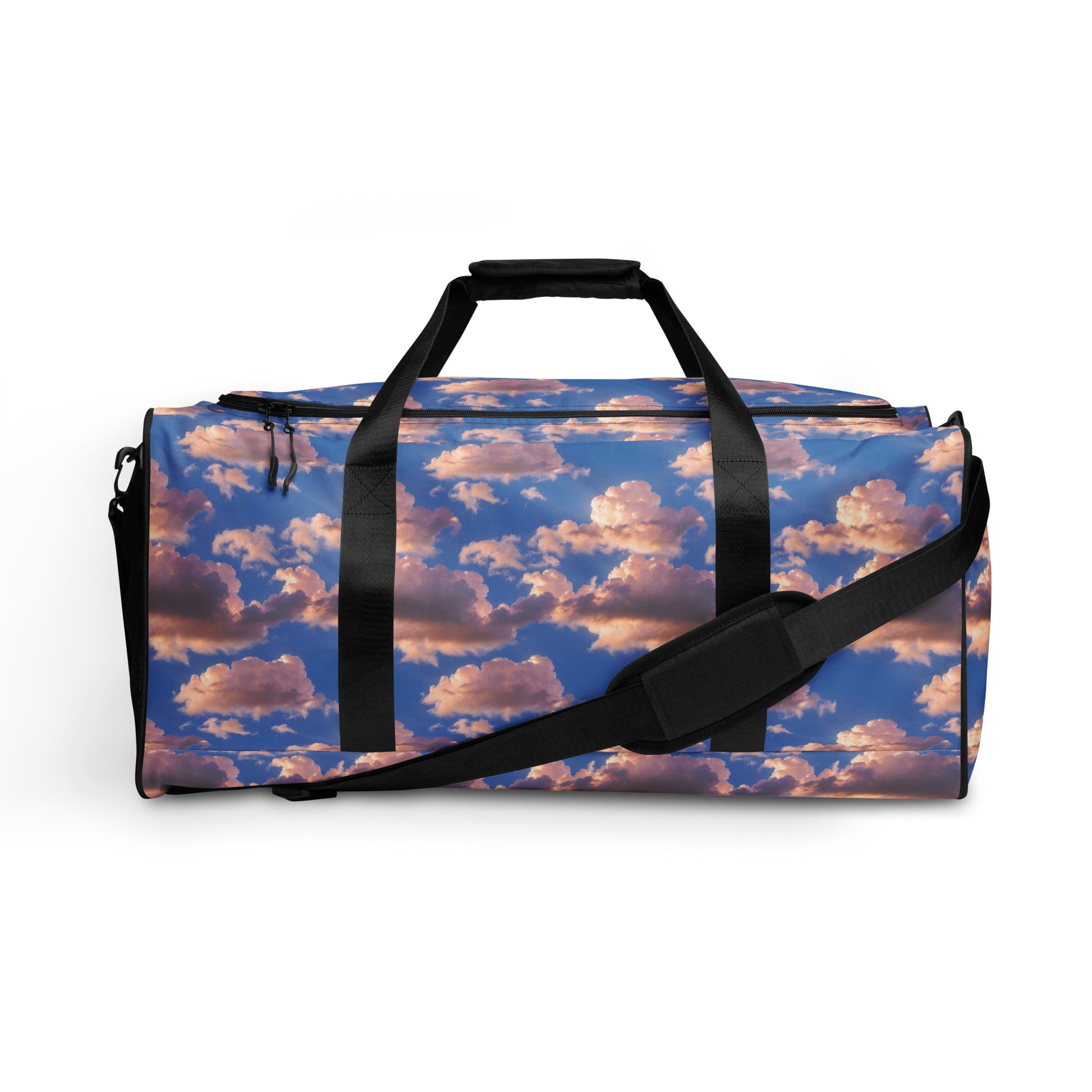 Elevate your travel game with our "Cotton Candy Skies" Duffle Bag, where whimsical elegance meets everyday functionality. Adorned with a dreamy pattern of soft pink and peach clouds drifting across a serene blue backdrop, this bag is not just a carry-all; it's a statement piece that captures the essence of free-spirited adventures. Perfect for spring outings, beach days, or spontaneous picnics, it ensures you stand out while keeping your essentials organized and secure.