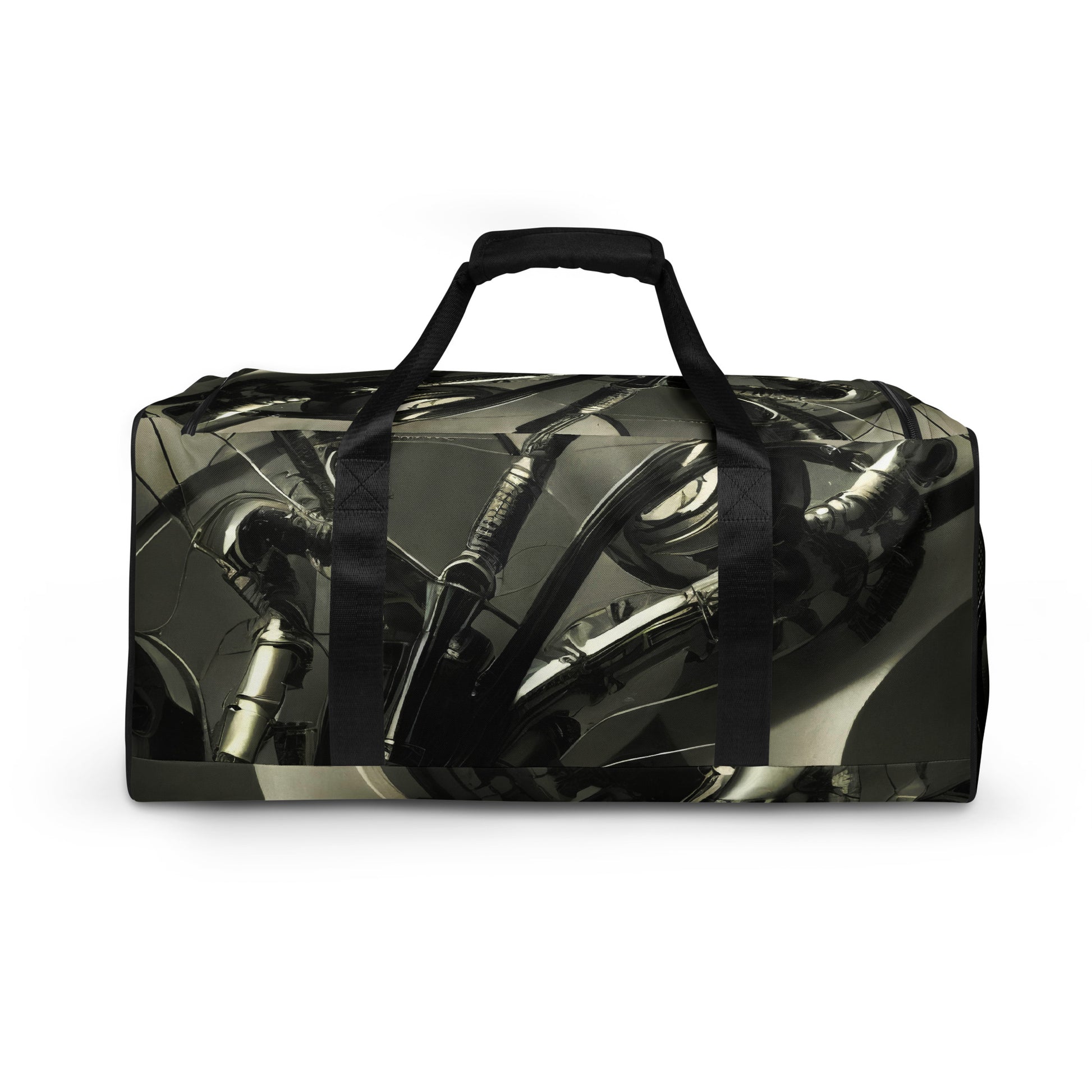 Step into a world of futuristic elegance with our "Cyber Reverie" Duffle Bag, where avant-garde sophistication meets everyday functionality. This striking carry-all features a mesmerizing blend of monochromatic tones and metallic sheens, accented with vibrant blue that transforms your essentials into a statement piece. Perfect for tech-inspired events or stylish urban outings, this duffle ensures you're always prepared for your next adventure while showcasing your bold and imaginative style.