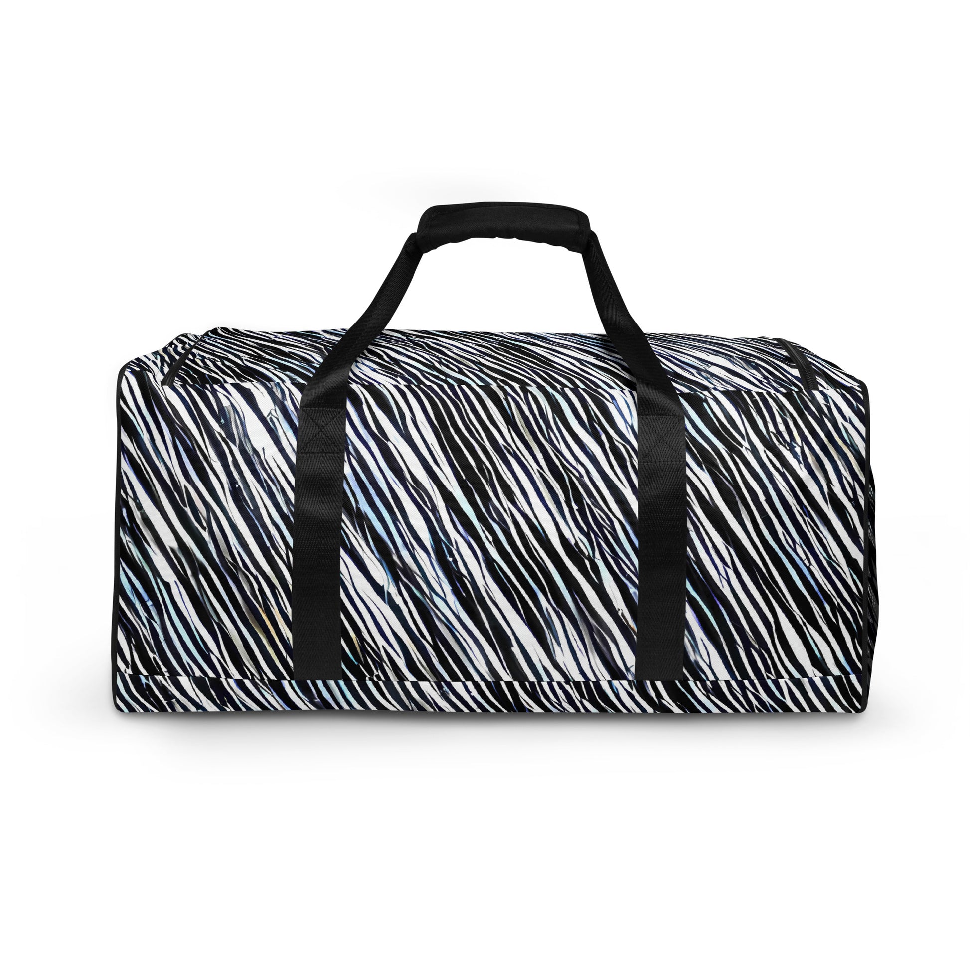 Elevate your travel game with our "Dupain Waves" Duffle Bag, a stunning fusion of art and functionality. Adorned with the dynamic "Dupain Waves" pattern, this bag captures the fluidity of ocean waves in striking black and white with hints of blue, making it the perfect accessory for art lovers and trendsetters alike. Whether you're heading to the gym, embarking on a weekend getaway, or attending an evening event, this versatile duffle bag ensures you stand out while keeping your essentials organized and secure.