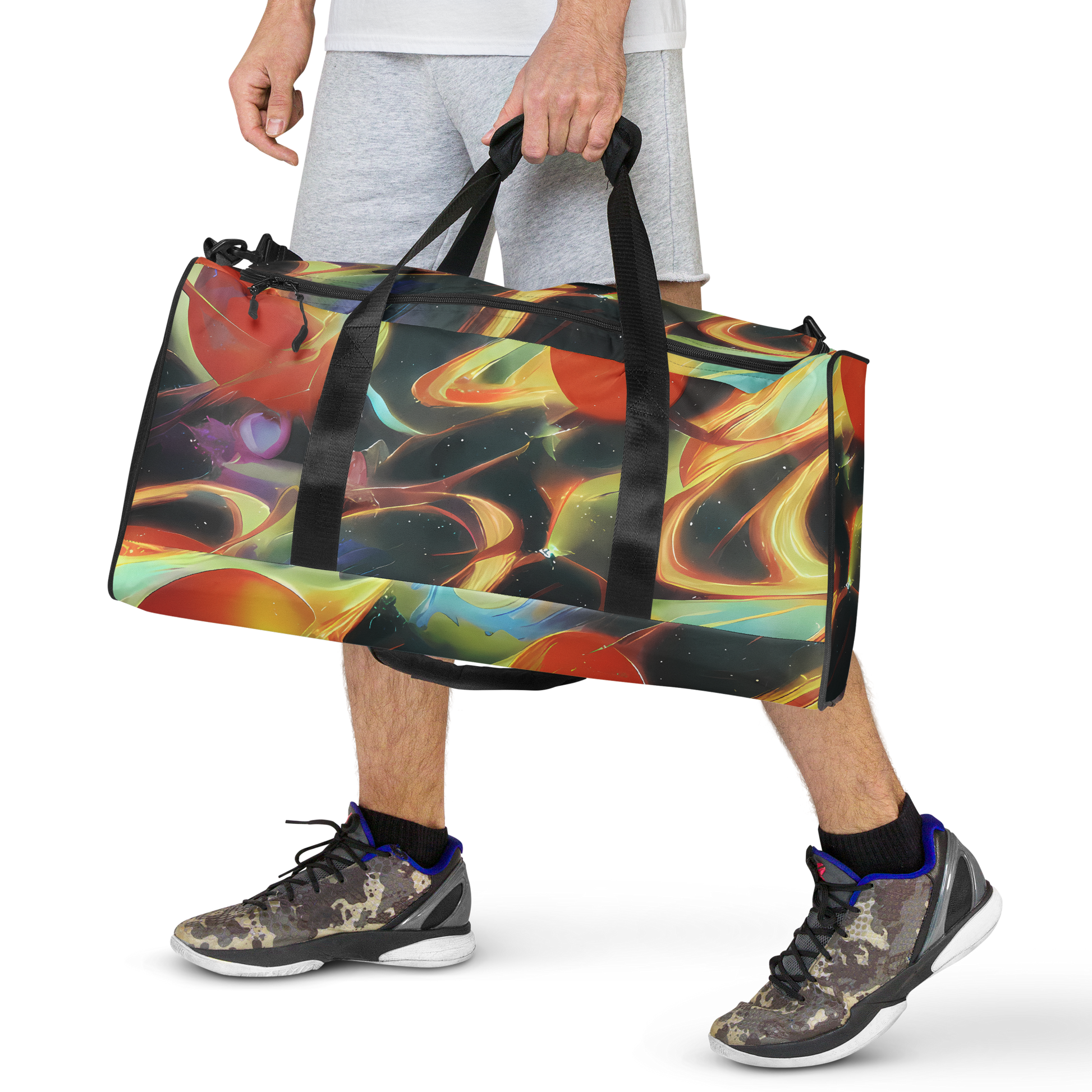 Embark on a journey through time and space with our latest carry-all duffle, featuring a design that captures the essence of cosmic wonder and baroque sophistication. Swirling golden hues, celestial orbs, and a dance of light and shadow adorn this bag, creating a statement piece that's perfect for those with an imaginative spirit and an appreciation for timeless artistry. Whether you're attending an elegant evening event or setting off on an autumnal adventure, this duffle is your portal to carrying your essentials in unparalleled style.