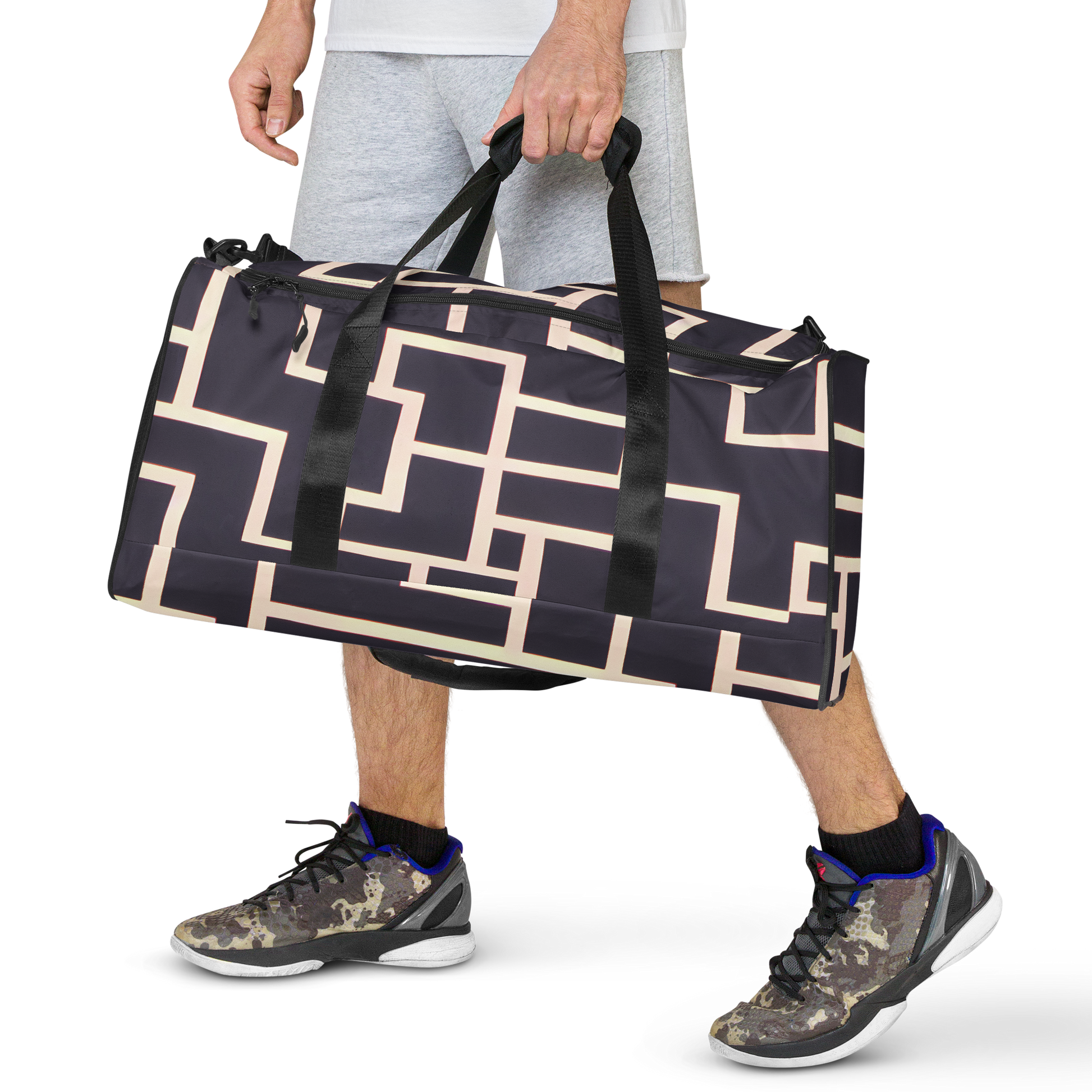 Envelop yourself in the essence of autumnal opulence with our latest duffle bag, adorned with an intricate maze of golden lines set against a sumptuous dark canvas. This piece isn't just a bag; it's a statement. Crafted for the discerning individual, it's where classic charm meets modern flair, making it the perfect accessory for your gala evenings and high-end escapades.
