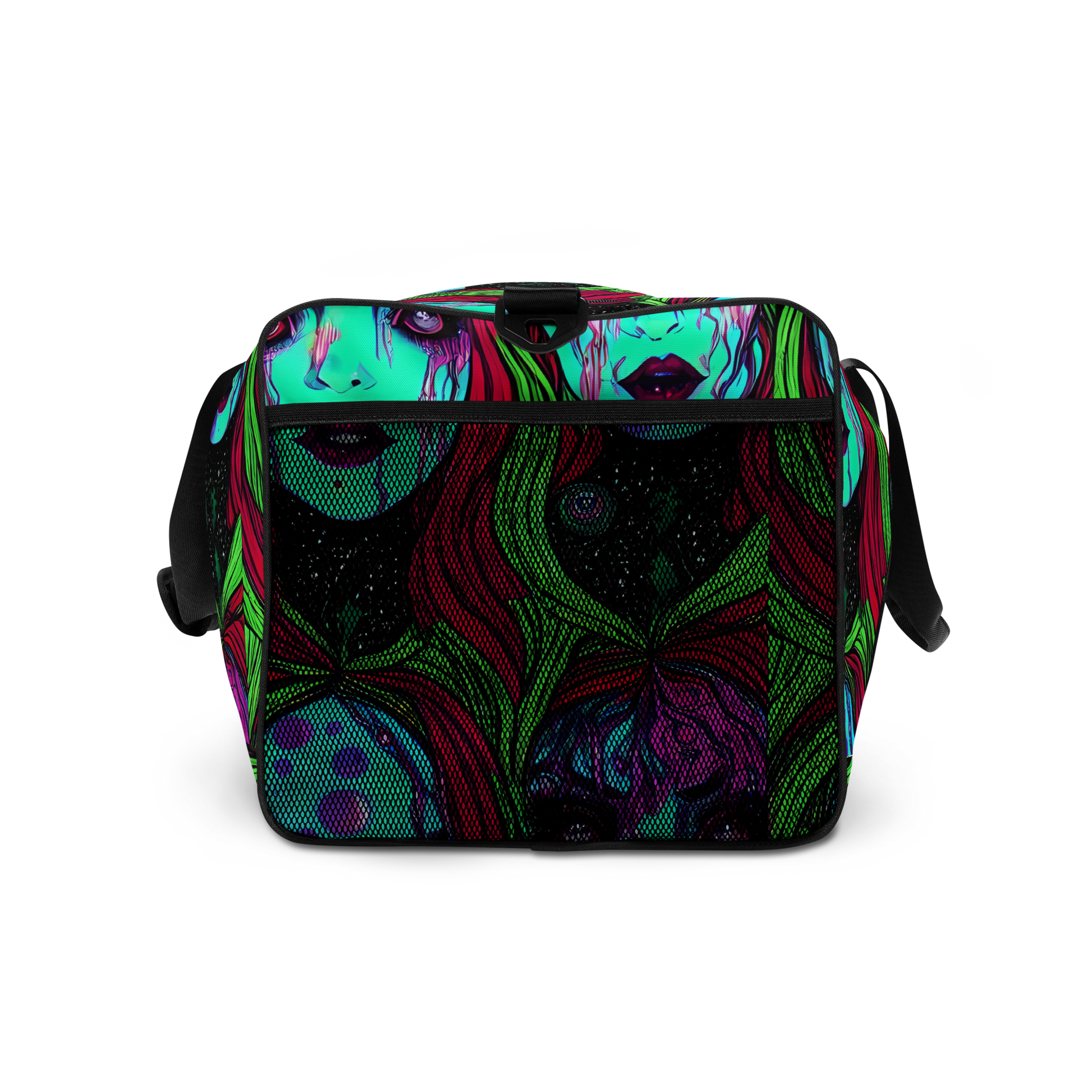 Step into a world of vibrant expression with the "Luminous Nightfall" Duffle Bag. This electrifying carry-all merges style and function with its cosmic blend of vivid turquoise, magenta, neon green, and ethereal purple, set against a backdrop of cosmic black. Perfect for the fearless and imaginative, this bag is your ideal companion for avant-garde events or dynamic urban nightlife. Experience the allure of cooler seasons with a design that stands out, while the smart compartments and durable fabric ensure you're ready for any adventure. Make a statement and let your gear shine with otherworldly allure!