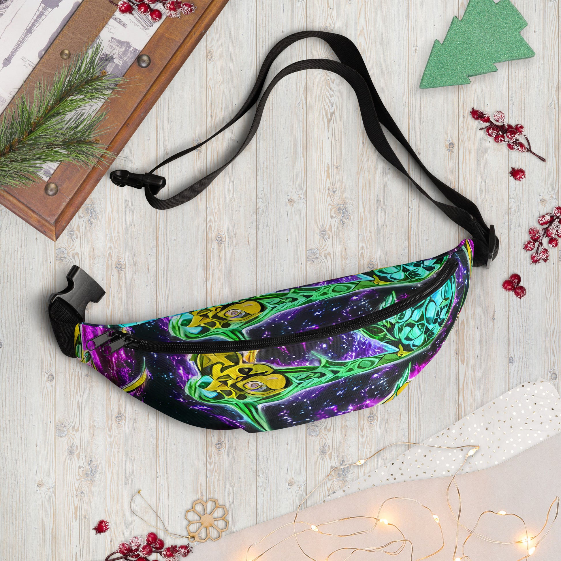 Unleash your vibrant spirit with our custom-designed fanny pack featuring the striking "Adolf's Aura" pattern. This eye-catching accessory bursts with neon greens and purples, swirling abstract forms that blend historical artistry with modern psychedelic flair. Perfect for those who dare to stand out, this fanny pack is not just a functional piece; it's a statement of creativity and boldness, ideal for festivals, avant-garde gatherings, or simply elevating your everyday style!