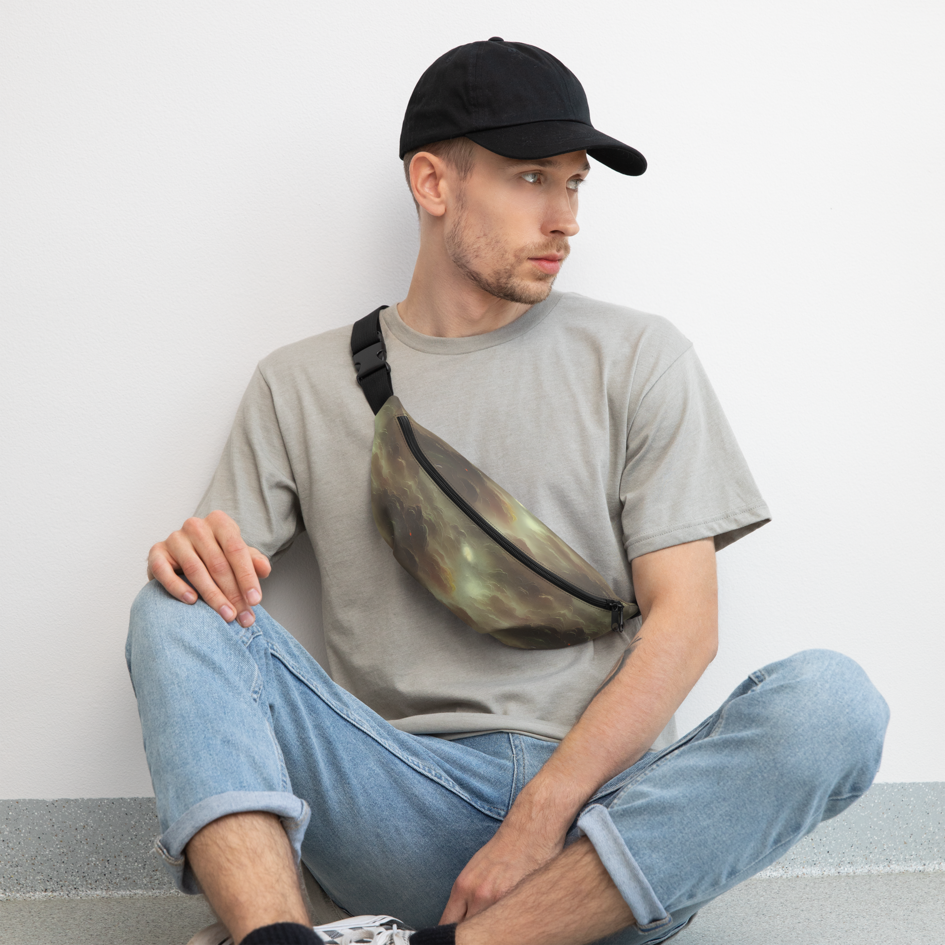 Step into a realm of cosmic wonder with our custom-designed fanny pack, adorned with a mesmerizing blend of ethereal clouds and luminescent hues. Perfect for evening events, music festivals, or autumn gatherings, this accessory is as unique and imaginative as you are. Its deep purples, soft golds, and shimmering greens evoke an otherworldly tranquility that will make you stand out wherever you go.