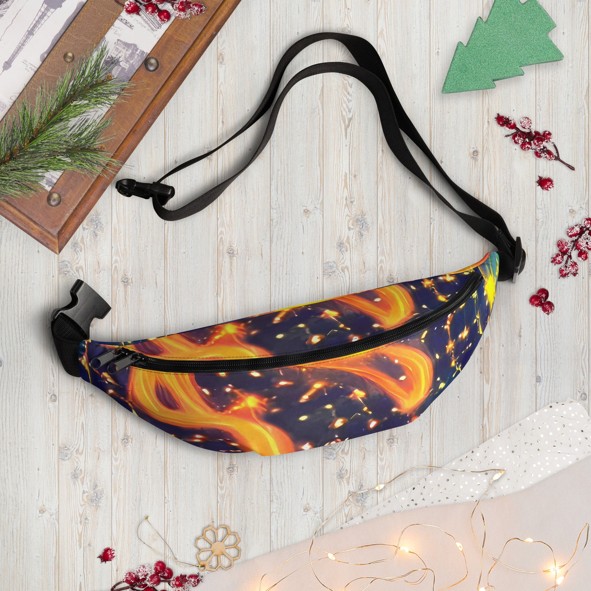 Elevate your accessory game with our stunning fanny pack featuring the mesmerizing "Coorte's Cosmos" pattern. This vibrant tapestry of celestial wonders, awash in fiery orange, tranquil teal, and mellow yellow, dances against a deep midnight blue backdrop, making it a true statement piece for dreamers and romantics alike. Perfect for evening events or autumn gatherings, this fanny pack combines style and practicality, ensuring you stand out while keeping your essentials secure and accessible.